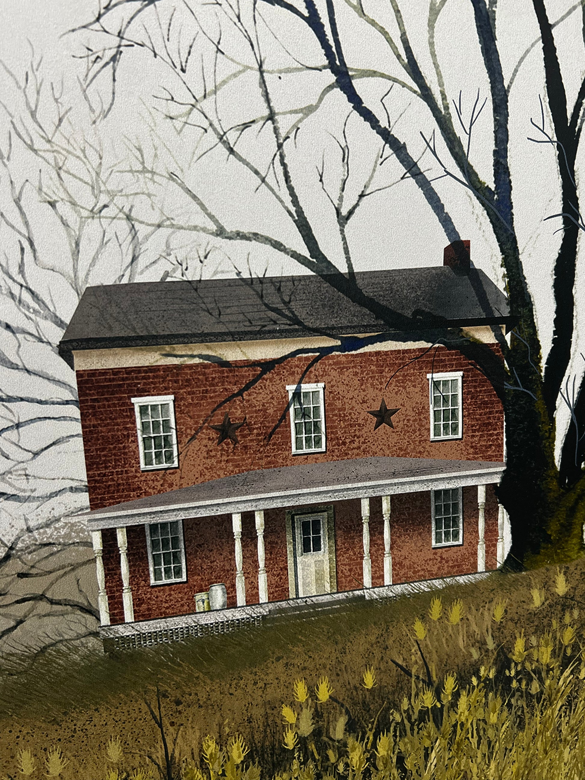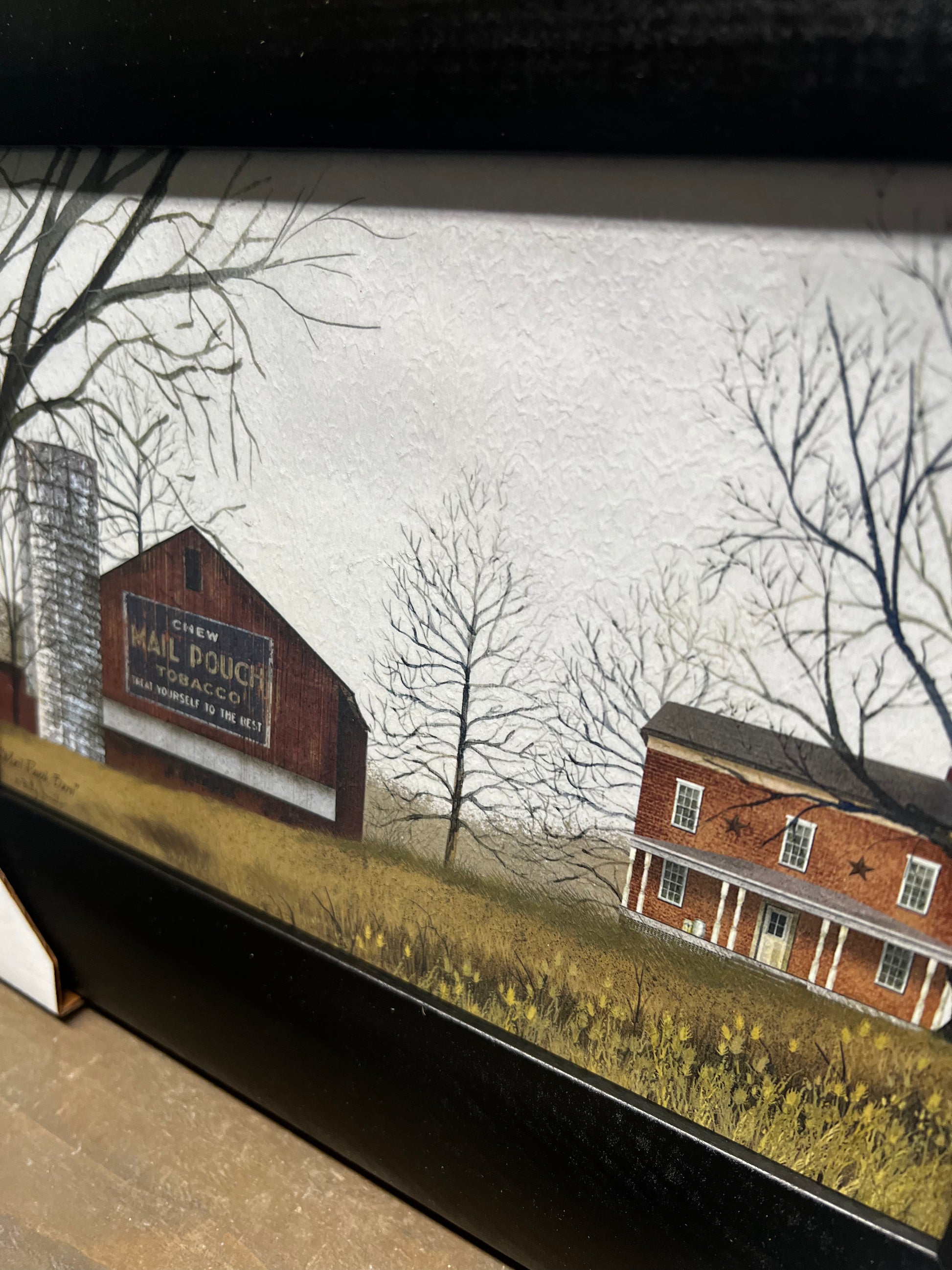 Our PA made framed art is lovely in quality and appearance. Professionally printed on canvas textured wood, the piece is given the look of a hand painted original. Made in Lancaster County, the ridge in the back of the frame makes for easy hanging. No glass. Protective covers protect the corners for shipping and are easily removed. Simple Black Frame.