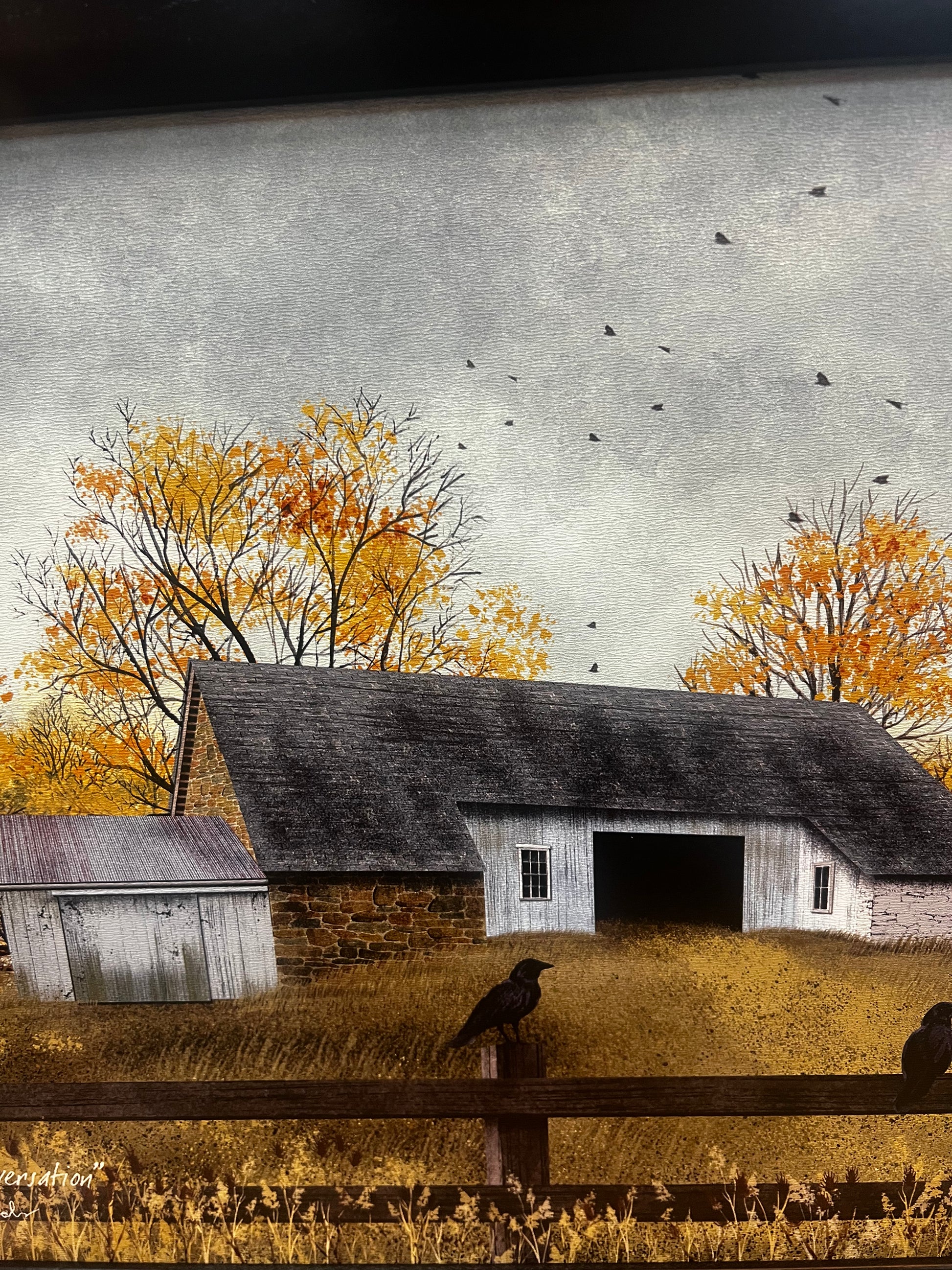 Our PA made framed art is lovely in quality and appearance. Professionally printed on canvas textured wood, the piece is given the look of a hand painted original. Made in Lancaster County, the ridge in the back of the frame makes for easy hanging. No glass. Protective covers protect the corners for shipping and are easily removed. Simple Black Frame.