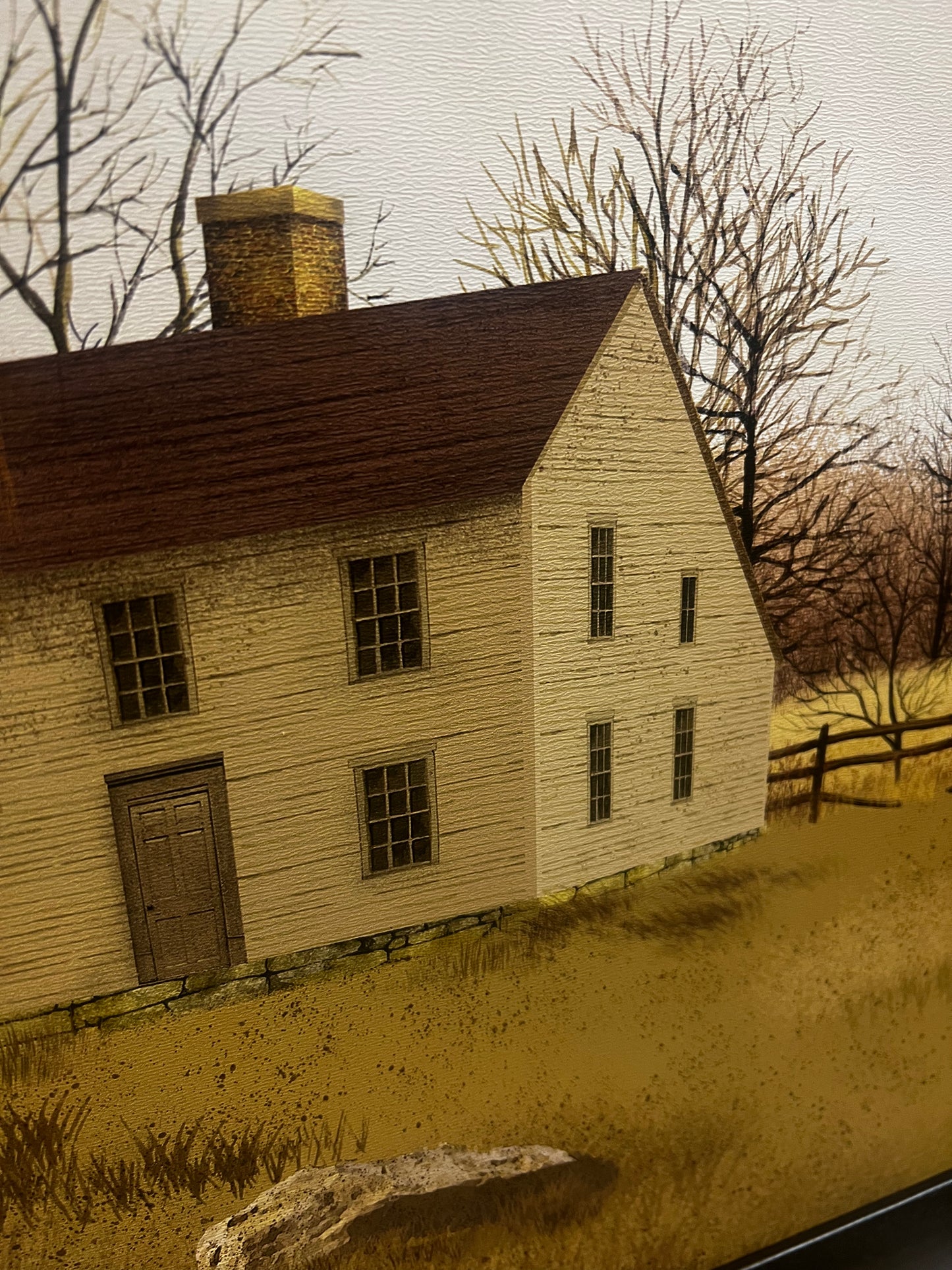 Our PA made framed art is lovely in quality and appearance. Professionally printed on canvas textured wood, the piece is given the look of a hand painted original. Made in Lancaster County, the ridge in the back of the frame makes for easy hanging. No glass. Protective covers protect the corners for shipping and are easily removed. Simple Black Frame.