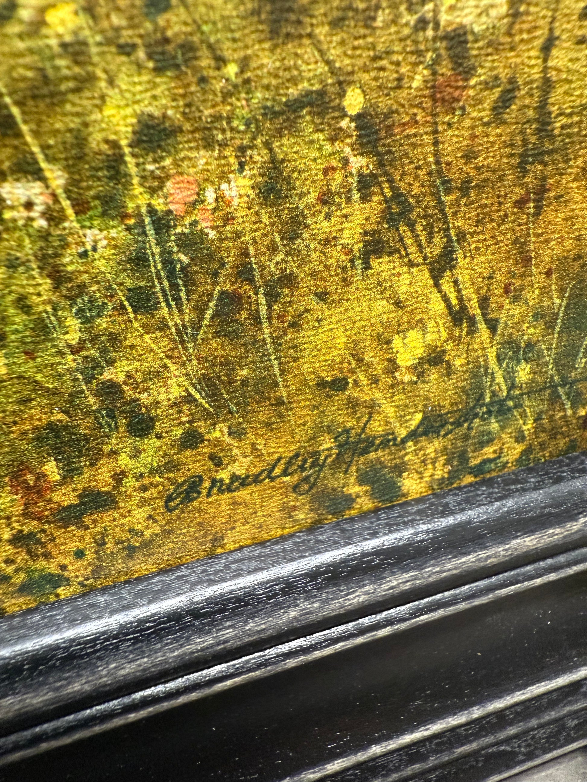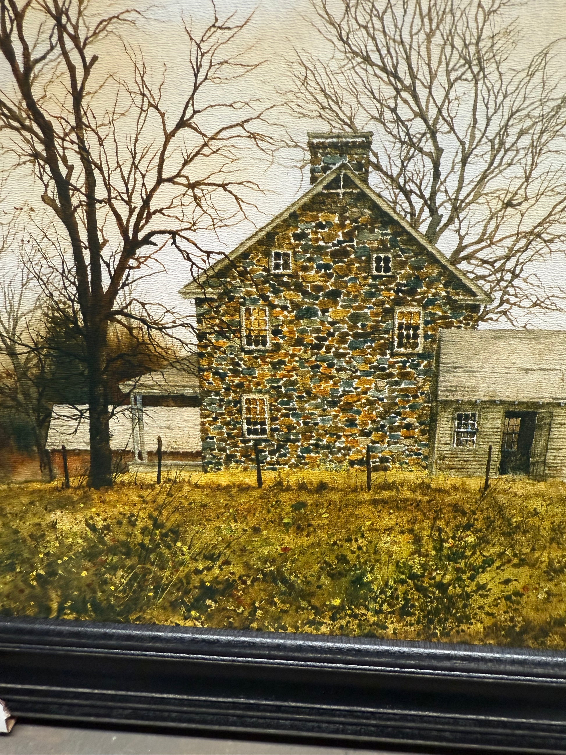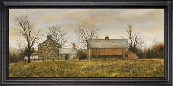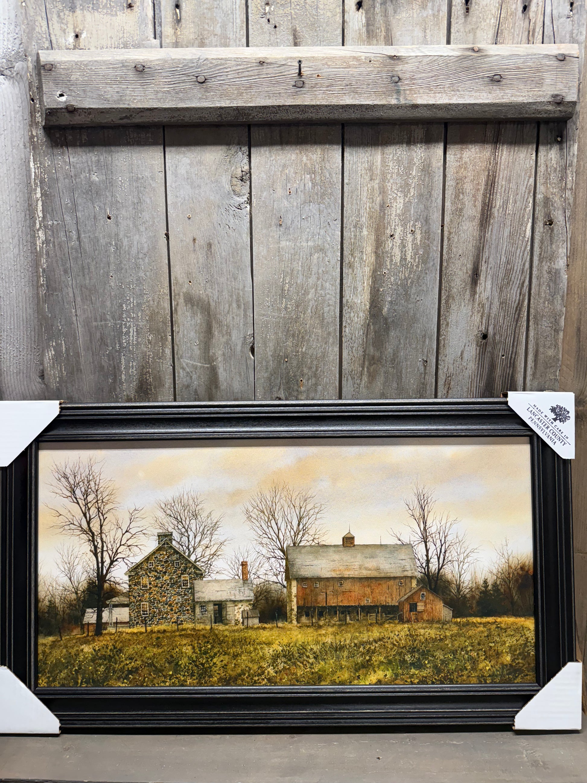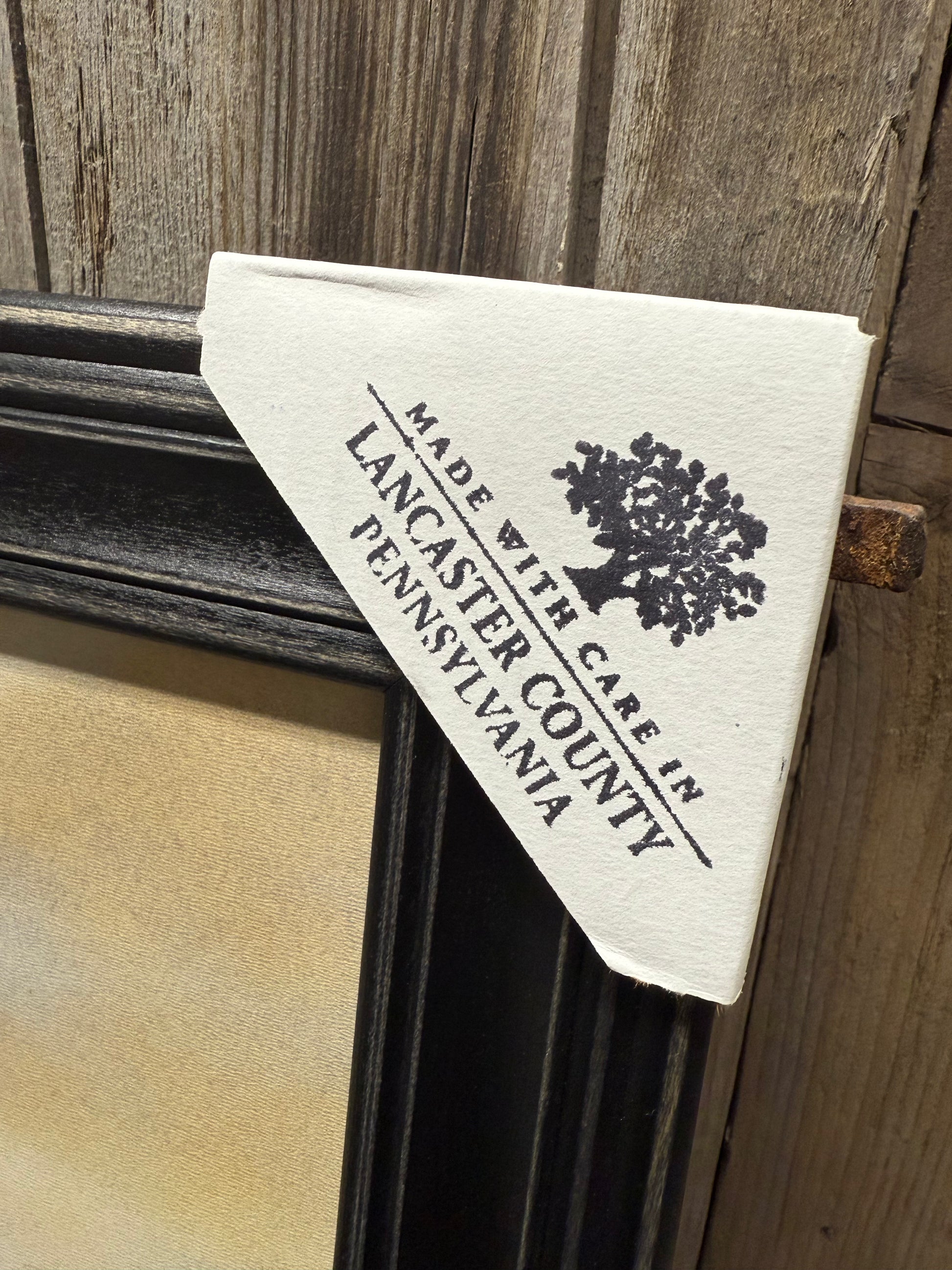 Our PA made framed art is lovely in quality and appearance. Professionally printed on canvas textured wood, the piece is given the look of a hand painted original. Made in Lancaster County, the ridge in the back of the frame makes for easy hanging. No glass. Protective covers protect the corners for shipping and are easily removed. Classic Black Frame. Ray and Bradley Hendershot, Artists