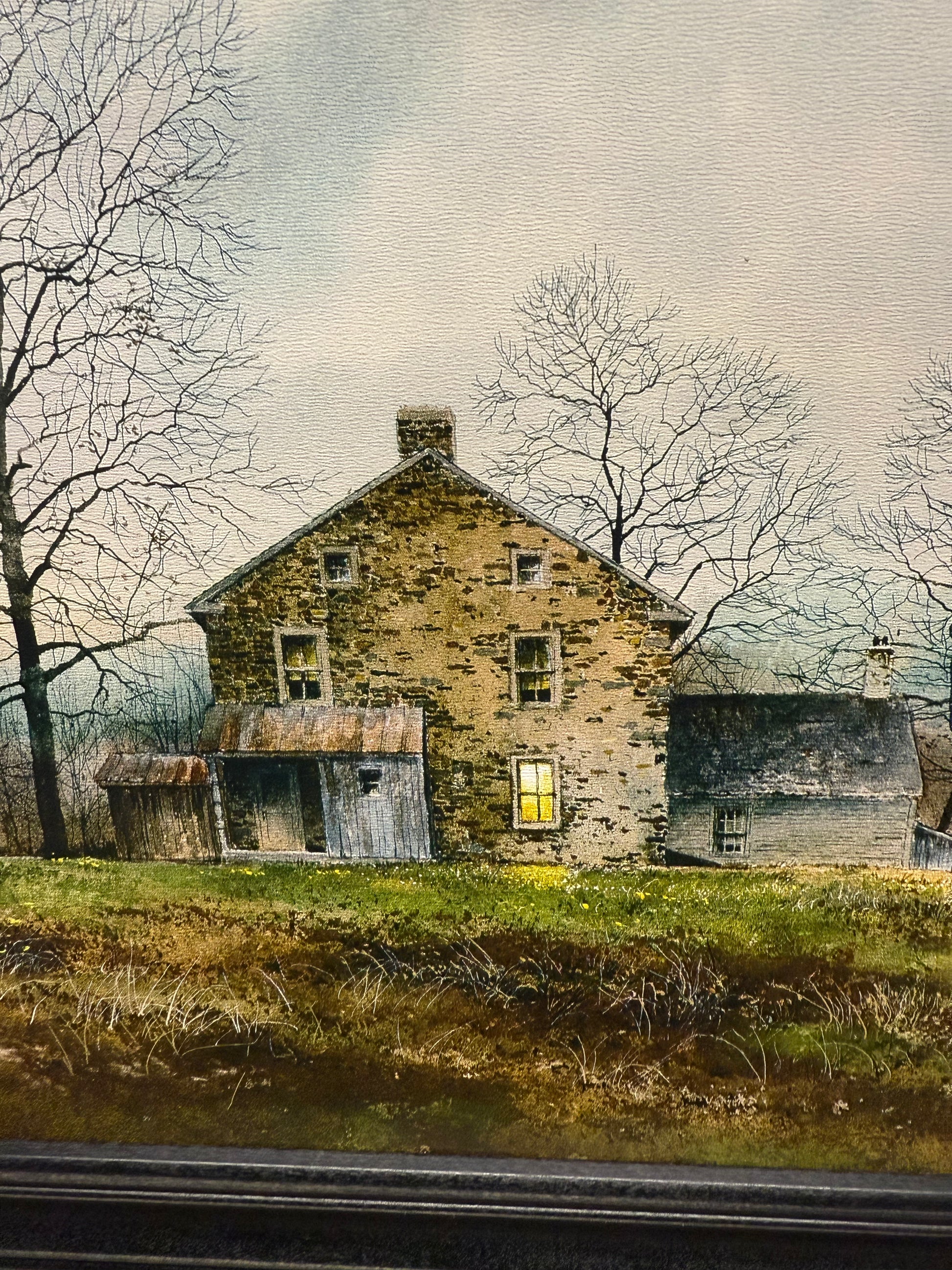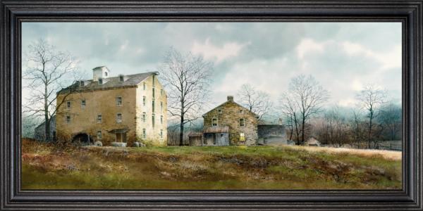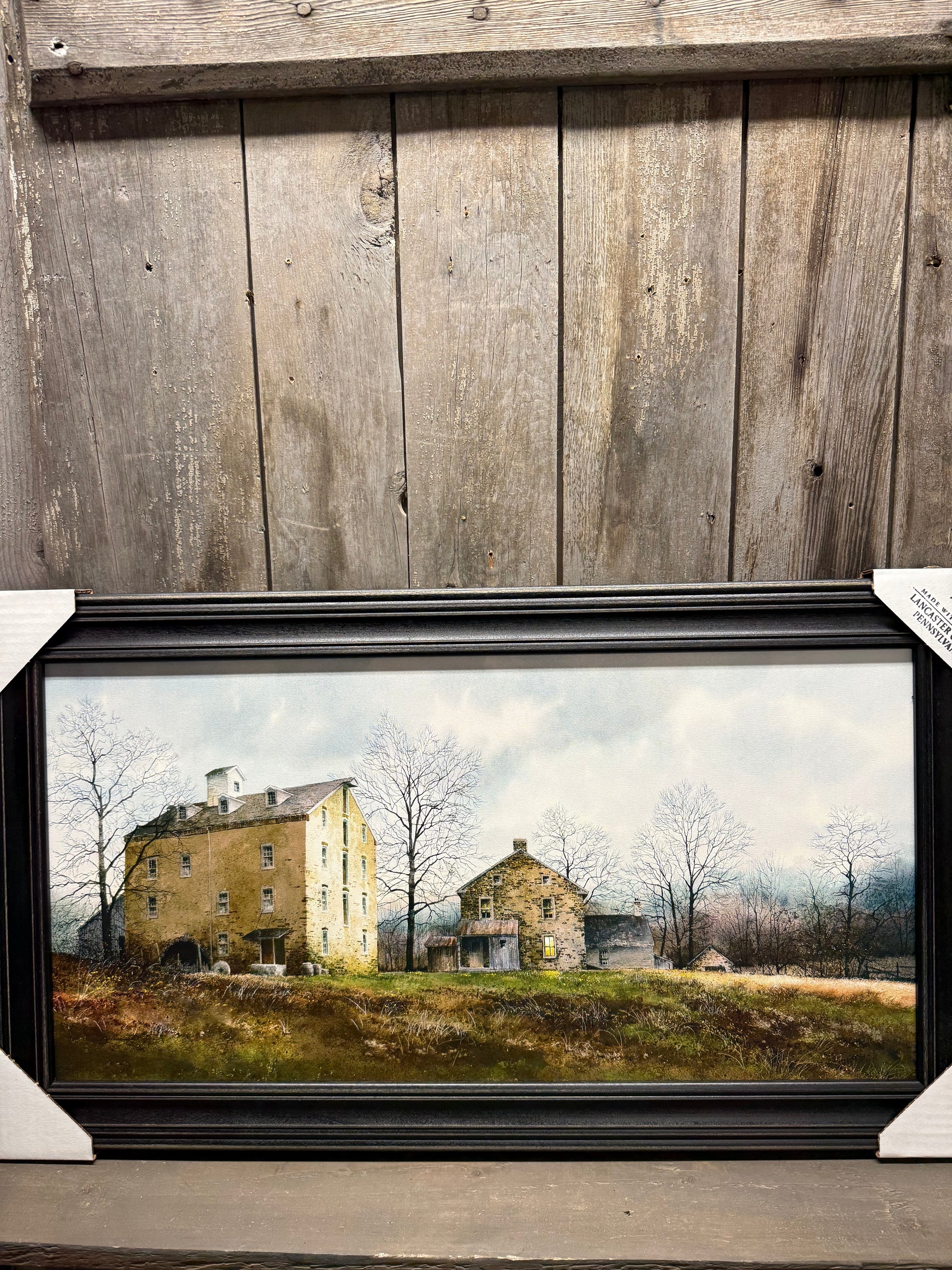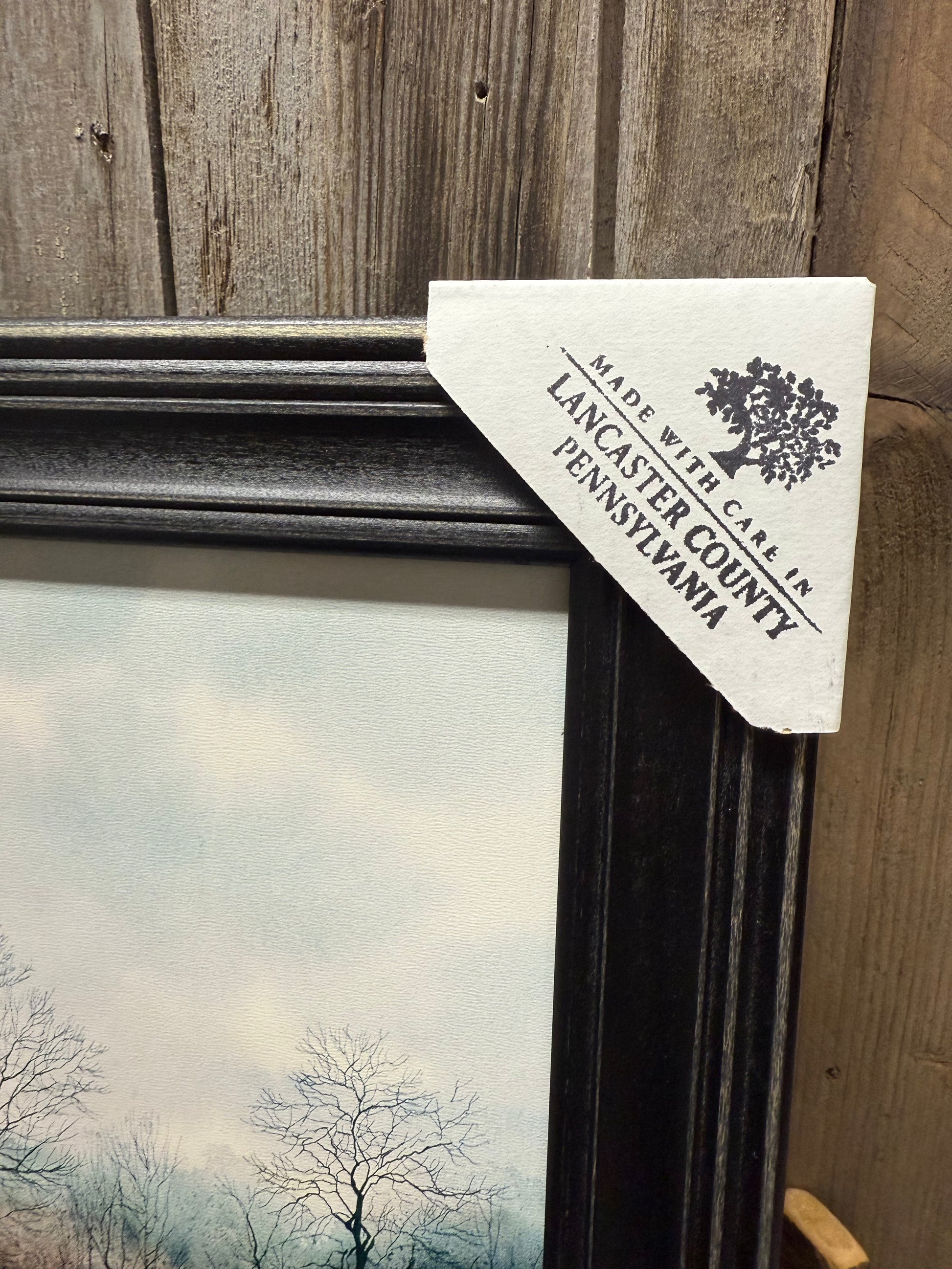 Our PA made framed art is lovely in quality and appearance. Professionally printed on canvas textured wood, the piece is given the look of a hand painted original. Made in Lancaster County, the ridge in the back of the frame makes for easy hanging. No glass. Protective covers protect the corners for shipping and are easily removed. Classic Black Frame. Ray and Bradley Hendershot, Artist