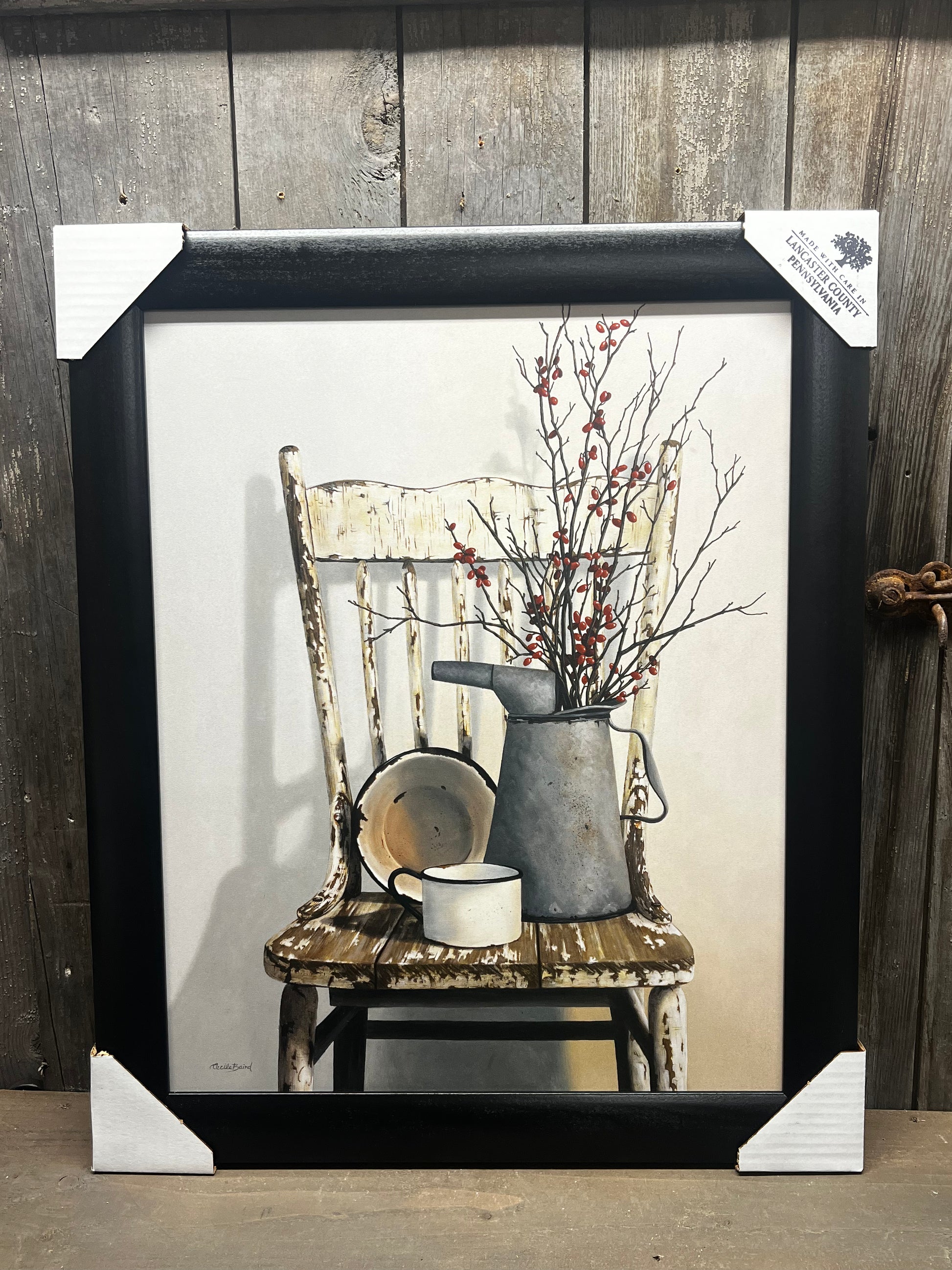 Framed Art, 16x20, WATERING CAN ON CHAIR