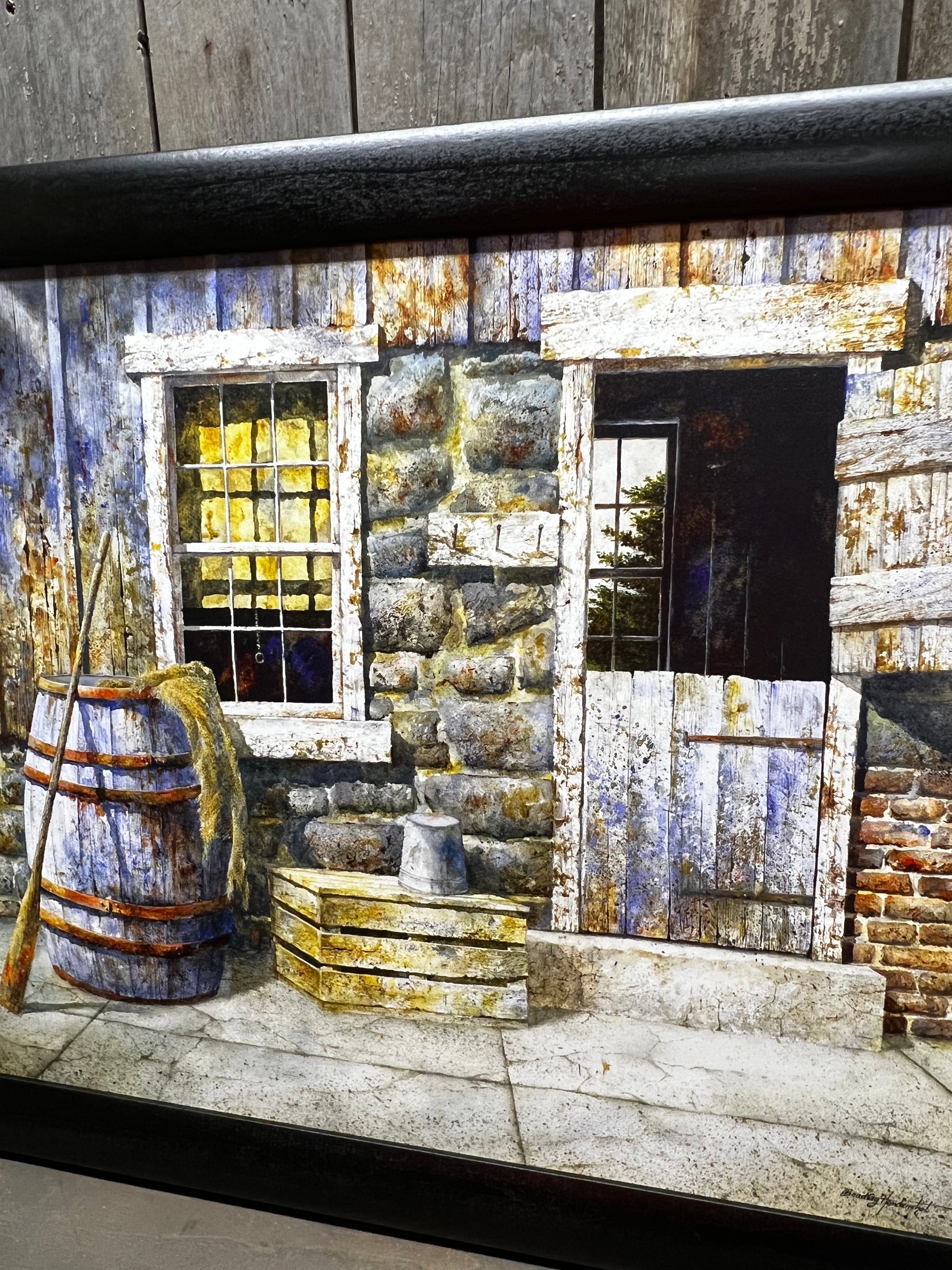 Our PA made framed art is lovely in quality and appearance. Professionally printed on canvas textured wood, the piece is given the look of a hand painted original. Made in Lancaster County, the ridge in the back of the frame makes for easy hanging. No glass. Protective covers protect the corners for shipping and are easily removed. Simple Black Frame.