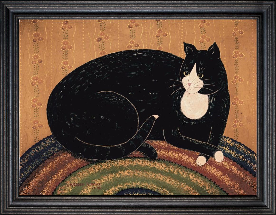 Framed Art, 18x24, BLACK CAT ON BRAIDED RUG