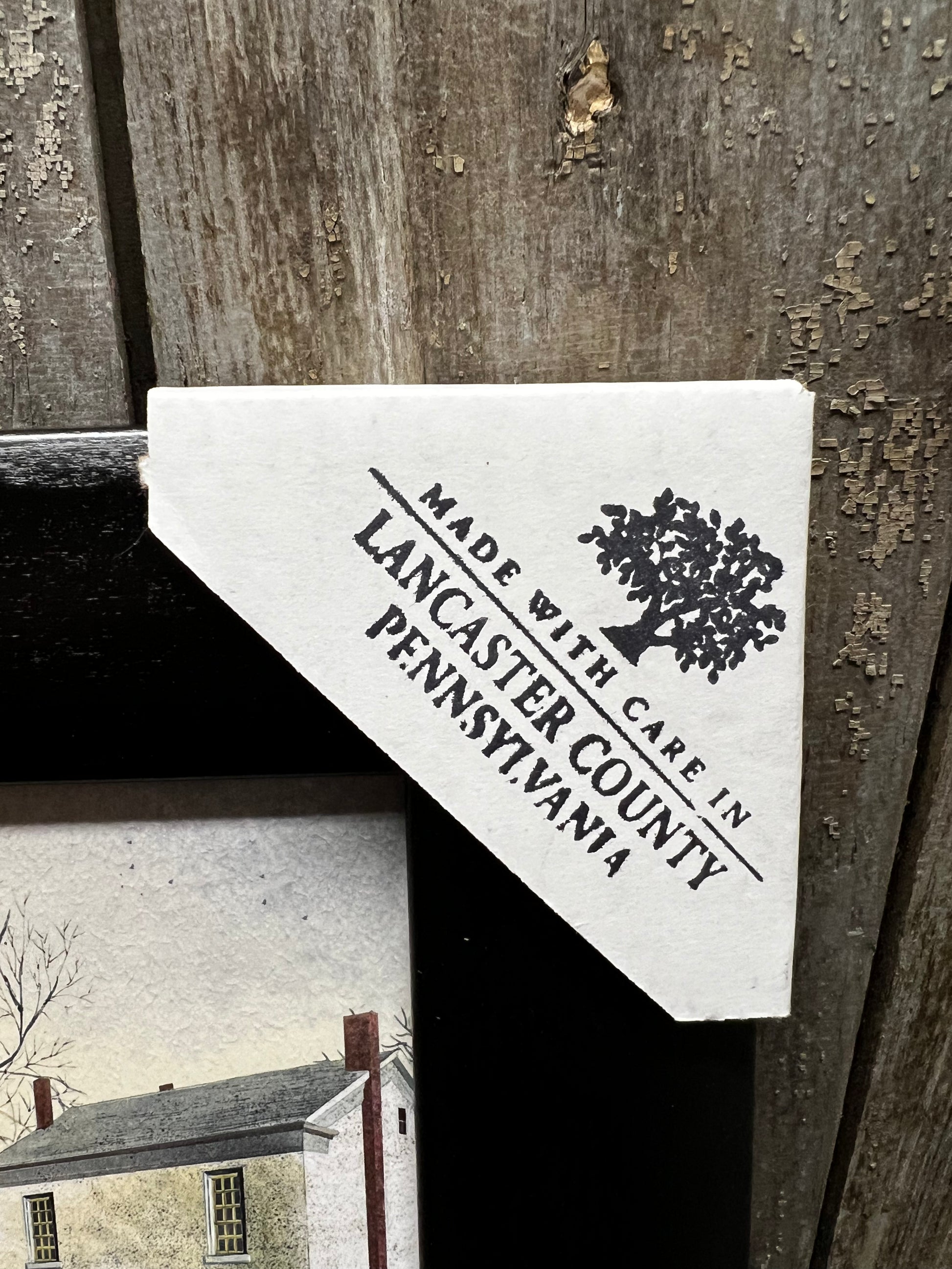 Our PA made framed art is lovely in quality and appearance. Professionally printed on canvas textured wood, the piece is given the look of a hand painted original. Made in Lancaster County, the ridge in the back of the frame makes for easy hanging. No glass. Protective covers protect the corners for shipping and are easily removed. Simple Black Frame.