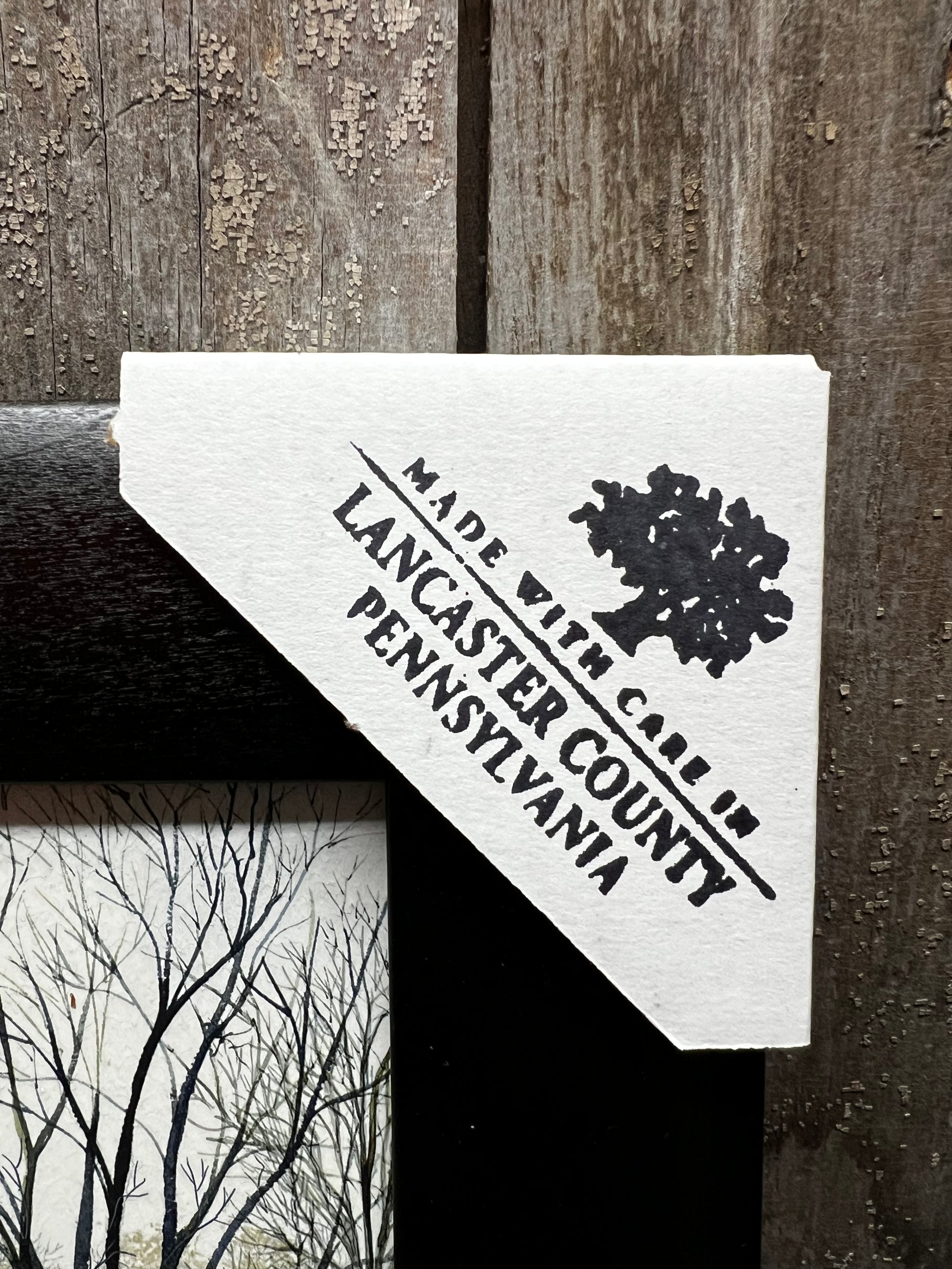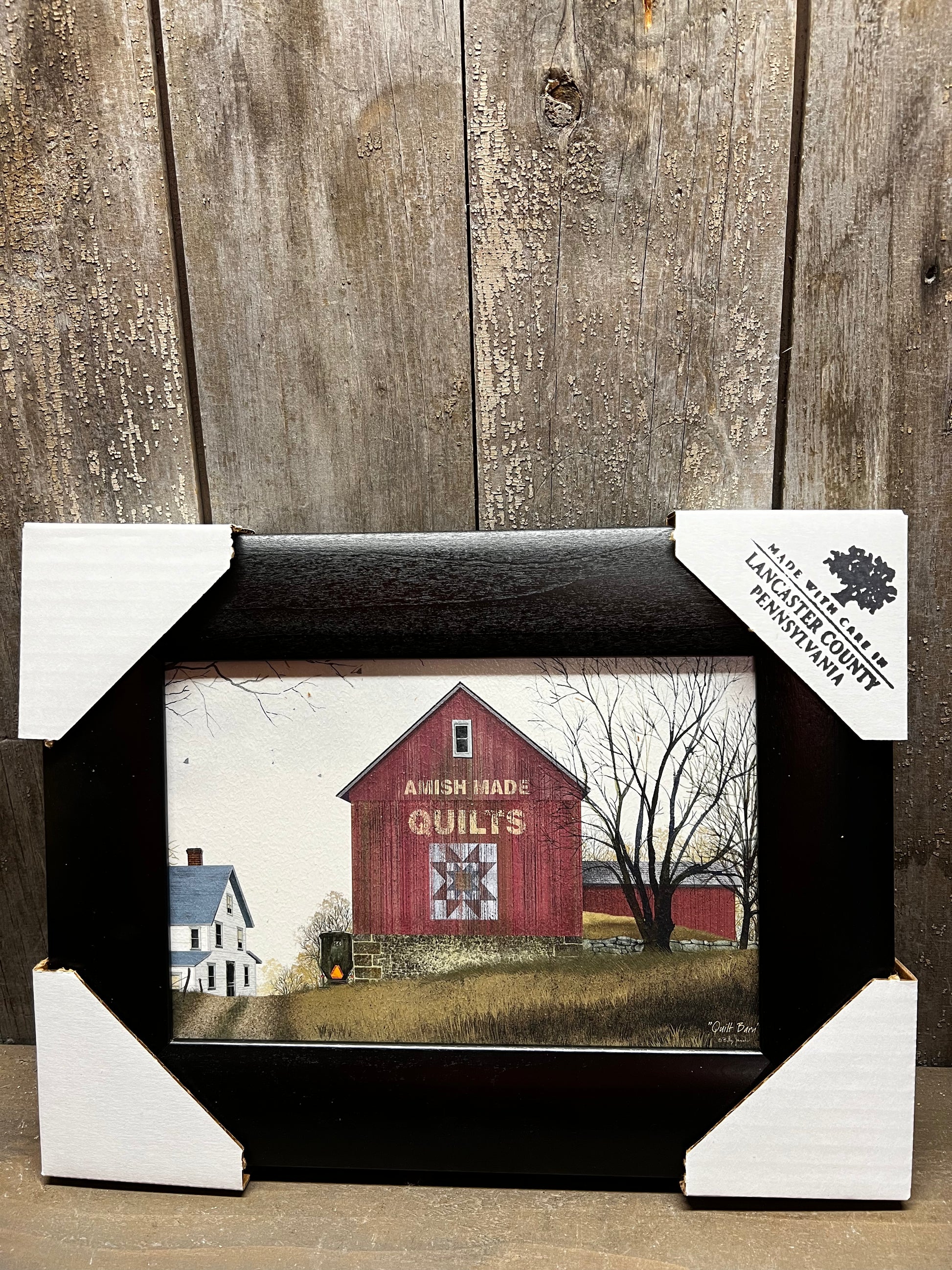A lovely Billy Jacobs reproduction. Our PA made framed art is lovely in quality and appearance. Professionally printed on canvas textured wood, the piece is given the look of a hand painted original. Made in Lancaster County, the ridge in the back of the frame makes for easy hanging. No glass. Protective covers protect the corners for shipping and are easily removed. Simple Black Frame.