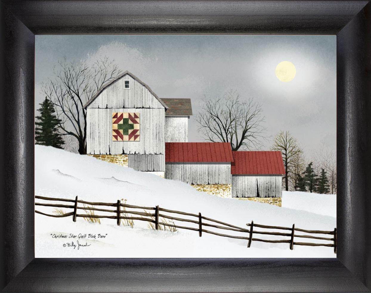 Framed Art, CHRISTMAS STAR QUILT BLOCK BARN