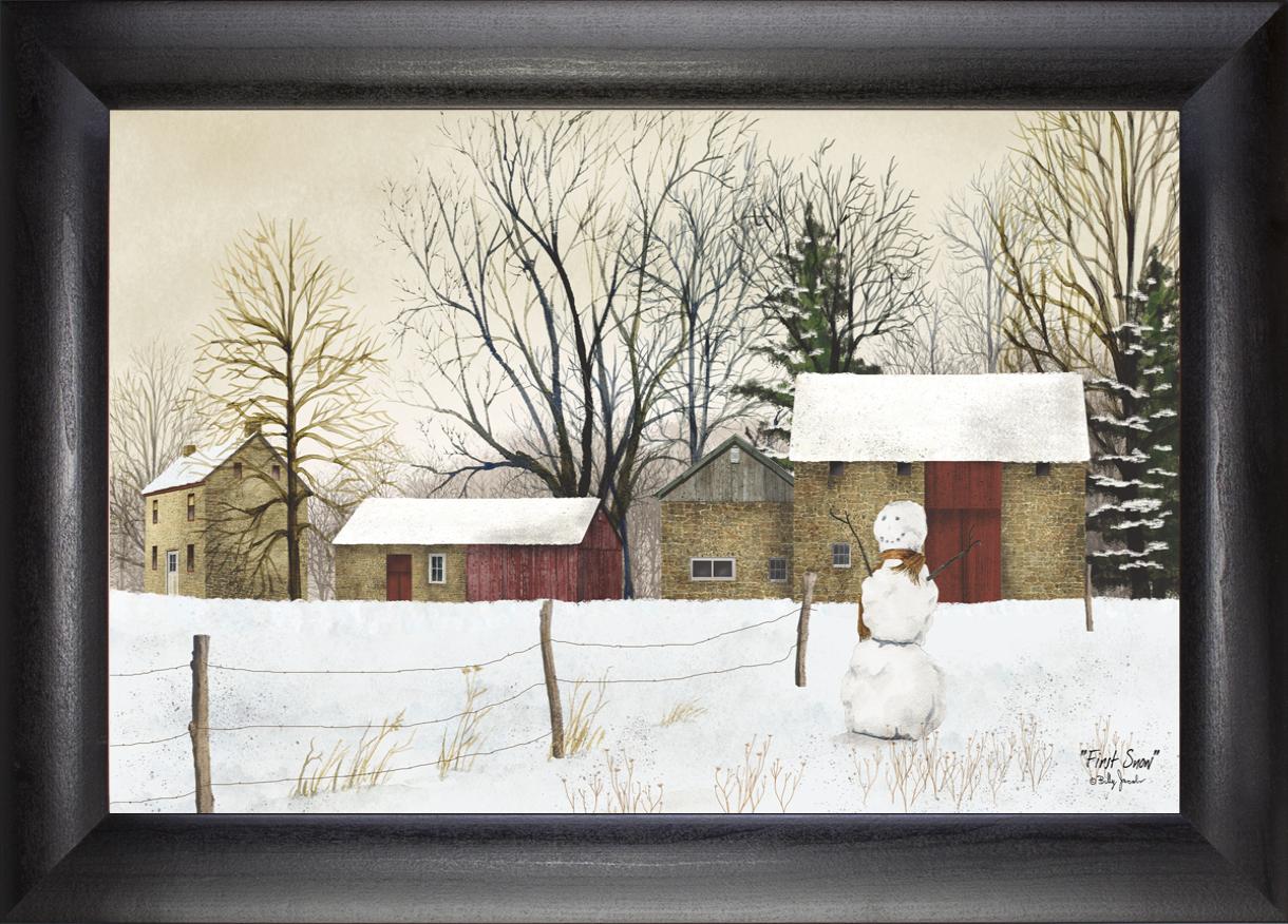Our PA made framed art is lovely in quality and appearance. Professionally printed on canvas textured wood, the piece is given the look of a hand painted original. Made in Lancaster County, the ridge in the back of the frame makes for easy hanging. No glass. Protective covers protect the corners for shipping and are easily removed. Simple Black Frame. Billy Jacobs ****NOTE...Due to the extra handling charges to get this to you safely, the larger size of this print is more. Please choose accordingly.