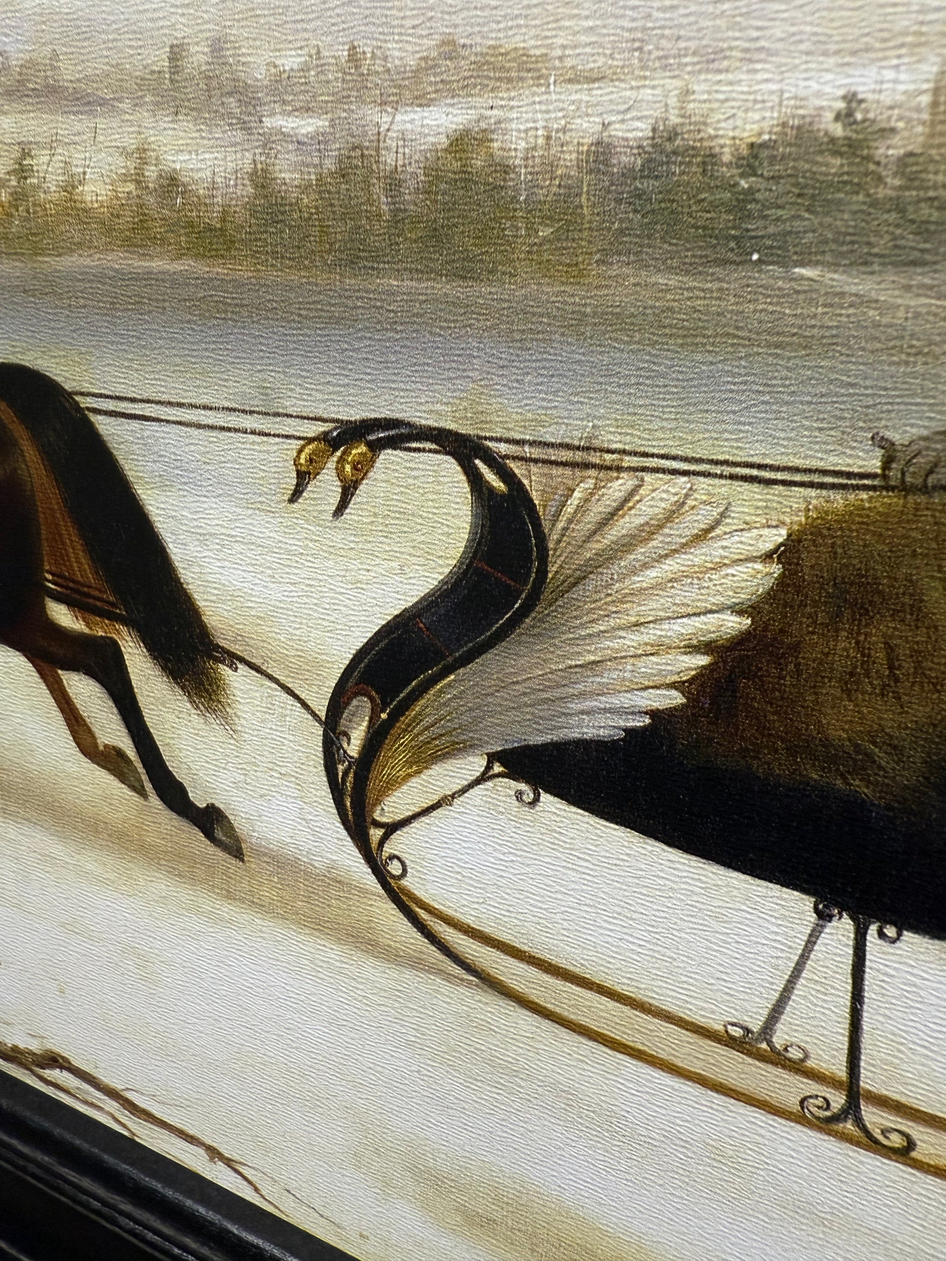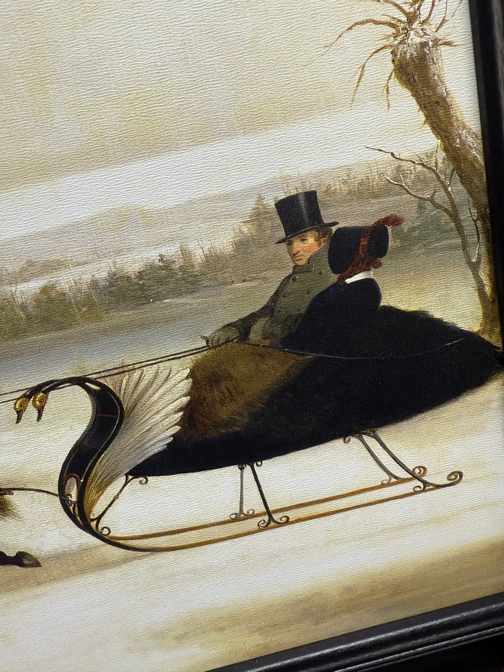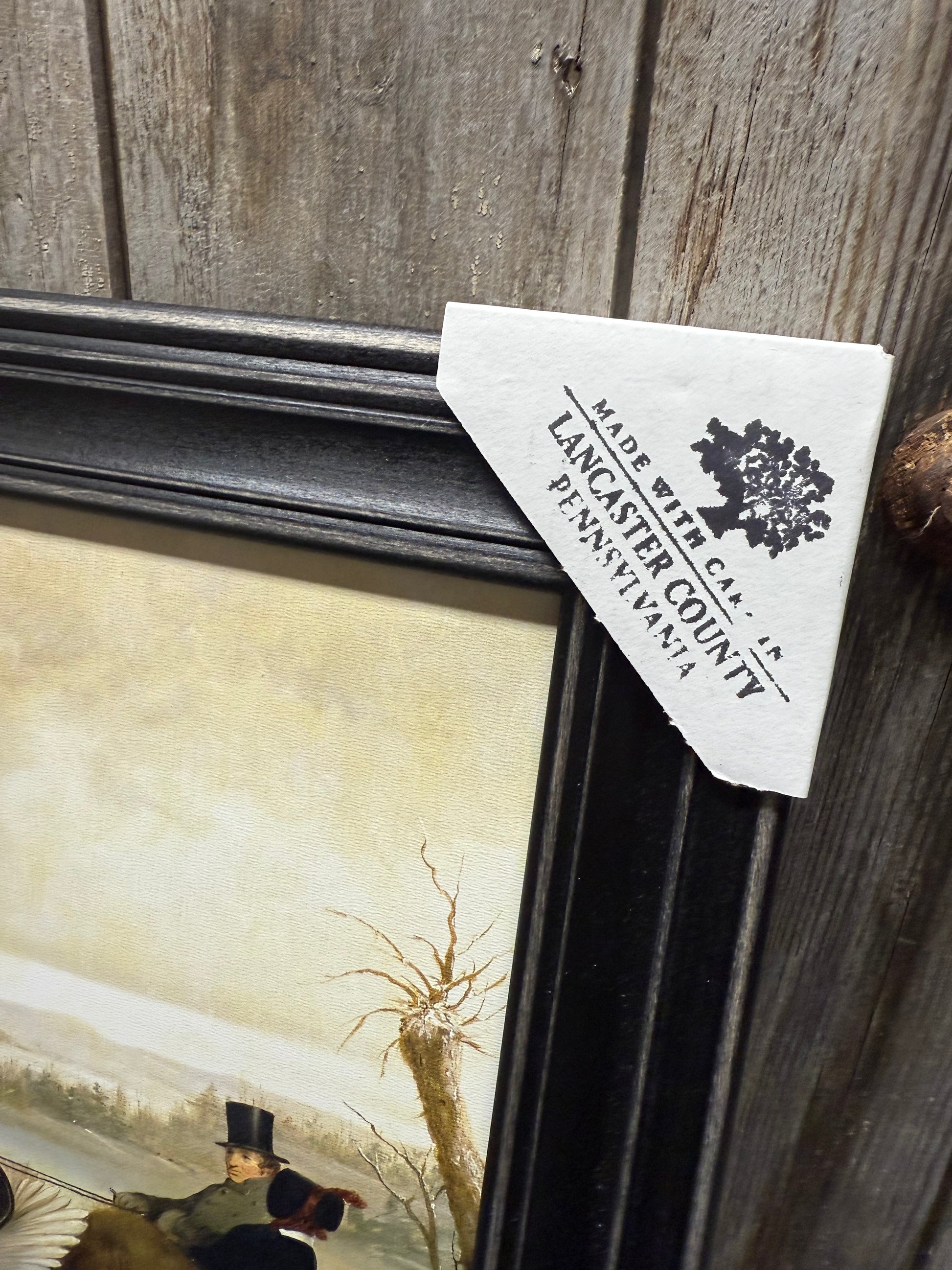 Our PA made framed art is lovely in quality and appearance. Professionally printed on canvas textured wood, the piece is given the look of a hand painted original. Made in Lancaster County, the ridge in the back of the frame makes for easy hanging. No glass. Protective covers protect the corners for shipping and are easily removed. Classic Black Frame.
