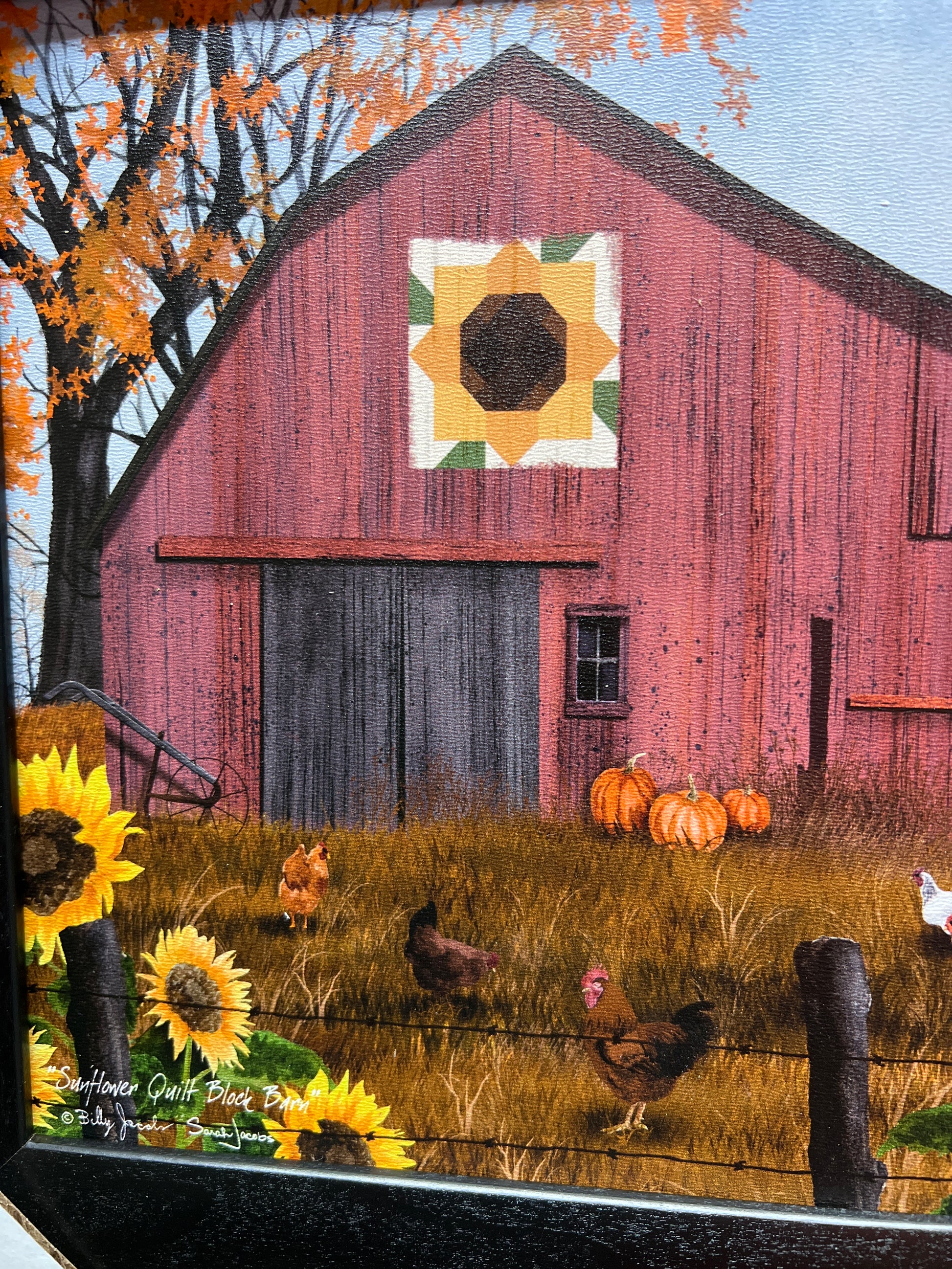 Framed Art, SUNFLOWER QUILT BLOCK BARN