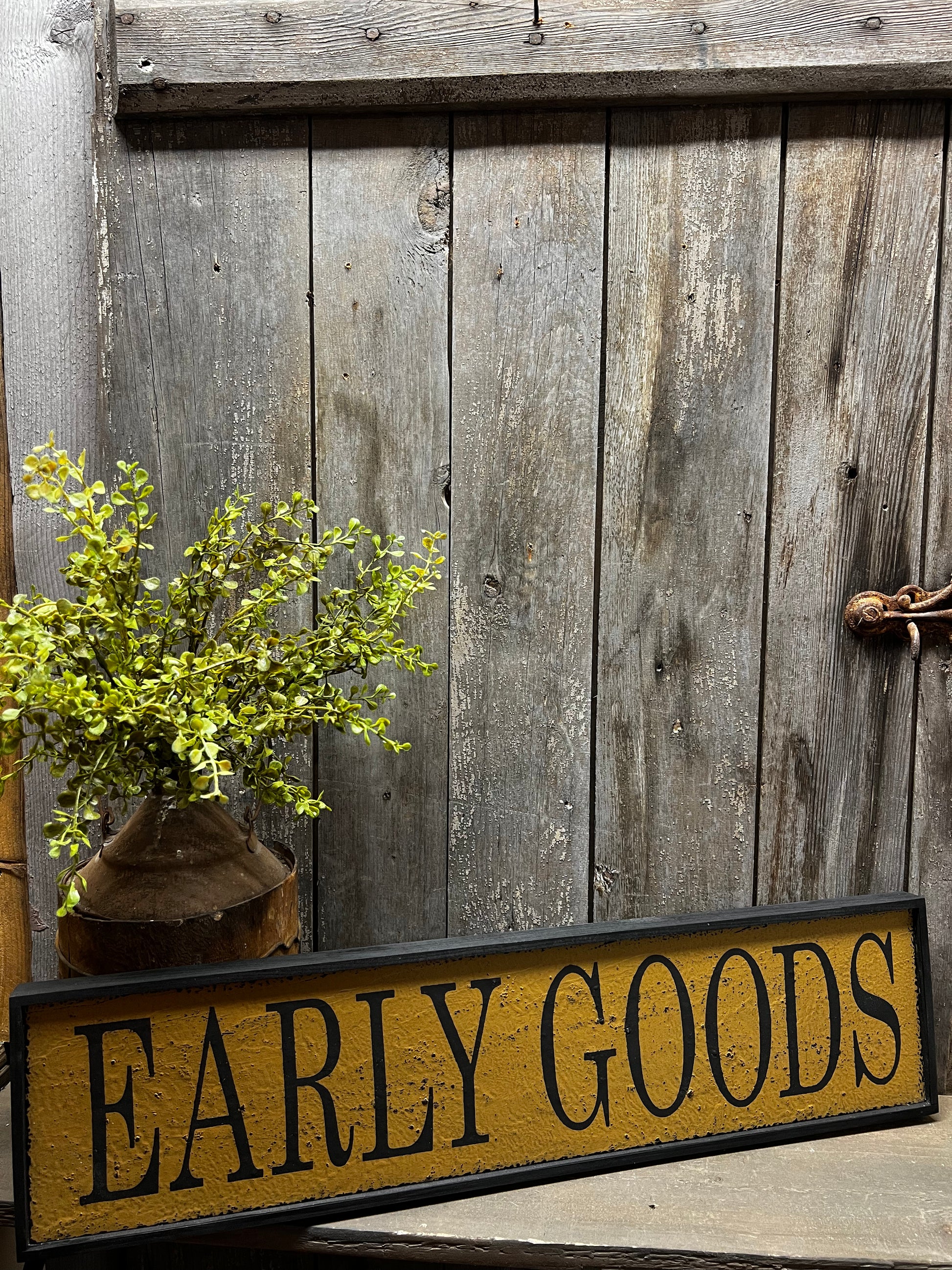 Framed Sign, 24"x 6", EARLY GOODS