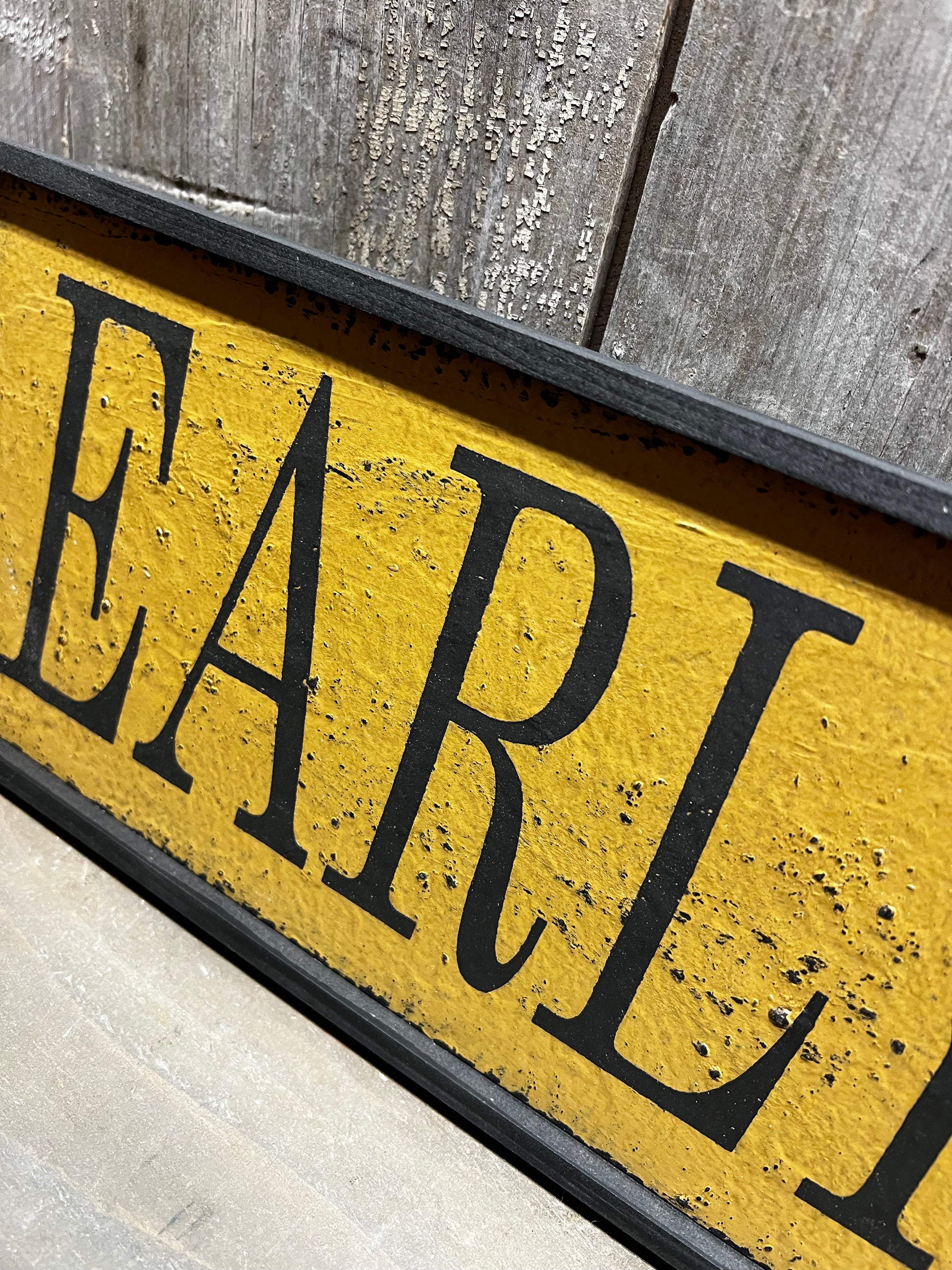 Distressed and framed, the textured black comes through the pumpkin paint so beautifully! Made in America.