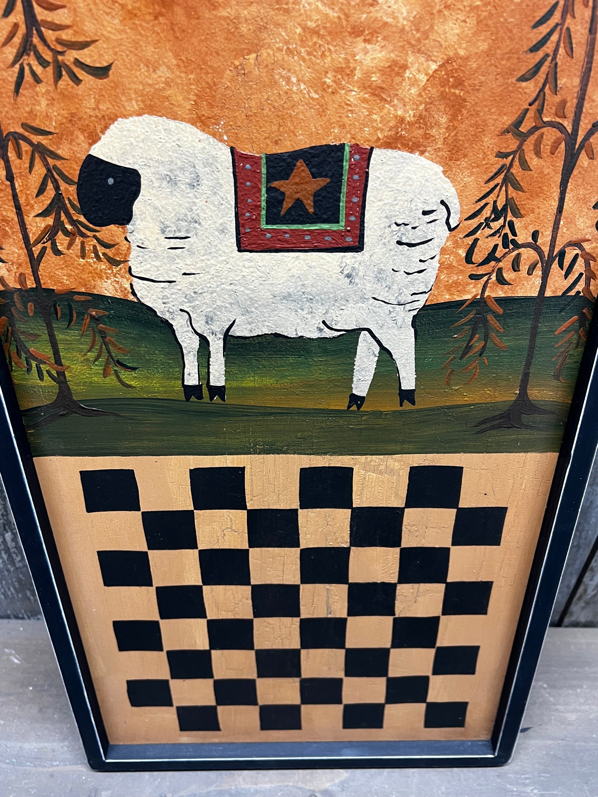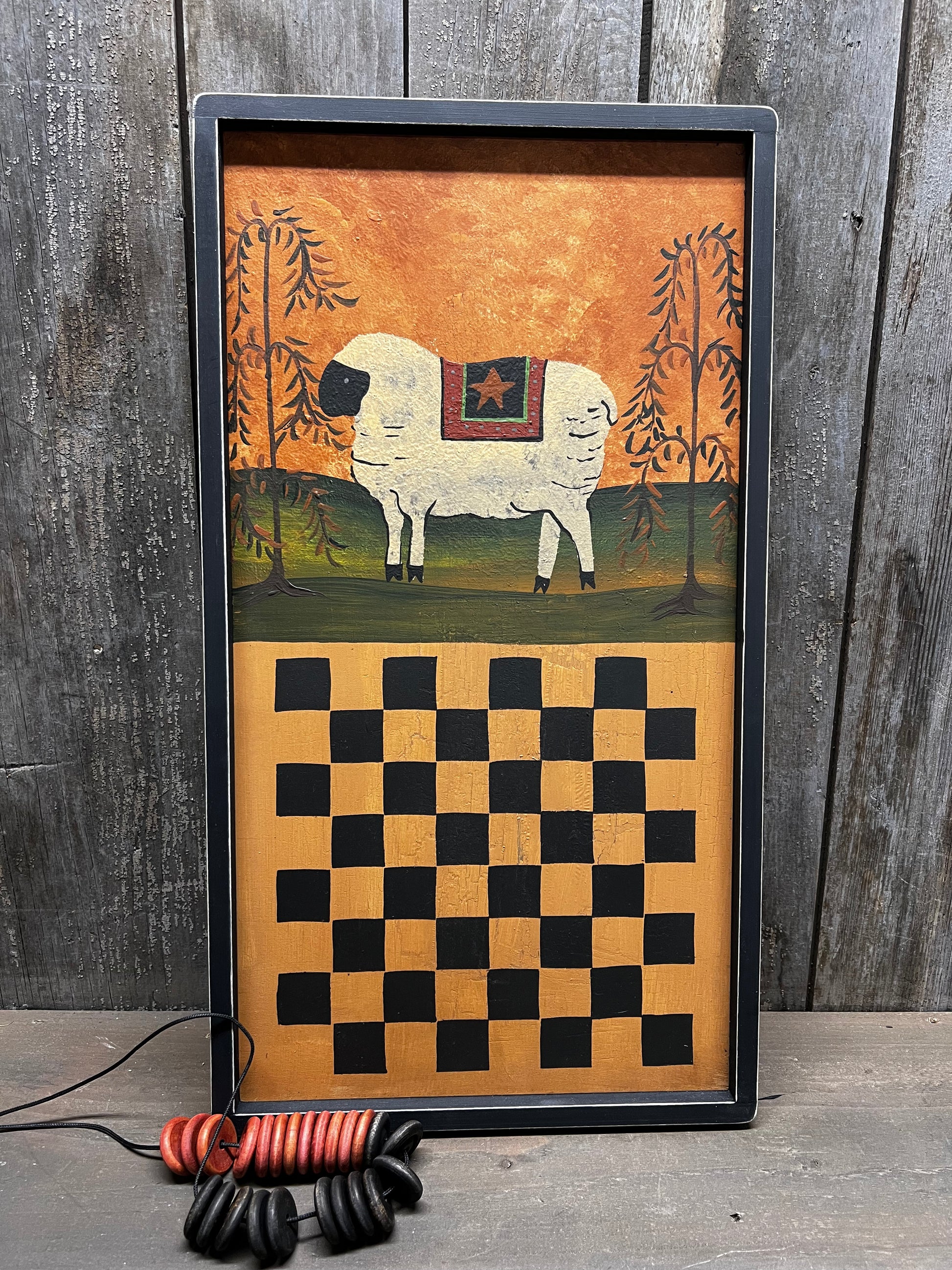 Game Board, 19", CHECKERS, FOLK SHEEP