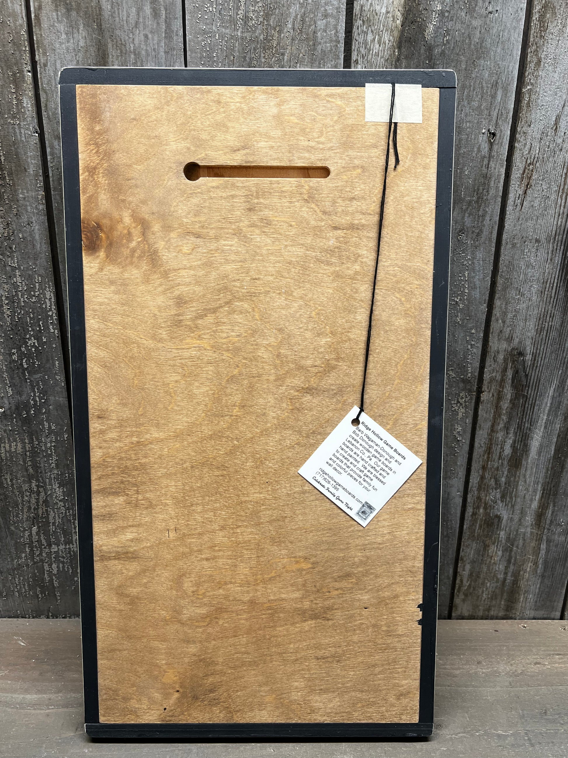 Made in PA. Each board is hand-crafted and hand-painted on wood, using milk paints, acrylics or oils. The game is antiqued and varnished to protect the painting and allow the board to be used and passed on to future generations. Some designs are Reproduction and the Folk Art style are original to the crafter. Checkers comes with wooden playing pieces and directions. This board measures 19" x 10.5" and has a slot for hanging.