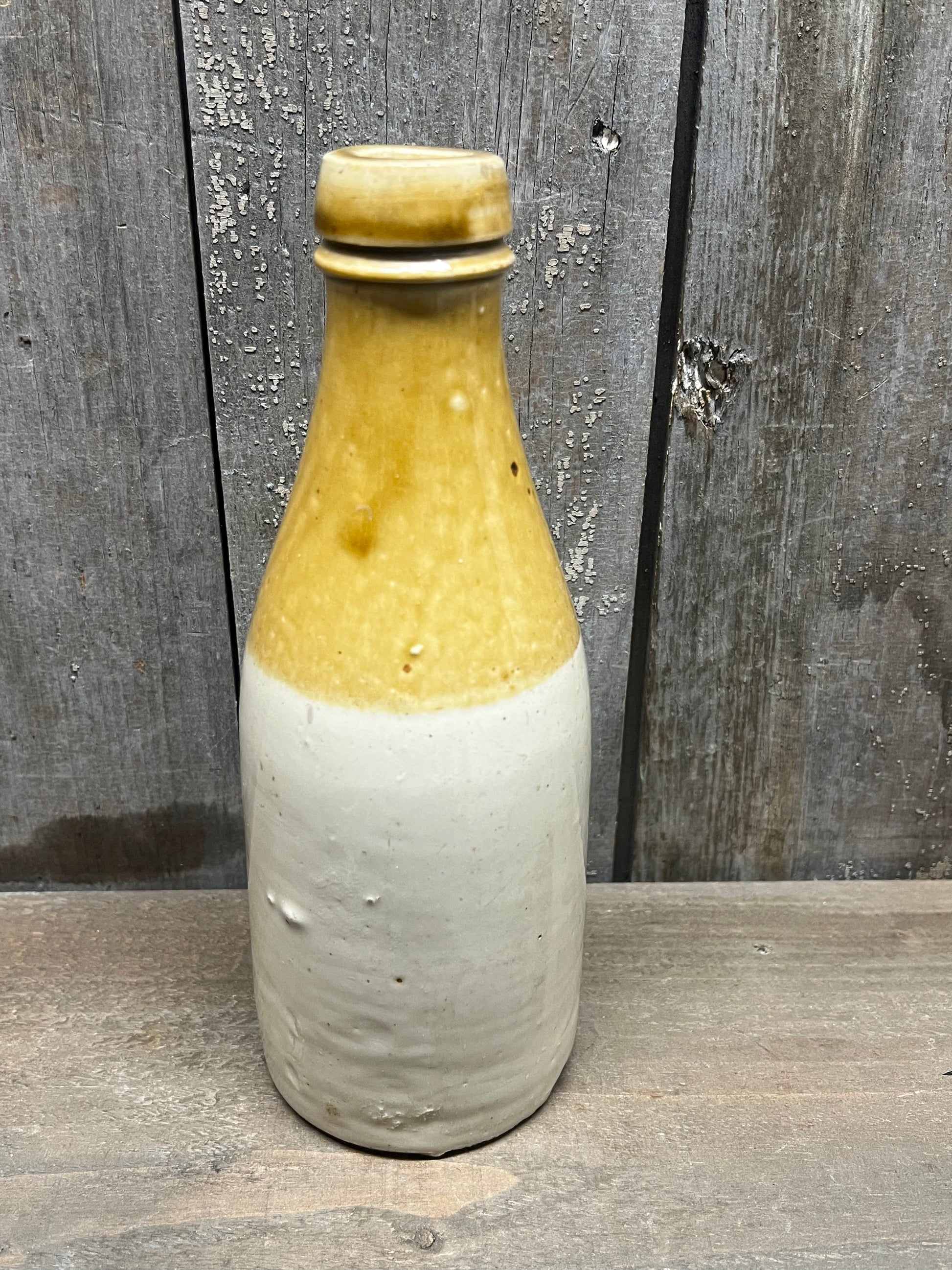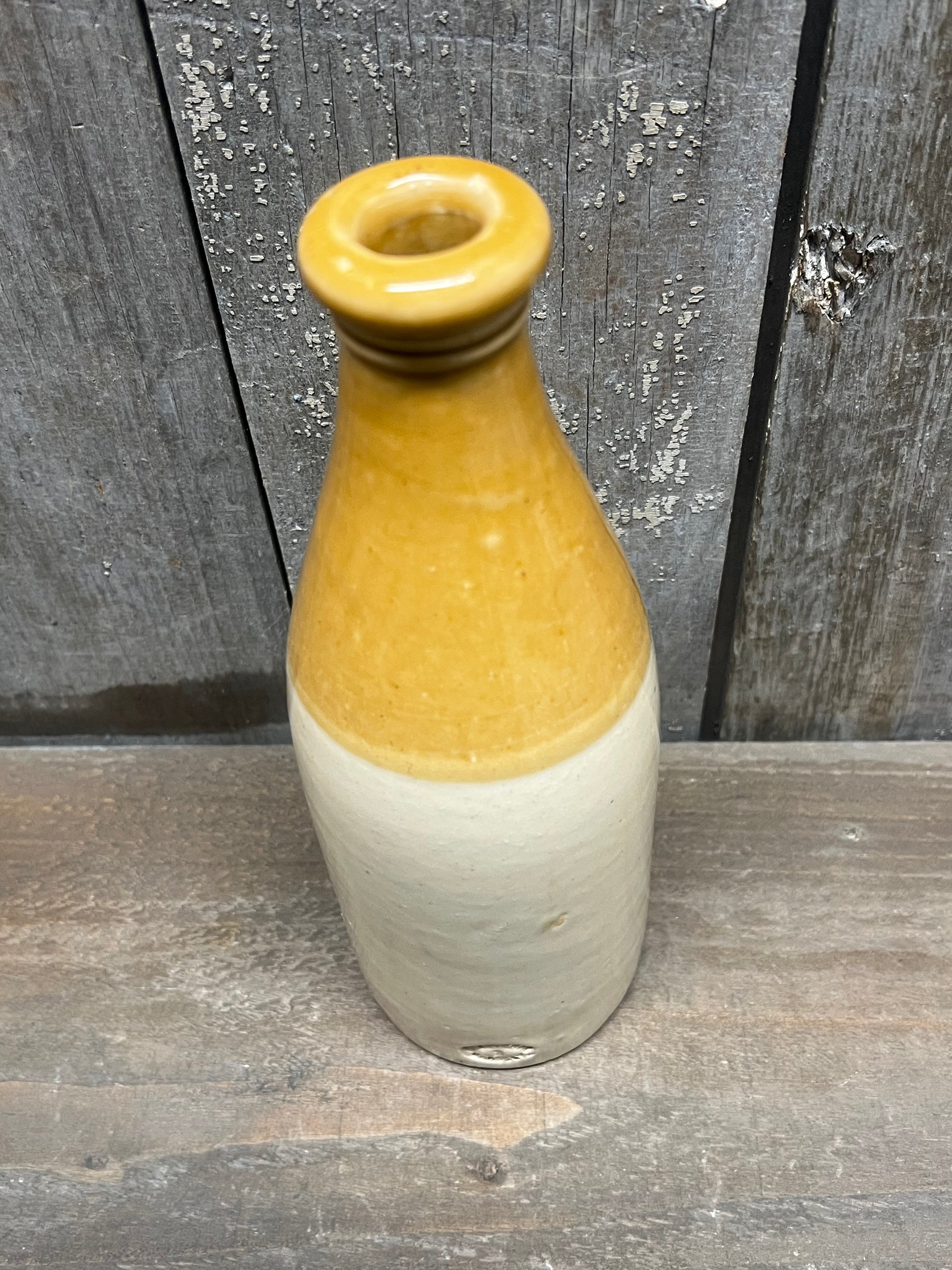 Love the Mustard and Cream color of these stoneware bottles. Two of them are marked Scotland and one is unmarked. Perfect as a grouping or for springs of greenery or berries. Sold individually, please scan the photos as each one has slight issues of wear; expected for the age. Overall very good condition.