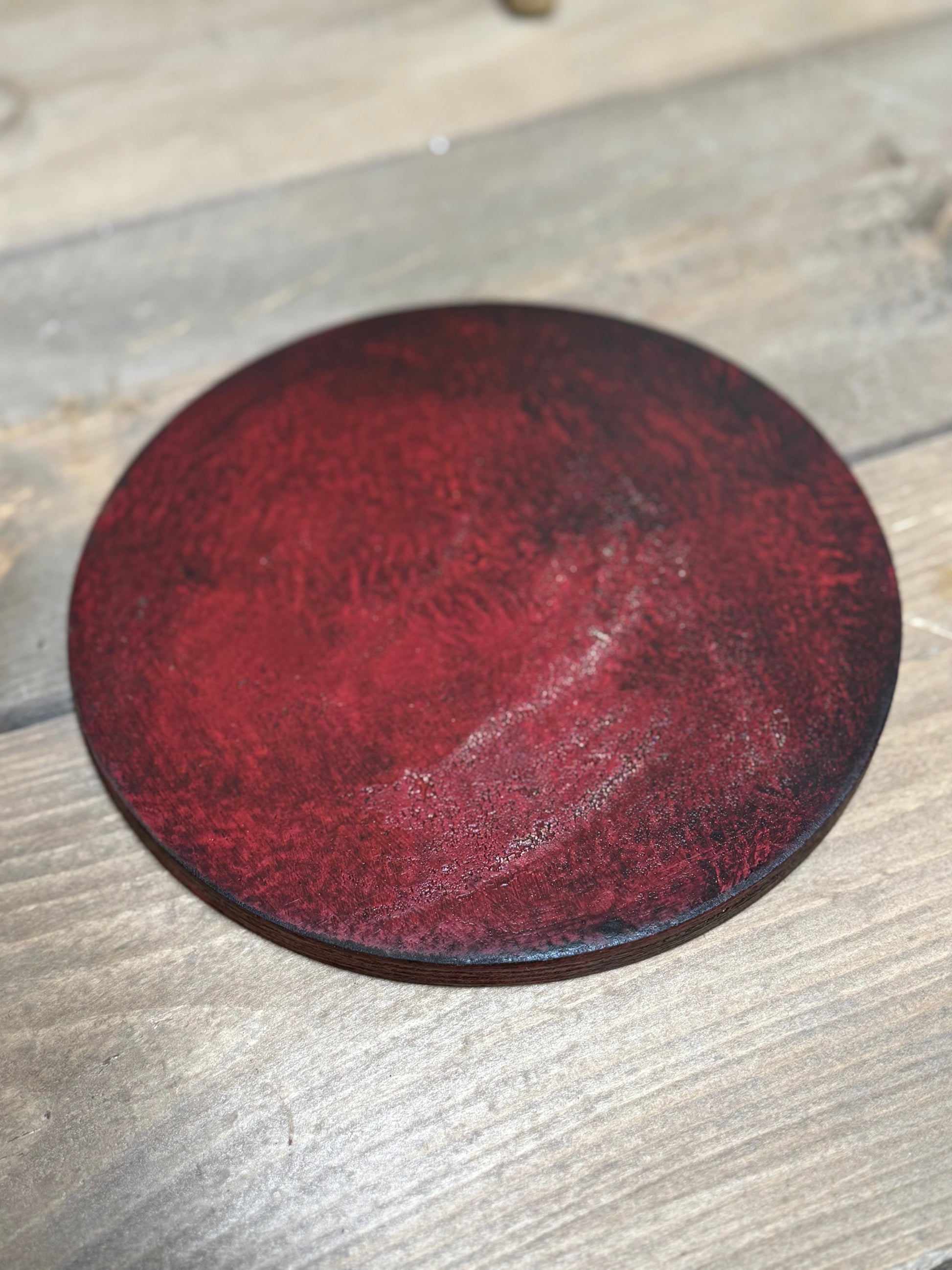 8" Confederate Red Plate, distressed and stained in black and brown.