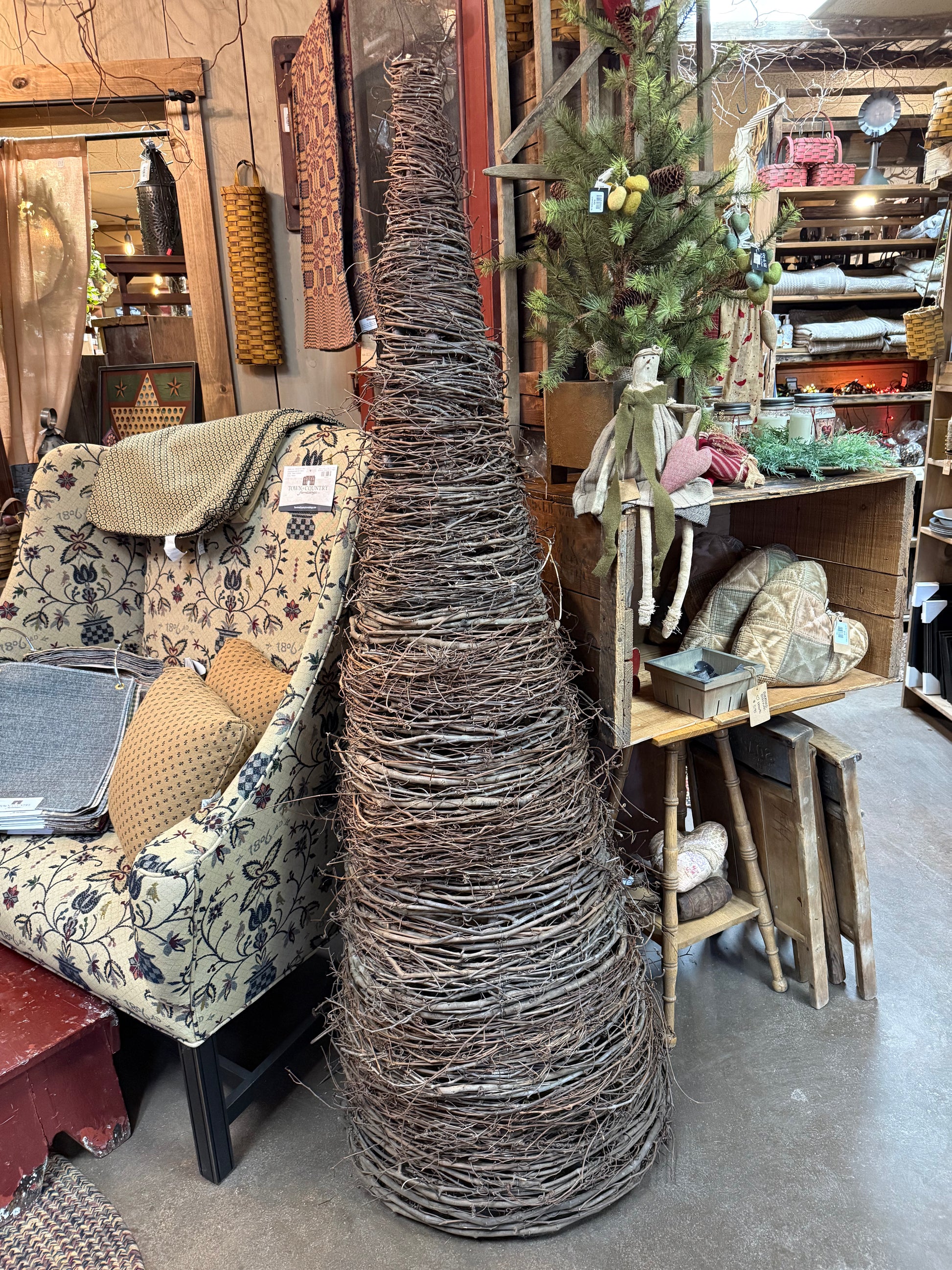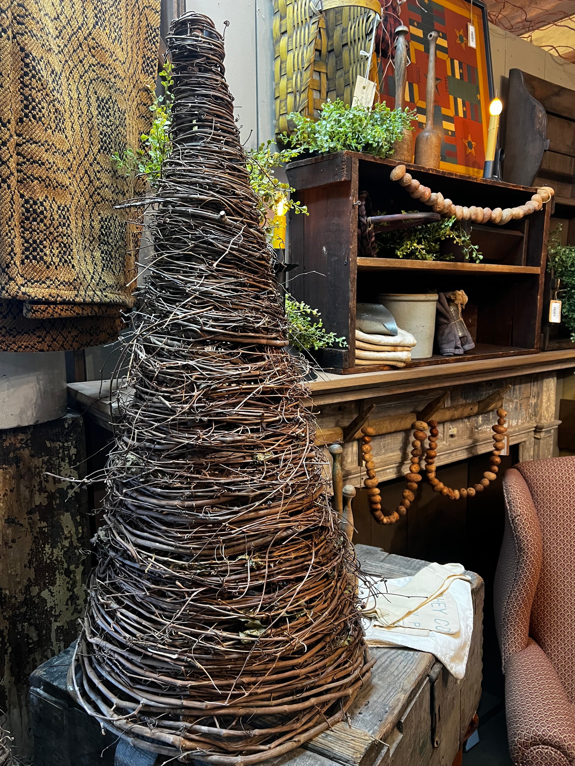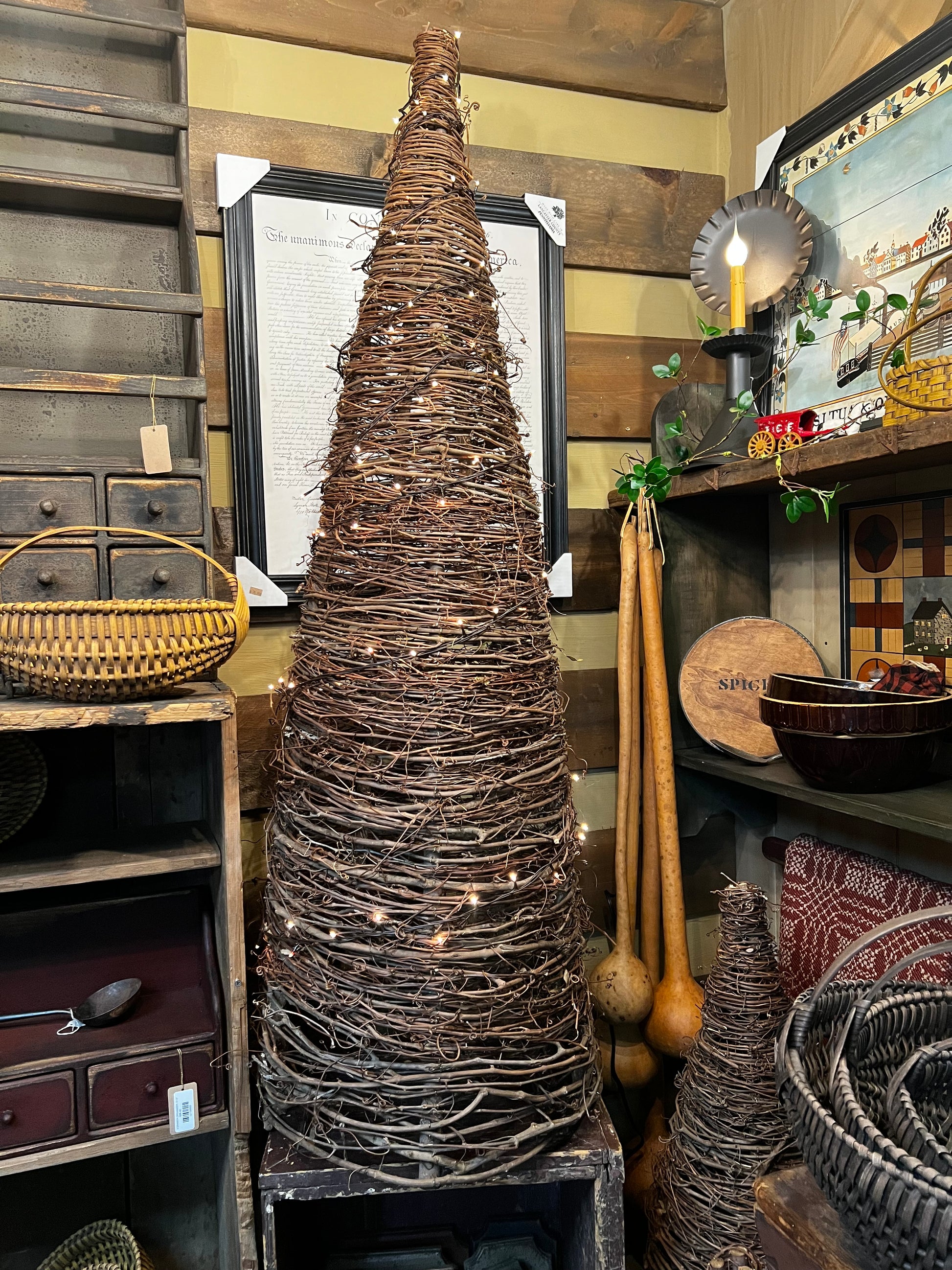 Made in Ohio, our grapevine trees are made from trimmed vines. The come unlit but you can easily wrap them with your favorite lights. 5' tree is shown with a string of lights, not included.