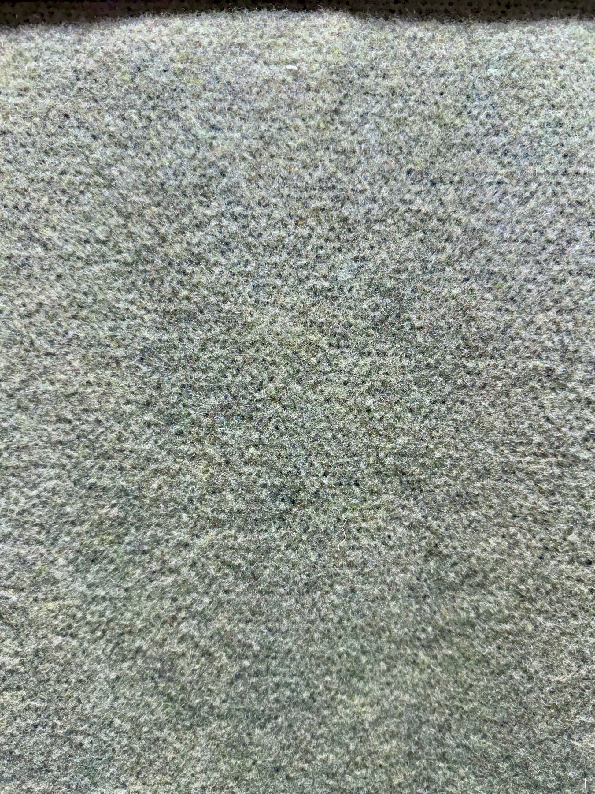 A mixture of pale greens, natural and herby. Dyed on Morse Code wool for a faint dotted pattern look.