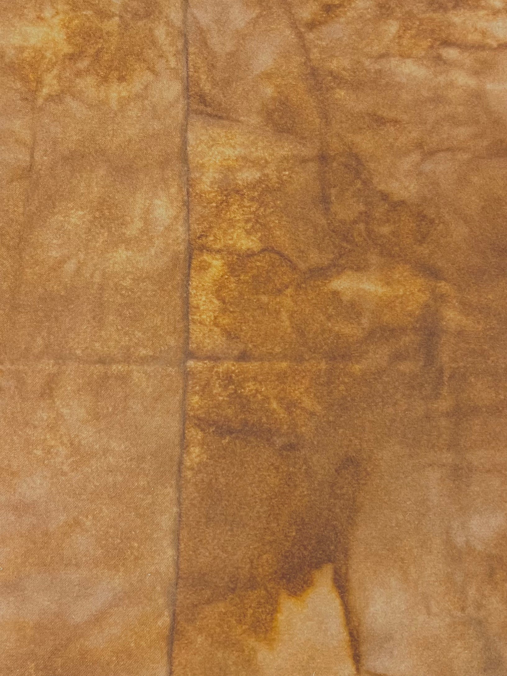 A mixture of tan, brown and rust softly muted together. Earthy, natural and herby. Dyed on Natural wool, no pattern. Fat Quarters measure on average 17.5"x 27.5" (some pieces may be slightly smaller; depends on how it dries)