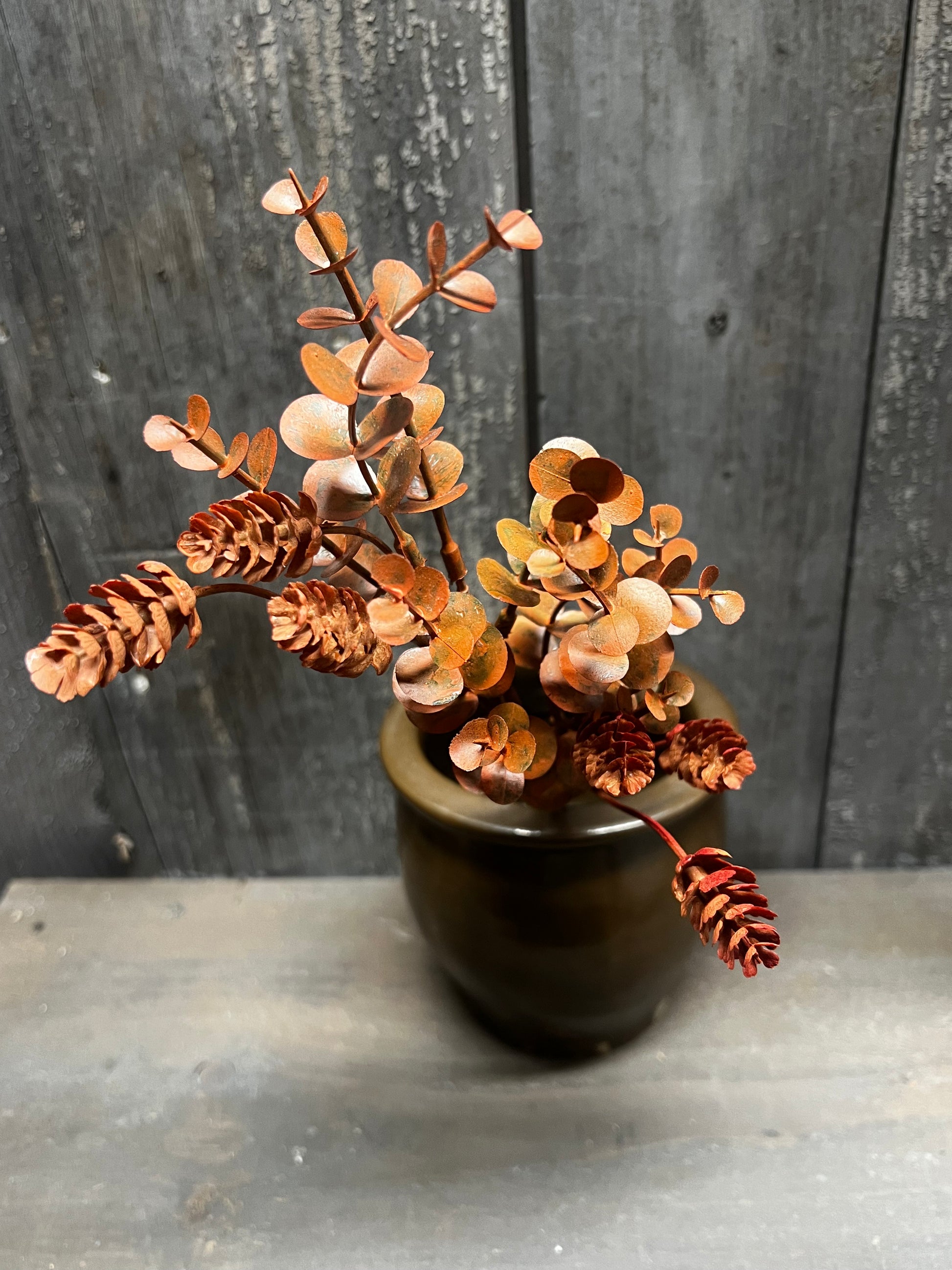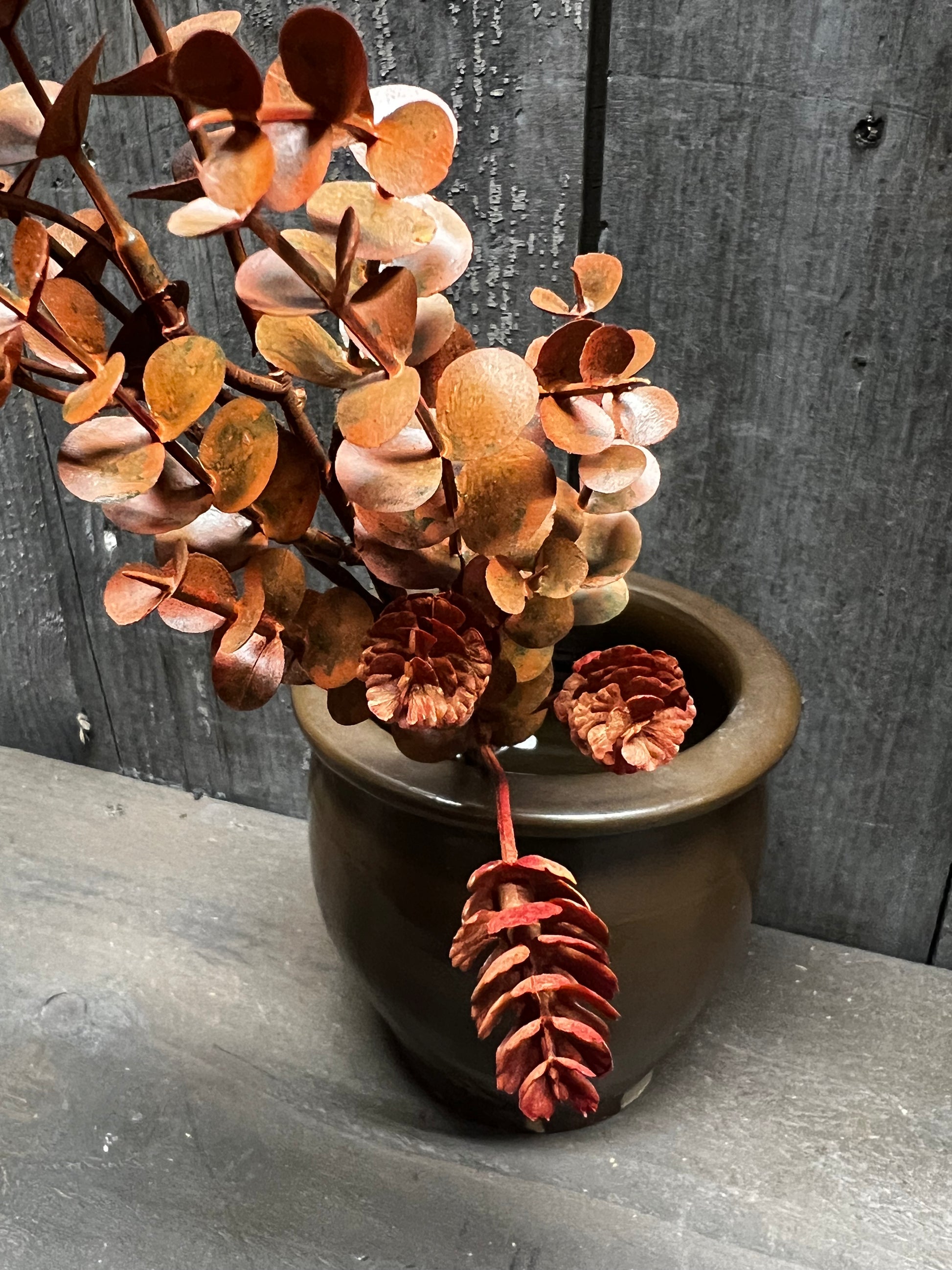 Hops and Eucalyptus combine in a lovely deep orange pick. Perfect for small spaces and fillers...even tucked in a wreath, 12" tall.
