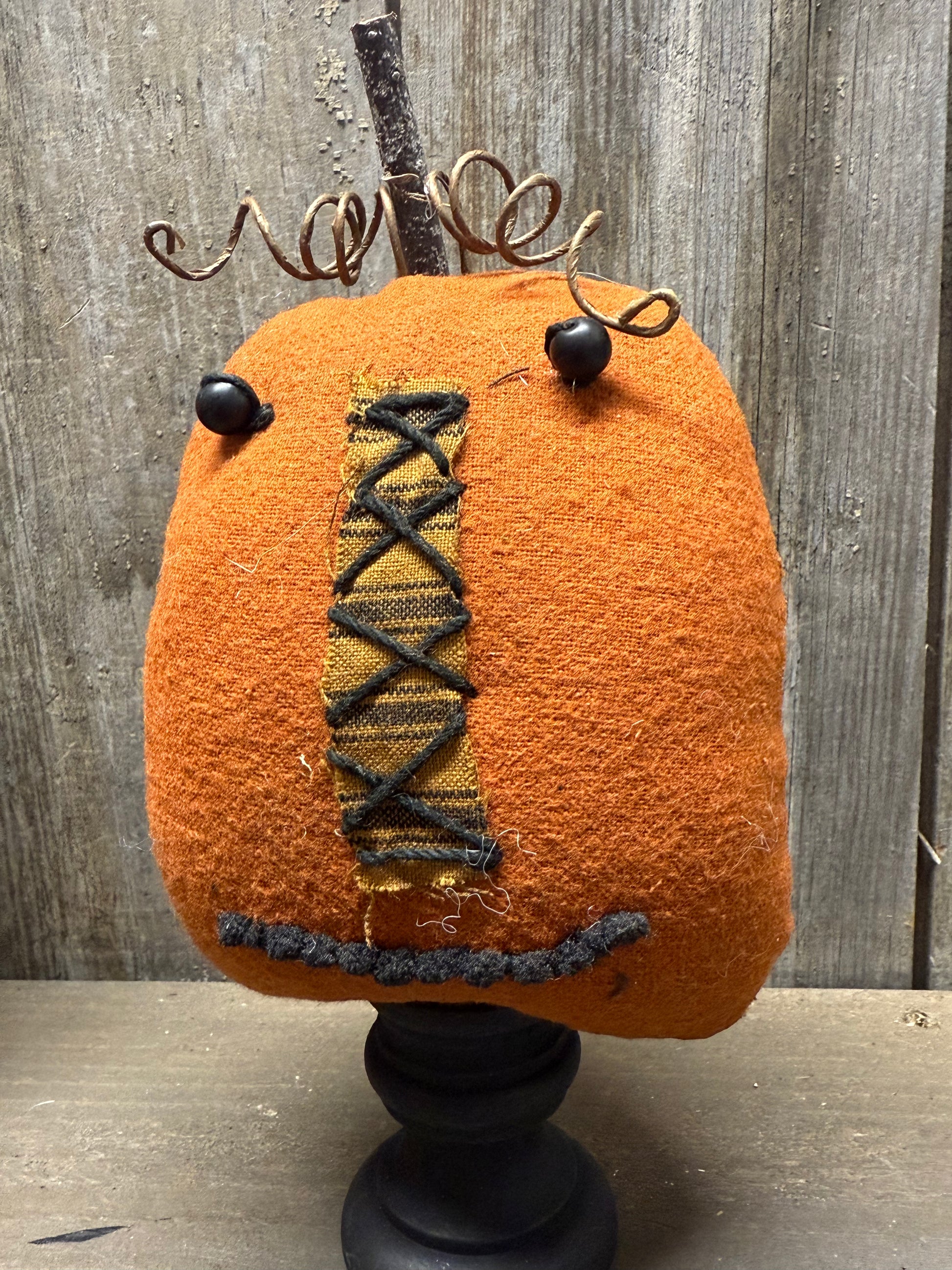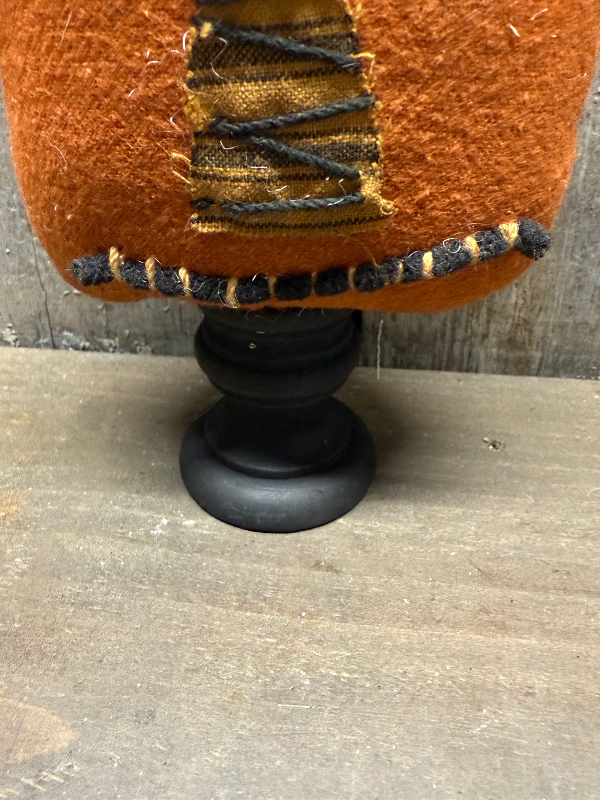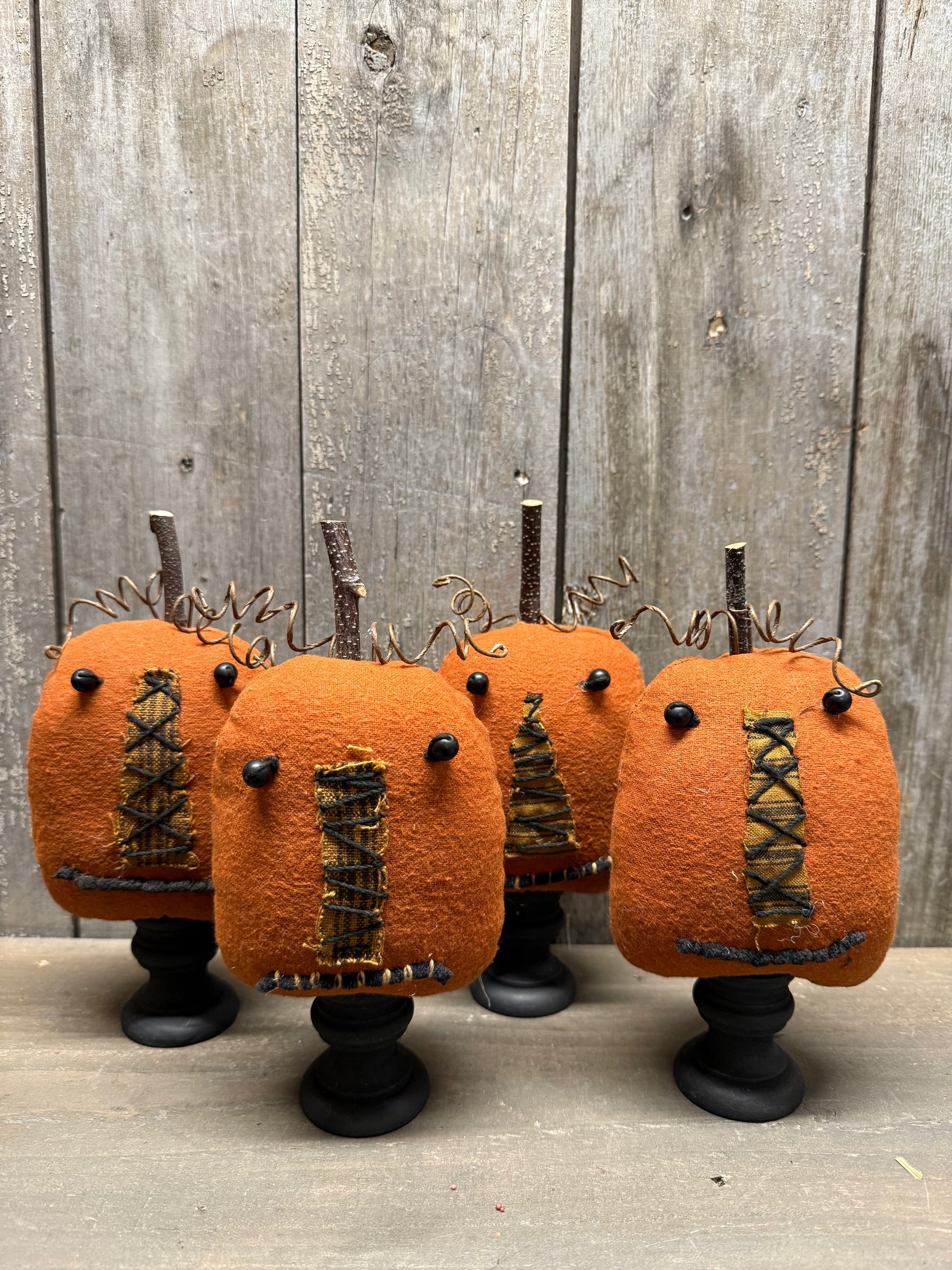 Flannel Jack on a wooden base, hand stitched face and a curly stem make for a Fall favorite. Each one is hand stitched so expect slight variations in fabric and expression. Made in PA