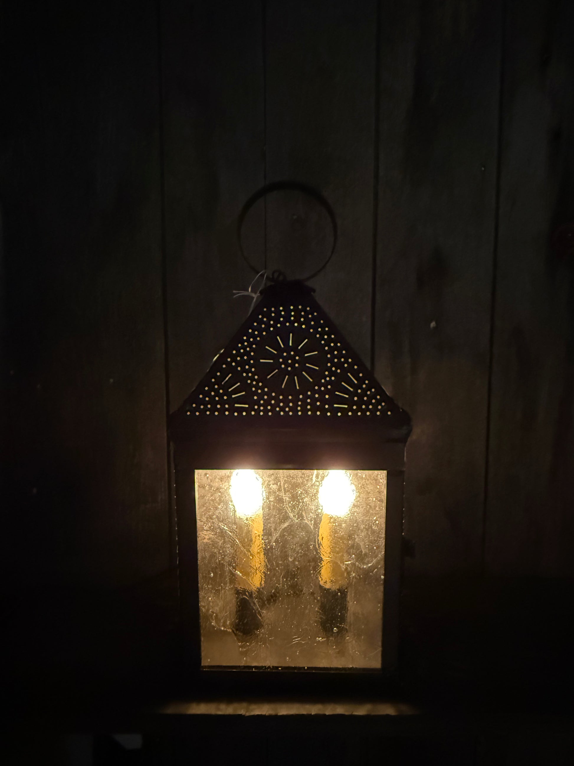 A lovely lantern with an aged glass door is the perfect accent to any room. Show with silicon bulbs, NOT INCLUDED. ****The glass panels are meant to look old and have bubbles/cracks/crazing in them. Each will be different.