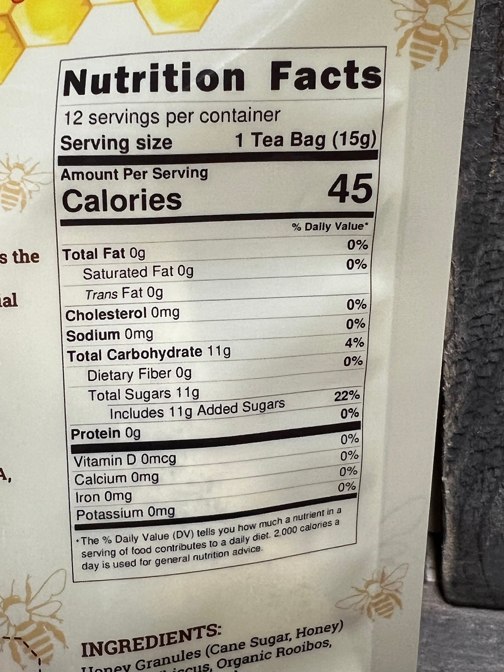 Package of 12 - 0.49 ounce bags, honey granules are in the tea bag.