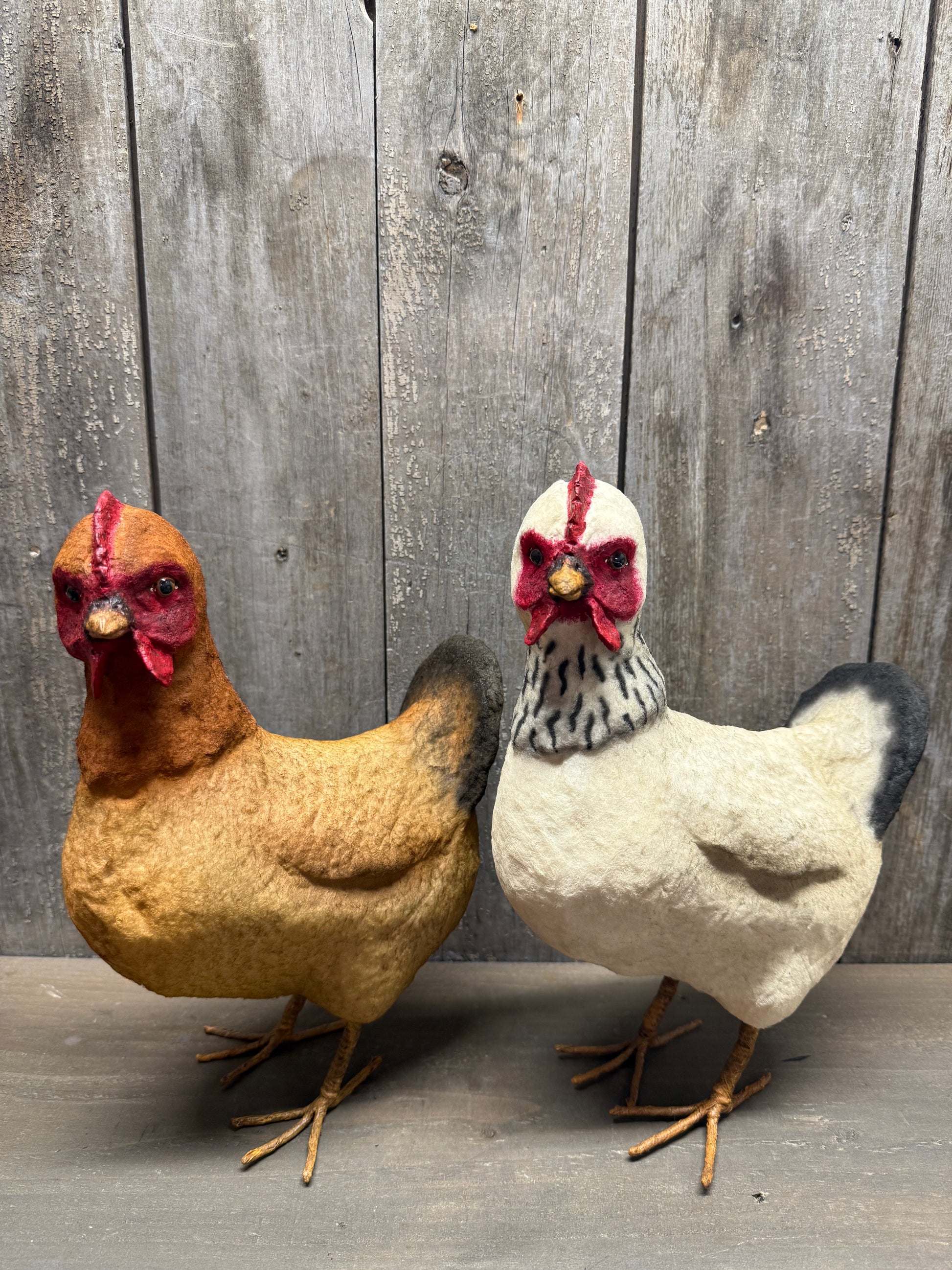 Adorable Hen! Just look at the face. On average will measure 10.5" high and 7.5" long.