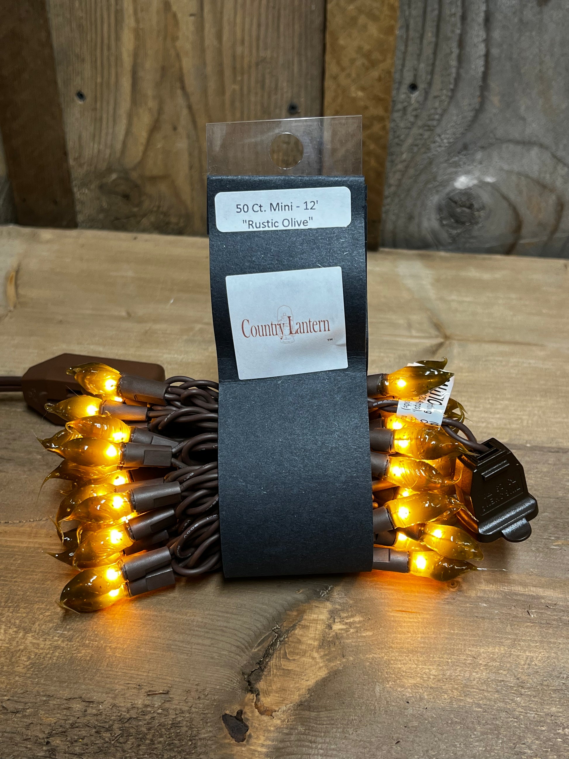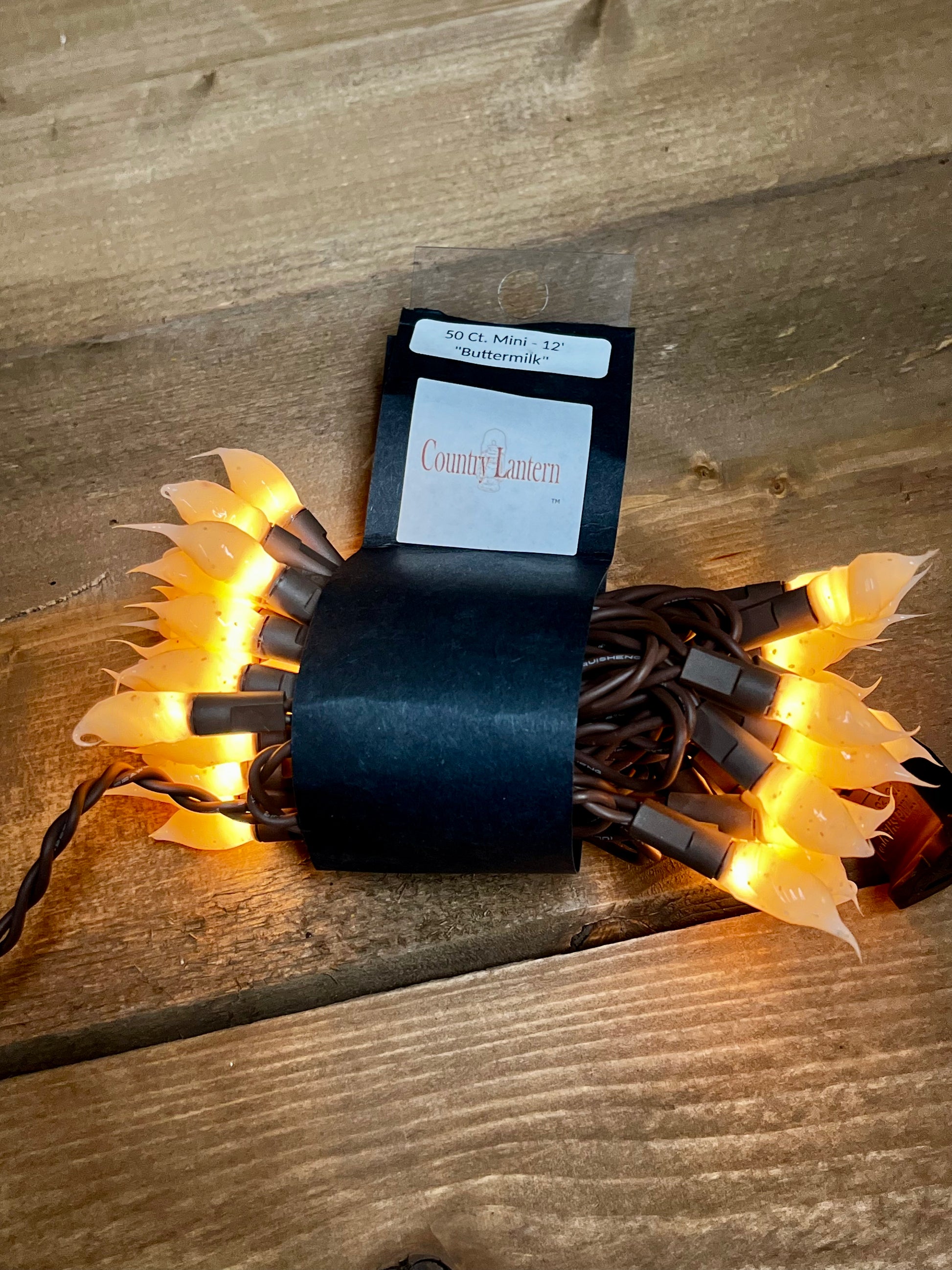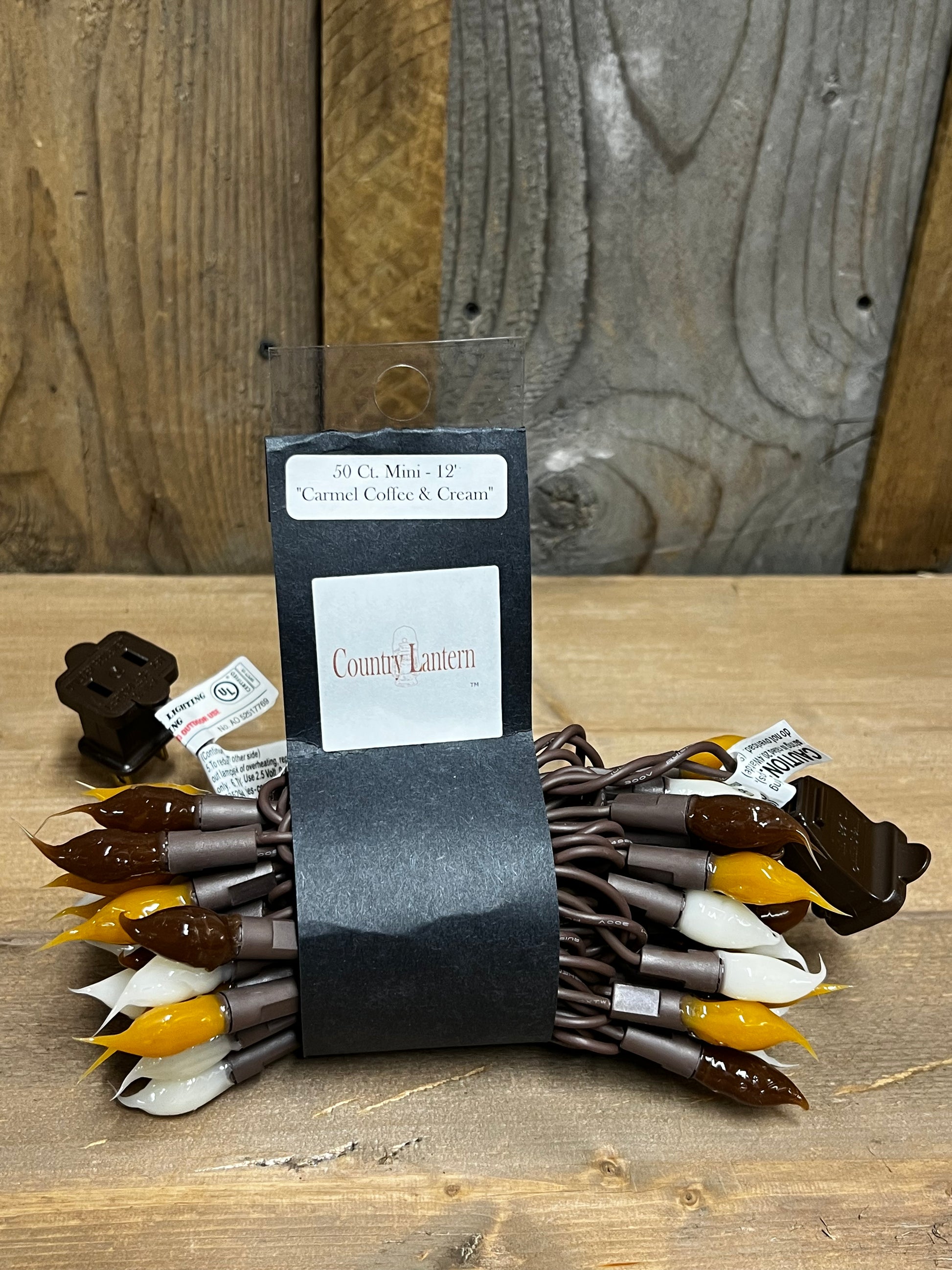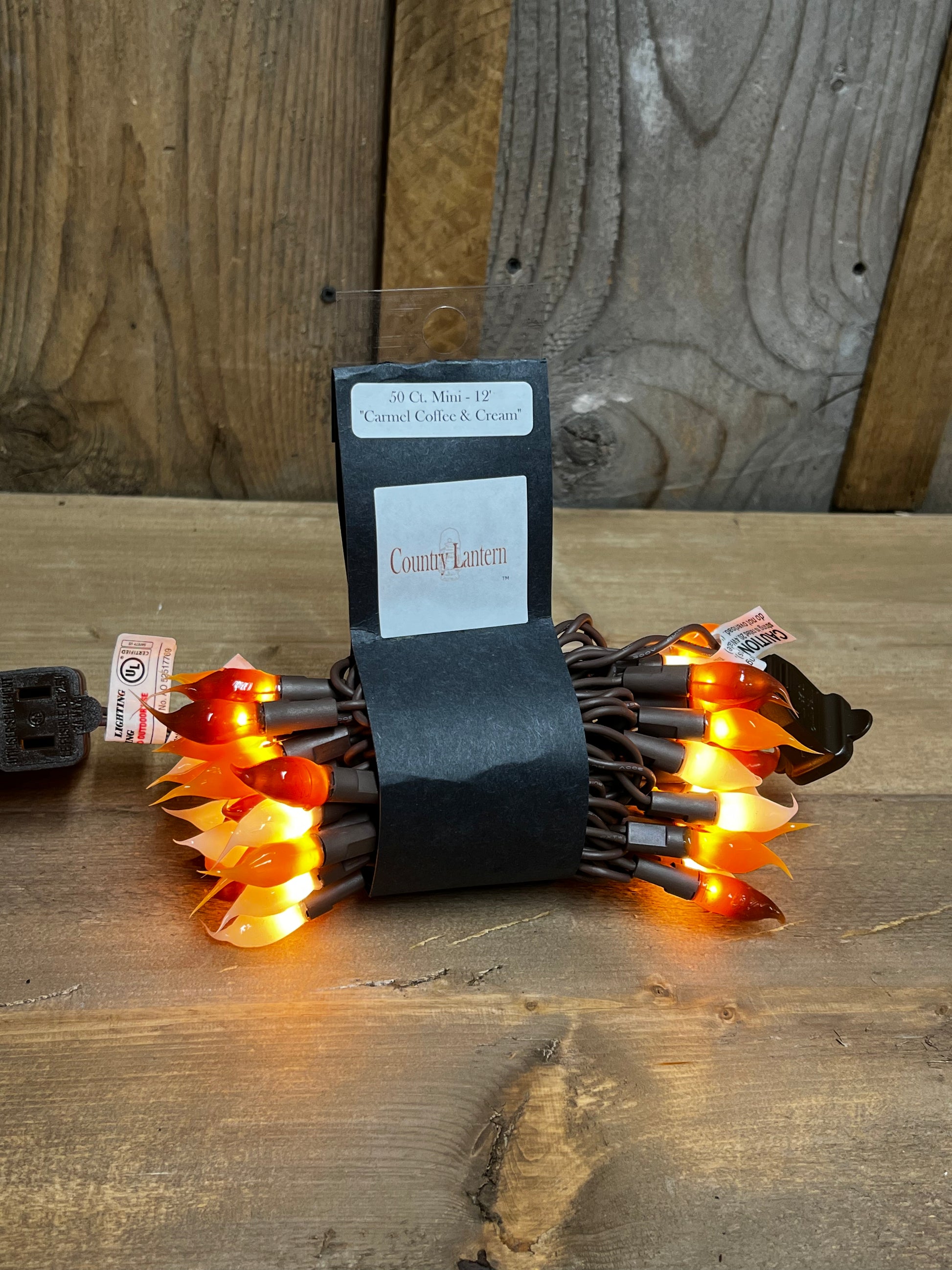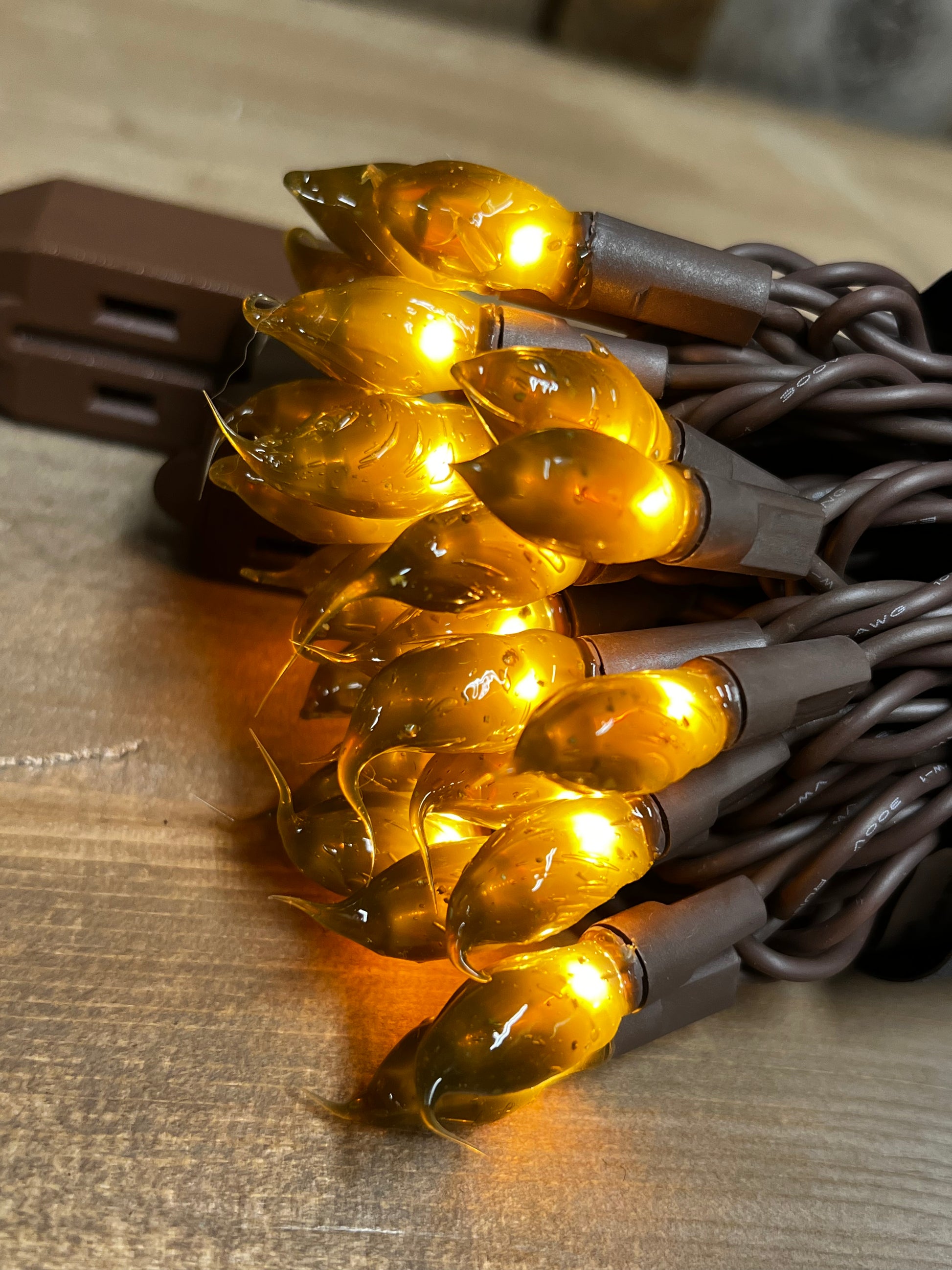 A unique silicone mixture is hand dipped onto each light bulb that creates an ambiance that will beautifully enhance a home's decor. If one bulb were to burn out, the entire strand will continue to stay lighted. All strands come with 2 additional silicone dipped bulbs and a fuse for replacement. UL listed for indoor and outdoor use and bulbs are 2.5" apart. Manufacturer rates these light strands for an average of 1,500 hours of trouble-free lighting. Brown Cord connects end to end, has a steady, incandescent, continuous on and is 12’ of lighted length.