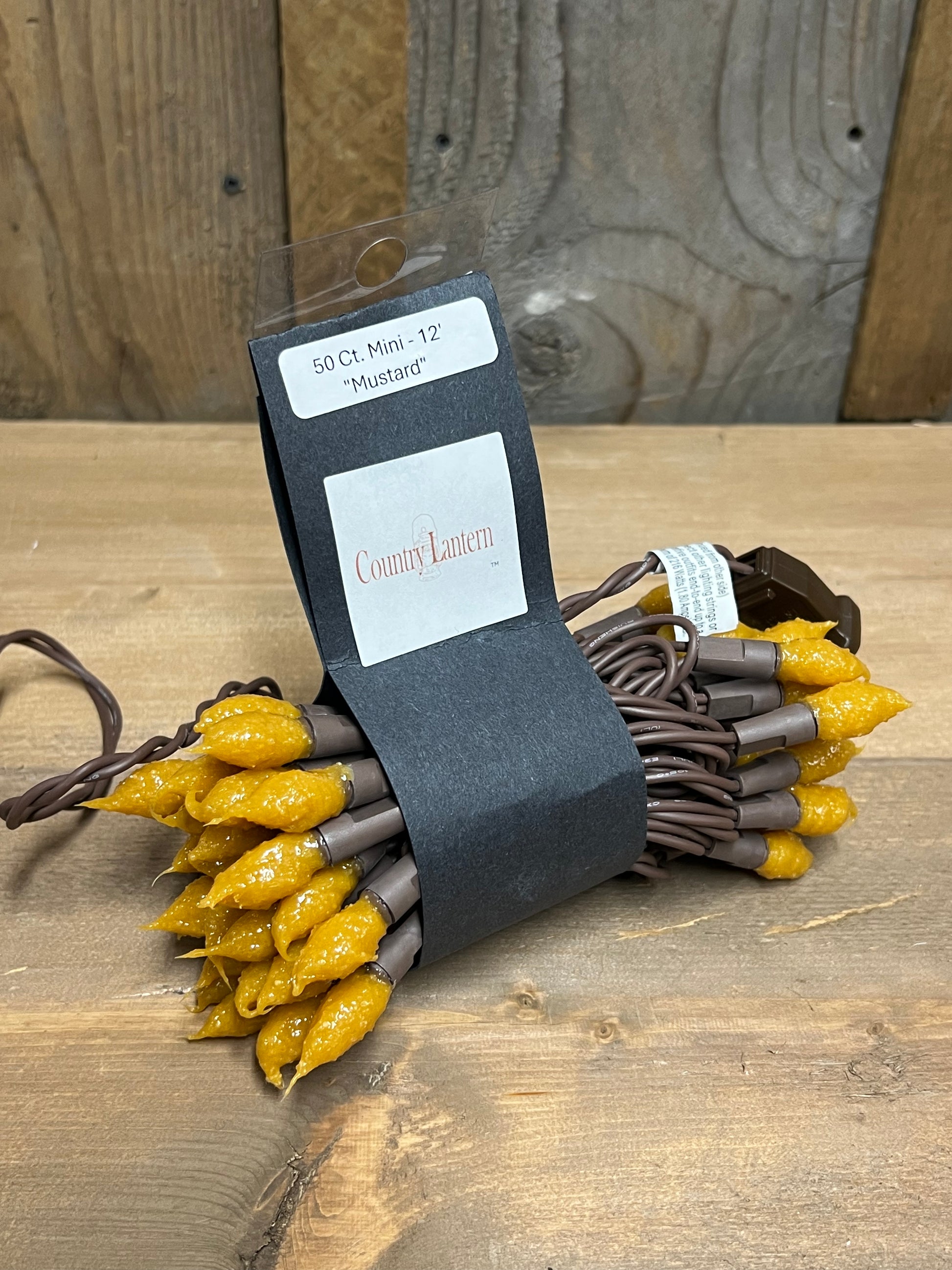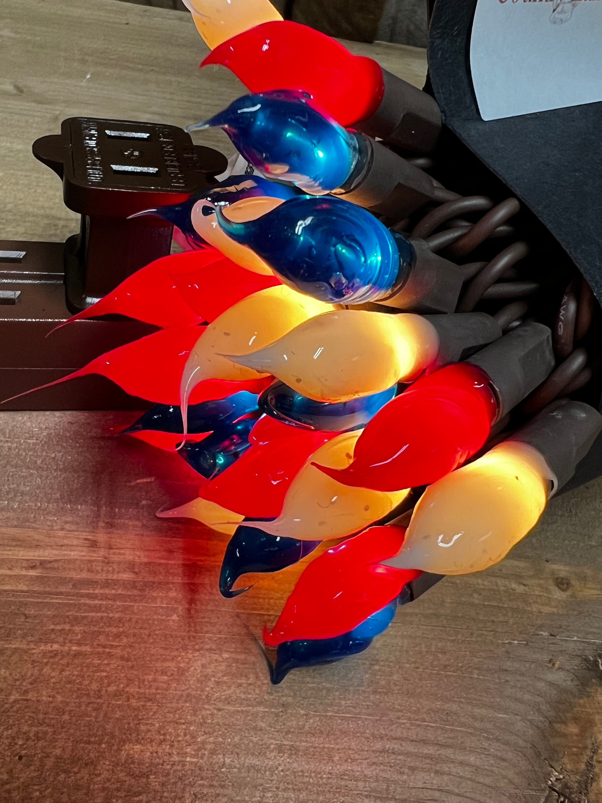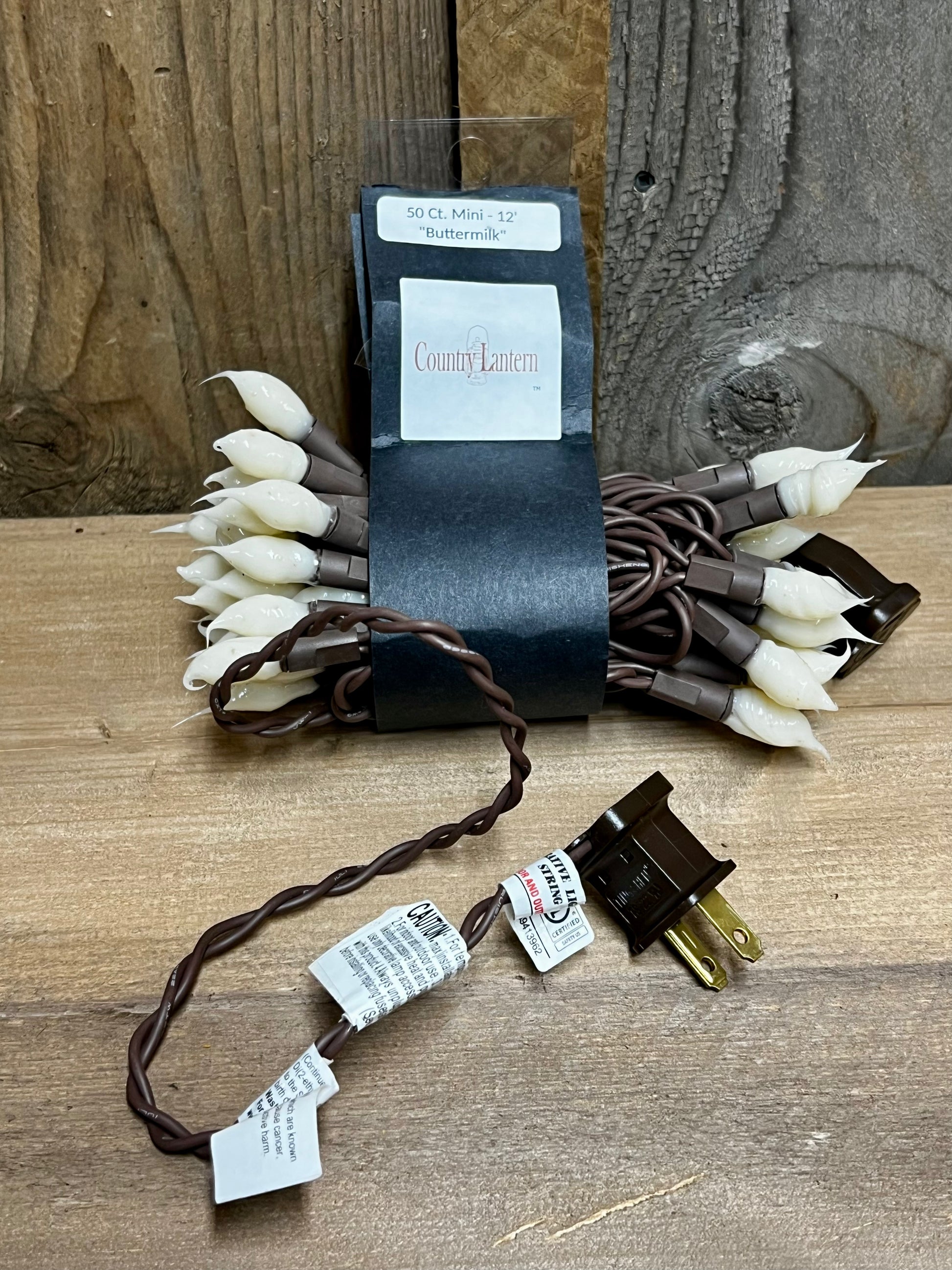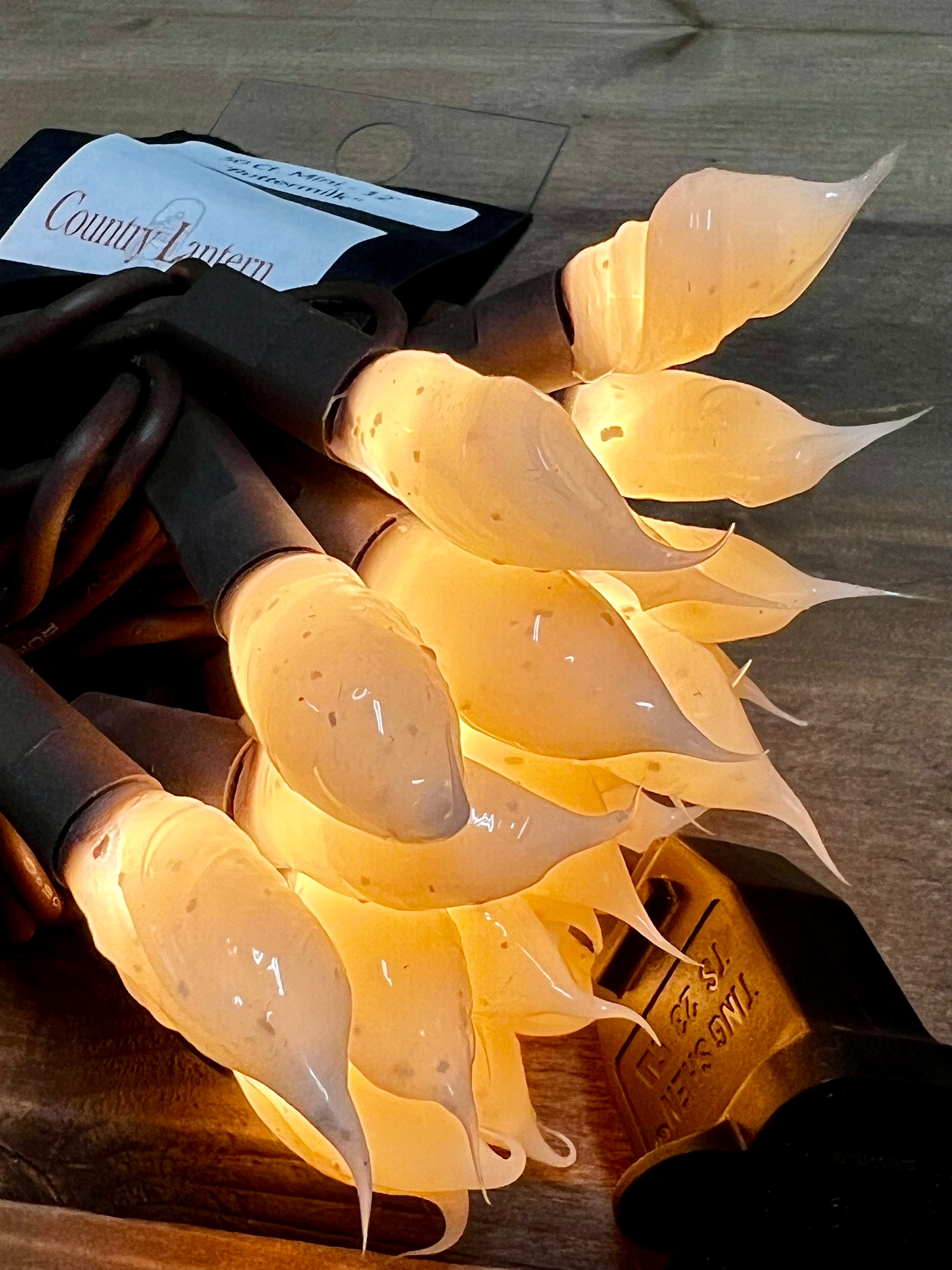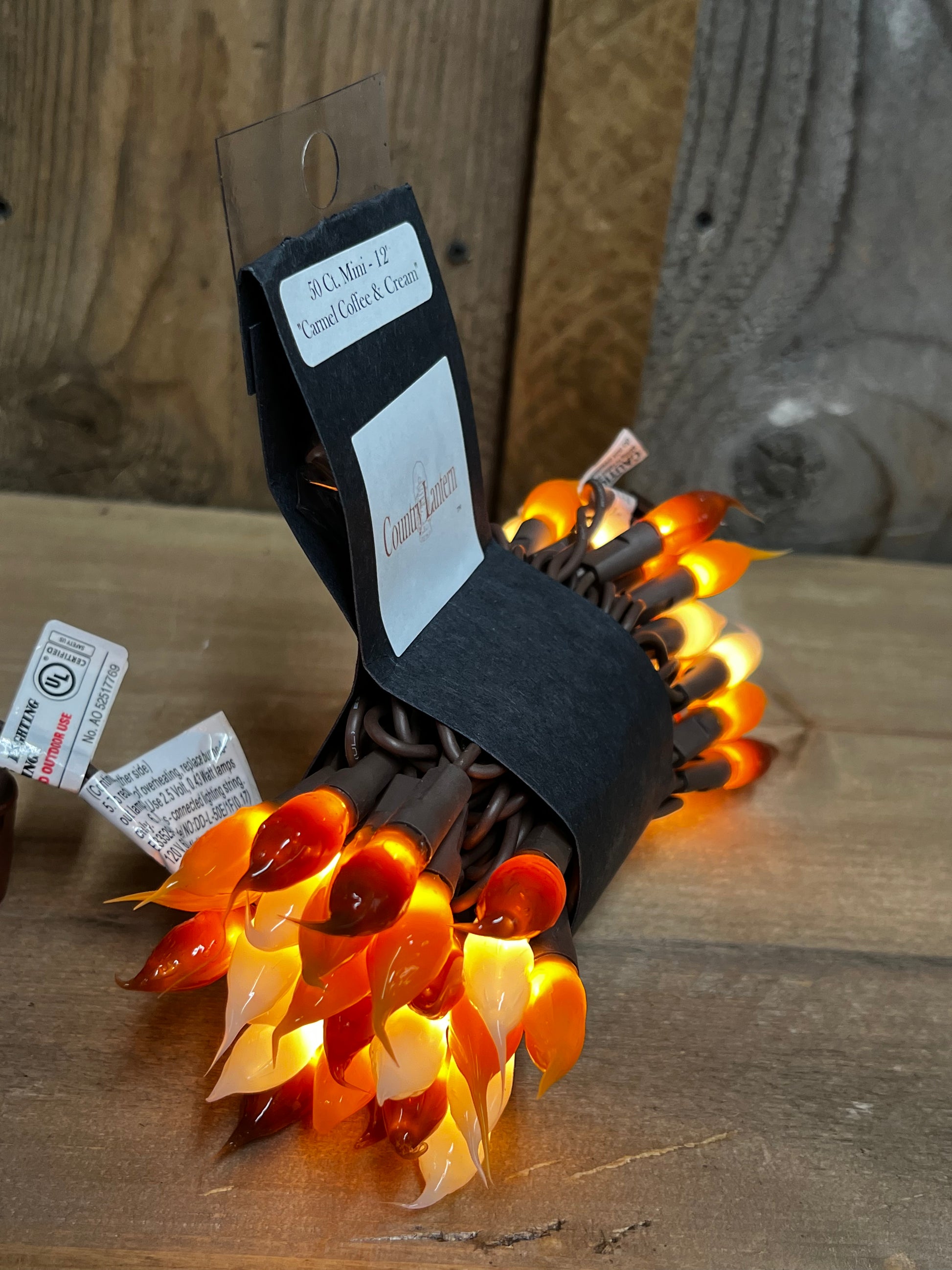 A unique silicone mixture is hand dipped onto each light bulb that creates an ambiance that will beautifully enhance a home's decor. If one bulb were to burn out, the entire strand will continue to stay lighted. All strands come with 2 additional silicone dipped bulbs and a fuse for replacement. UL listed for indoor and outdoor use and bulbs are 2.5" apart. Manufacturer rates these light strands for an average of 1,500 hours of trouble-free lighting. Brown Cord connects end to end, has a steady, incandescent, continuous on and is 12’ of lighted length.