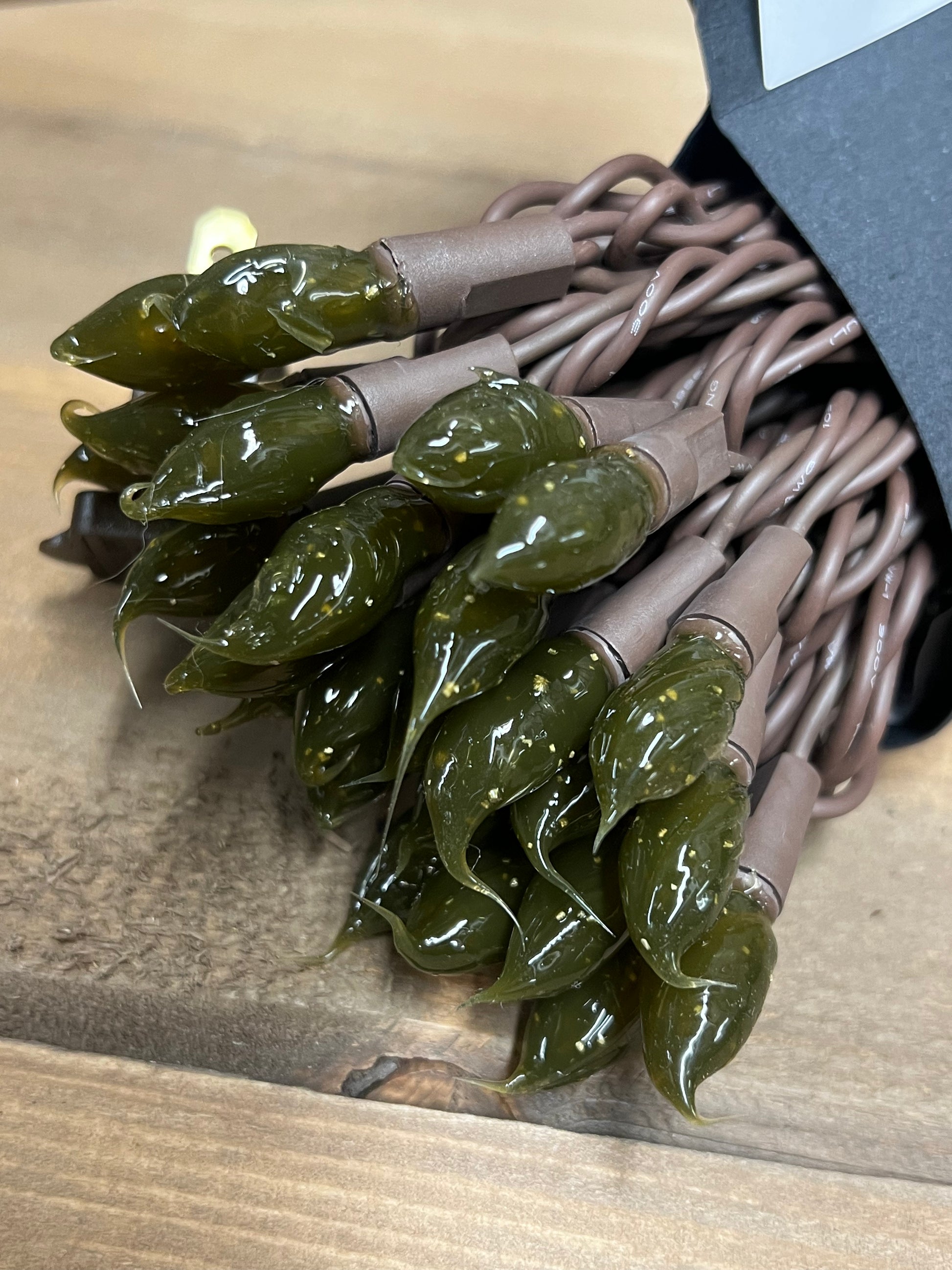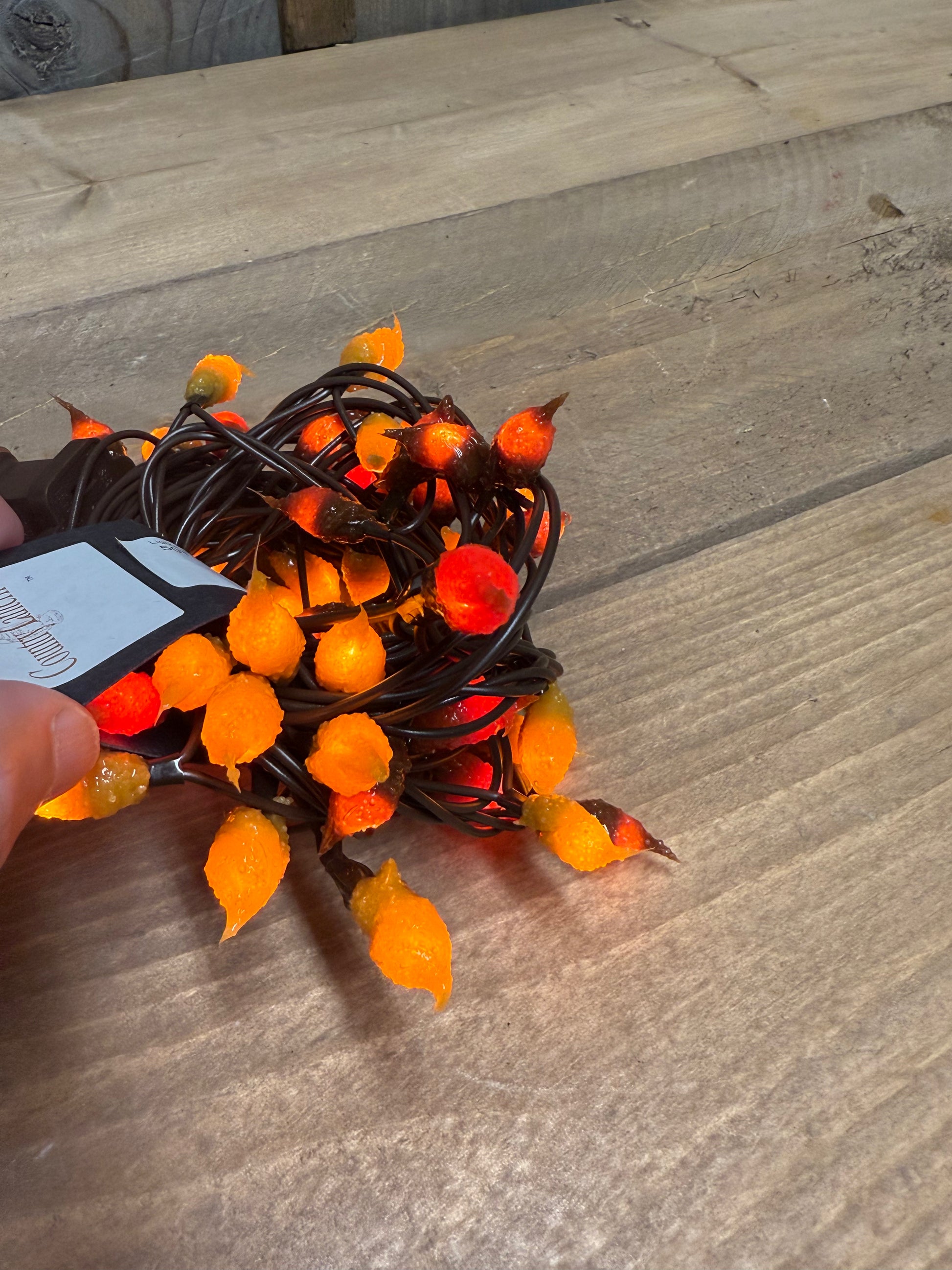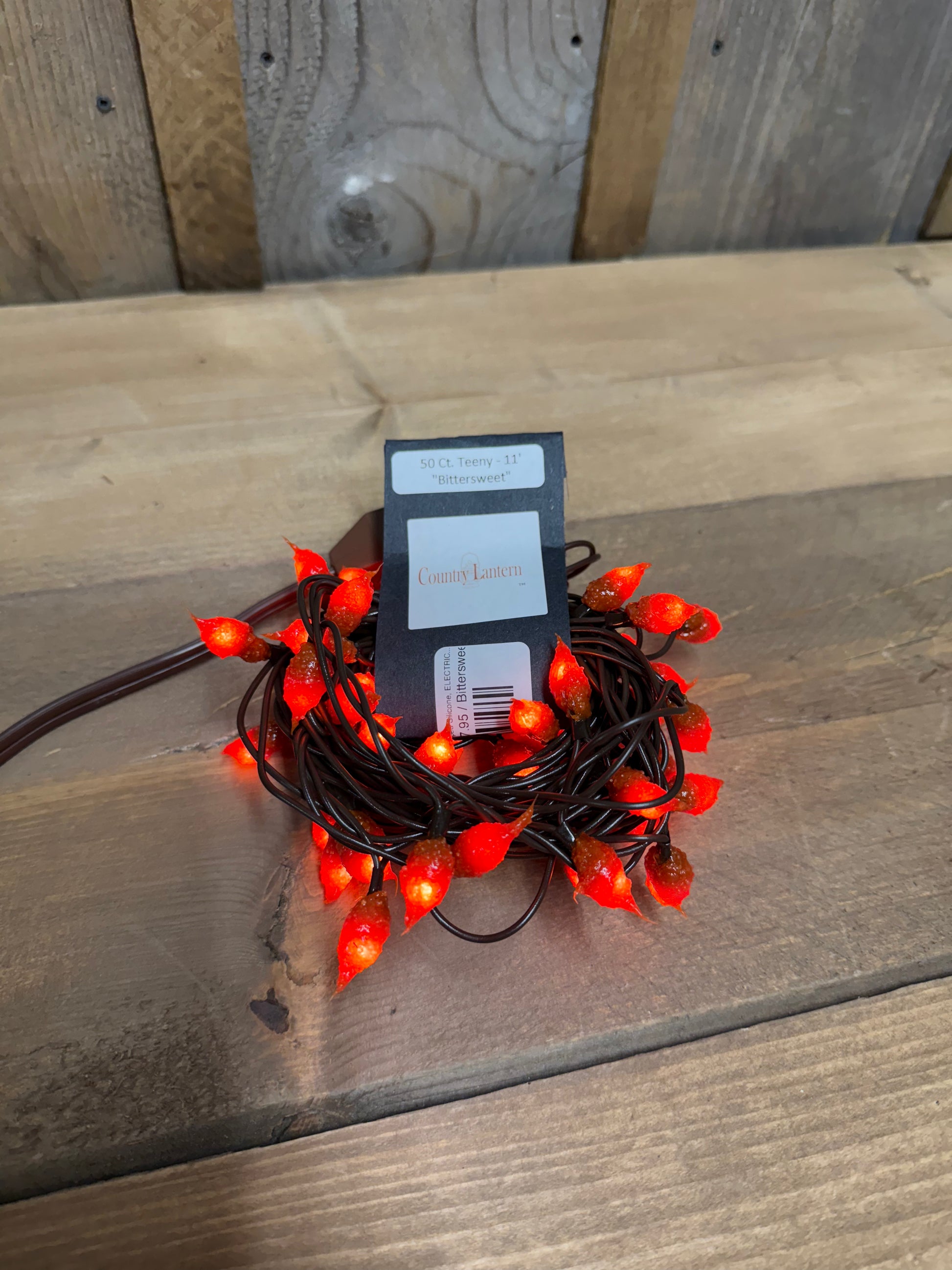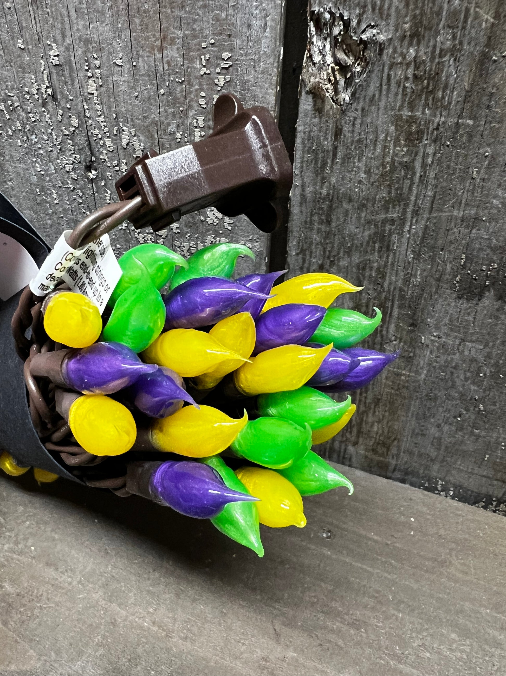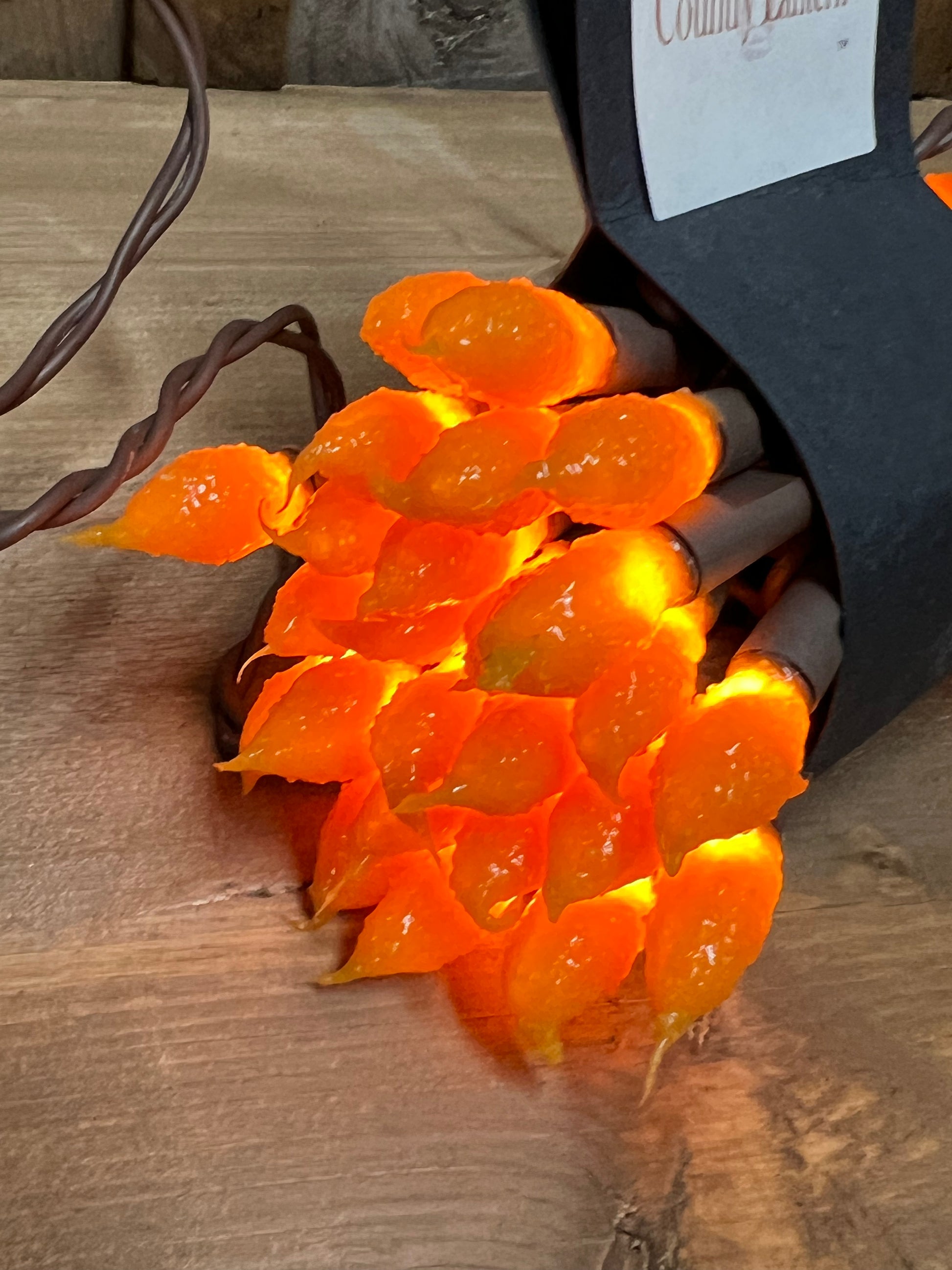 A unique silicone mixture is hand dipped onto each light bulb that creates an ambiance that will beautifully enhance a home's decor. If one bulb were to burn out, the entire strand will continue to stay lighted. All strands come with 2 additional silicone dipped bulbs and a fuse for replacement. UL listed for indoor and outdoor use and bulbs are 2.5" apart. Manufacturer rates these light strands for an average of 1,500 hours of trouble-free lighting. Brown Cord connects end to end, has a steady, incandescent, continuous on and is 12’ of lighted length.