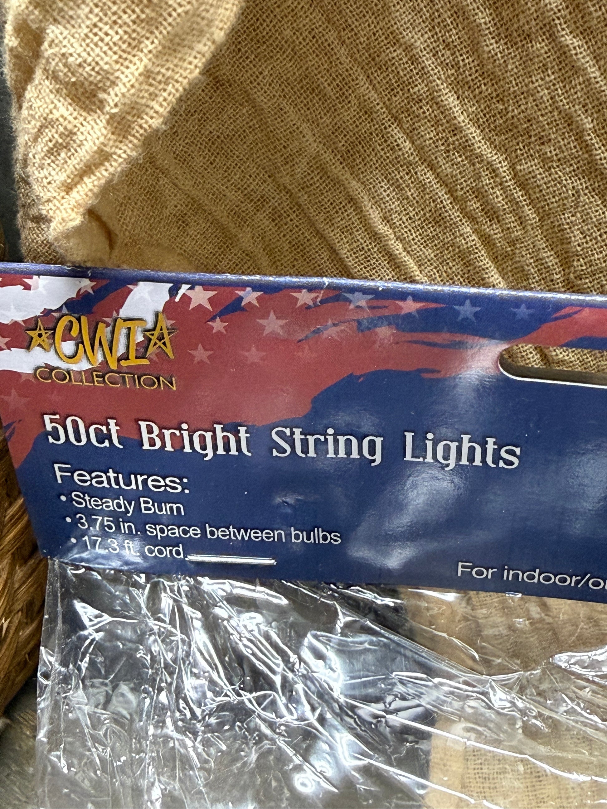 Hooray for the Red, White and Blue! Perfect for both indoor and outdoor use, these Patriotic lights will be great all year long! Brown cord, Pre Tested and Extra bulbs included. Photo shown of the 35 bulb set.