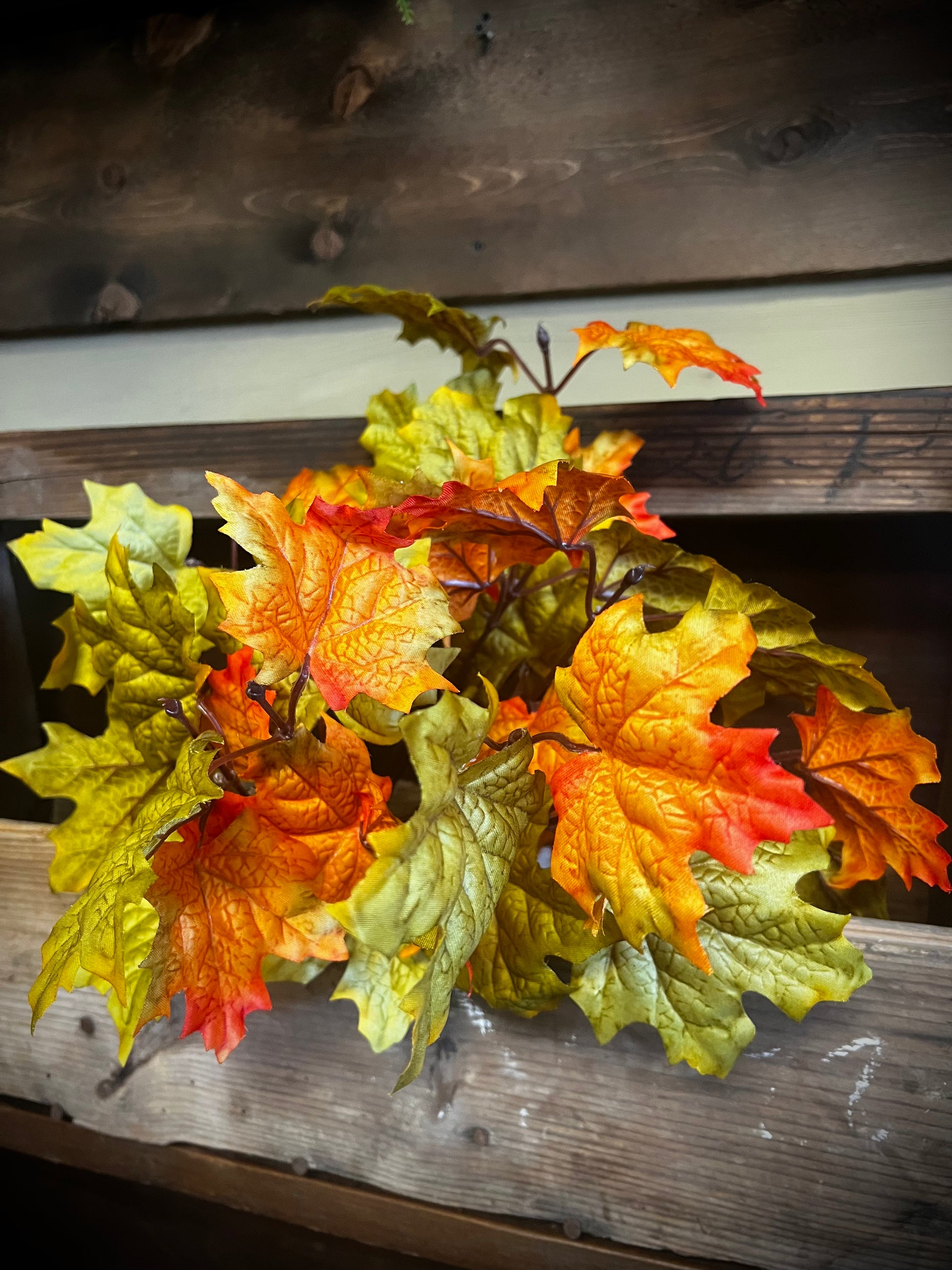 Nothing says, Welcome Autumn, like the turning of leaves. Oh, the colors of orange, gold, red and green as the trees begin to change. This 17" bush is full of all the colors.