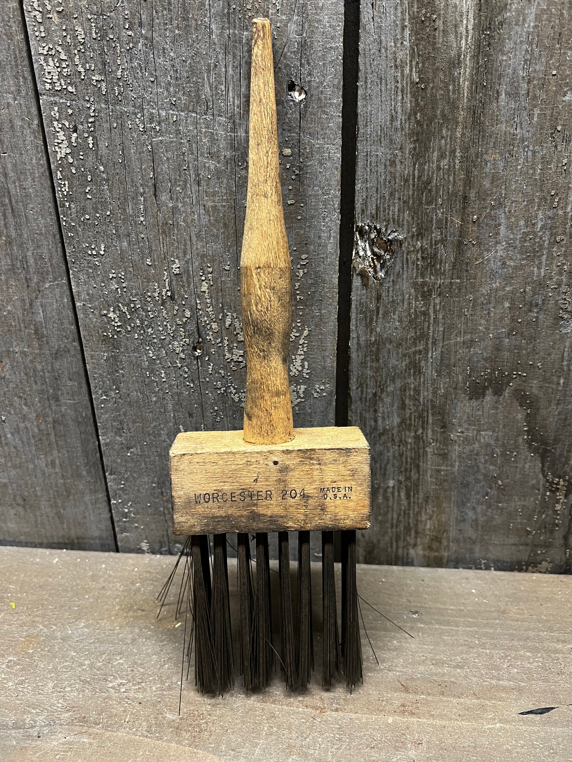 Wire Bristle measures 9.5" by 2.75" stamped Worcester 204 Made in USA