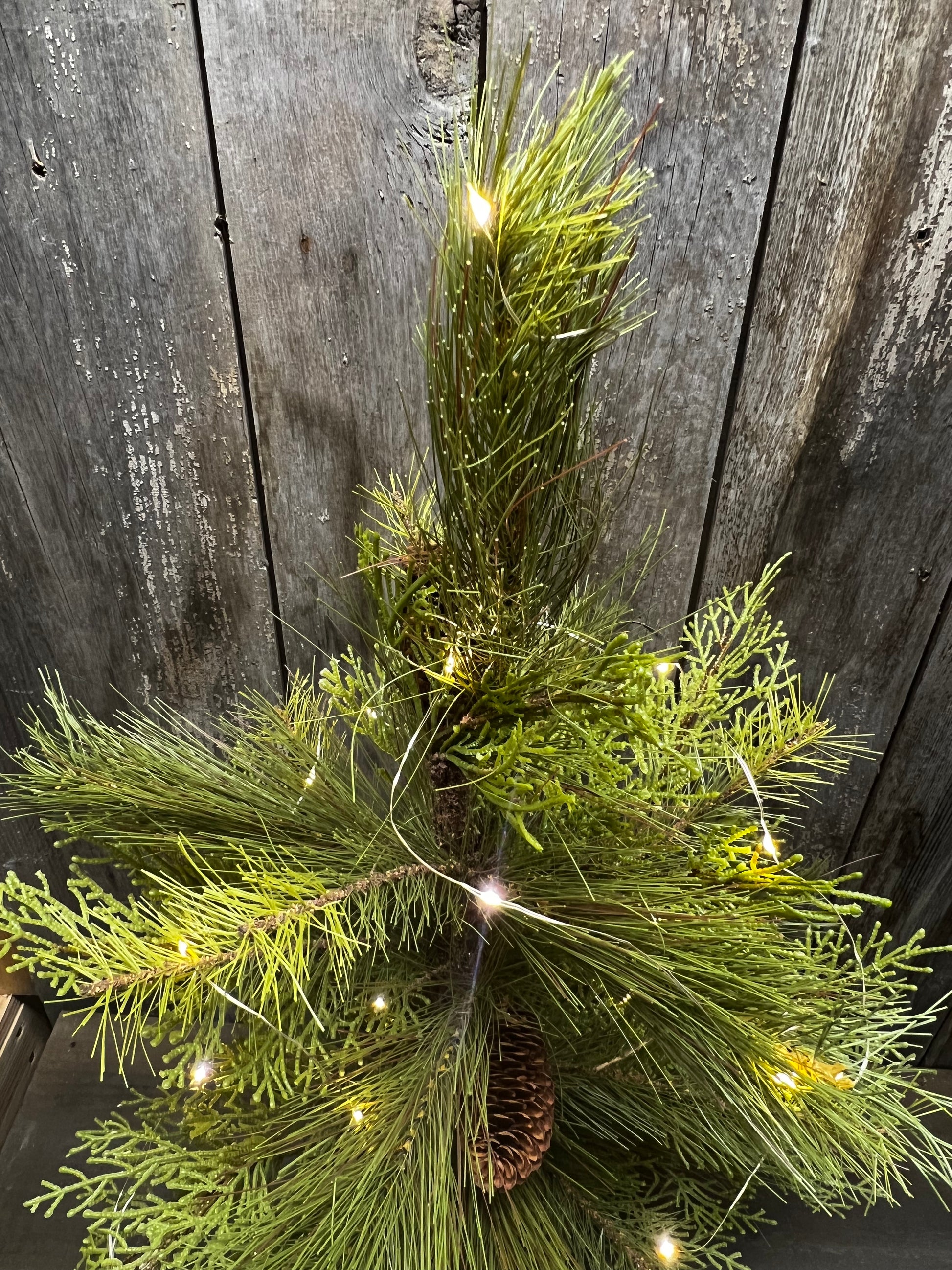 Battery Operated and TIMER, Multi Function, 6.5' thin flexible wire with tiny LED Bulbs. Perfect for small trees and wreaths. Can be used Indoors and Outdoors. Takes 3 AA batteries, not included. Functions include Steady Burn, Slow Fade, Flashing, Dancing, 3 Twinkling speeds. Timer 6 hours on and 18 hours off.
