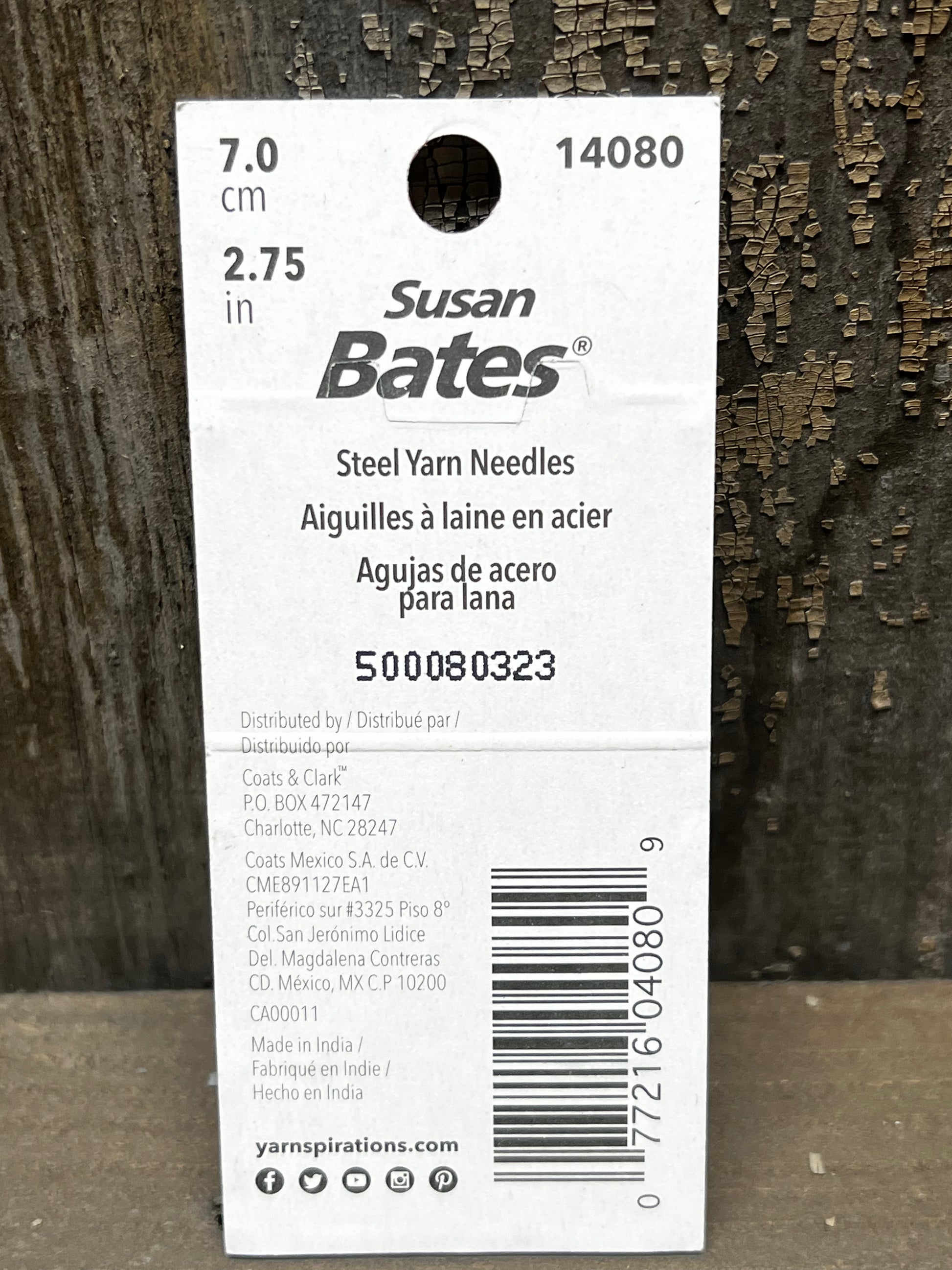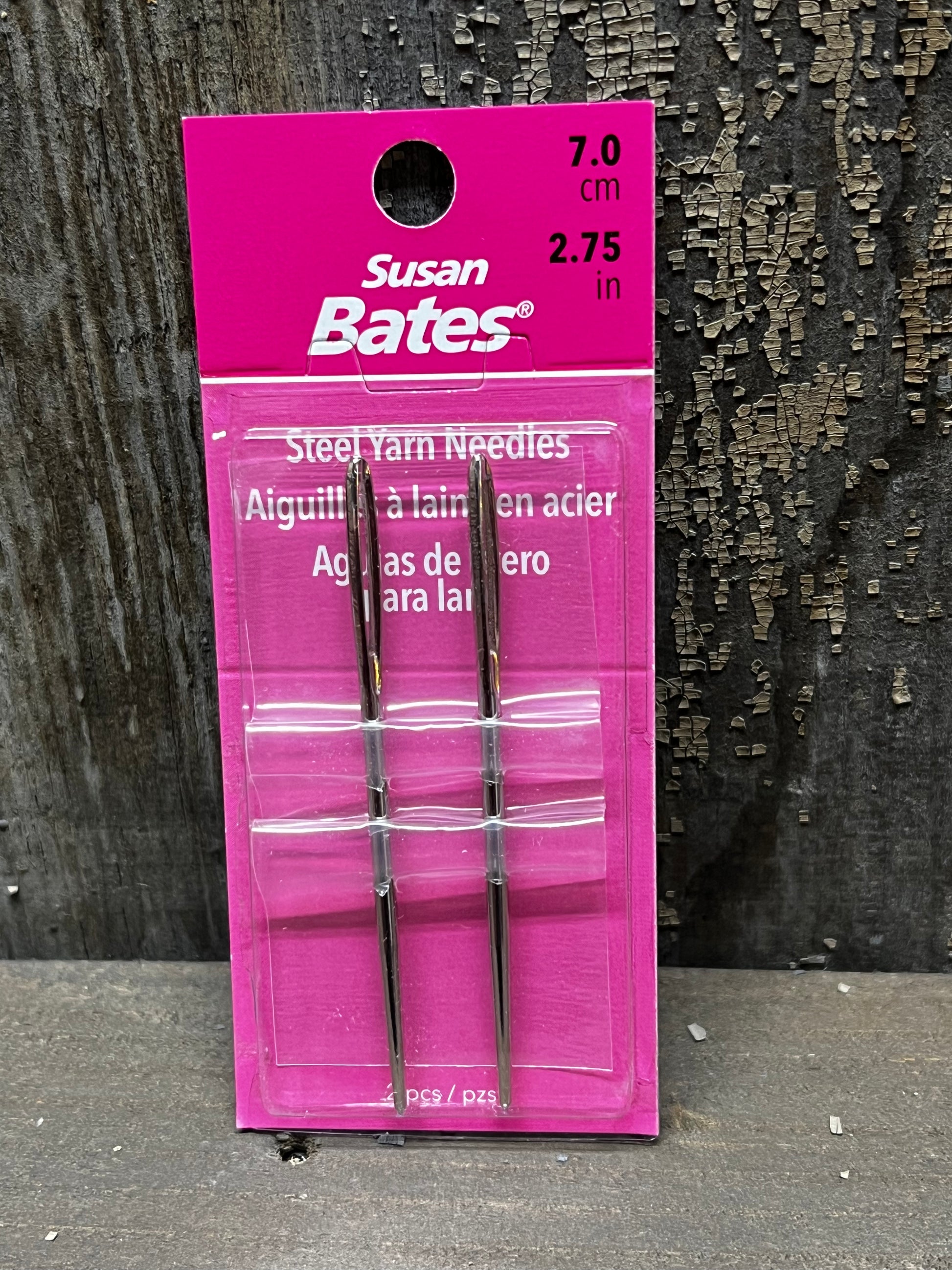 Susan Bates hand sewing needles for sewing, quilting, knit, crochet and many other crafts. 2.75" Steel yarn needle for sport to worsted weight yarns. Size #13 tapestry, 2 needles per card. Yarn needles have a large eye and blunt tip.
