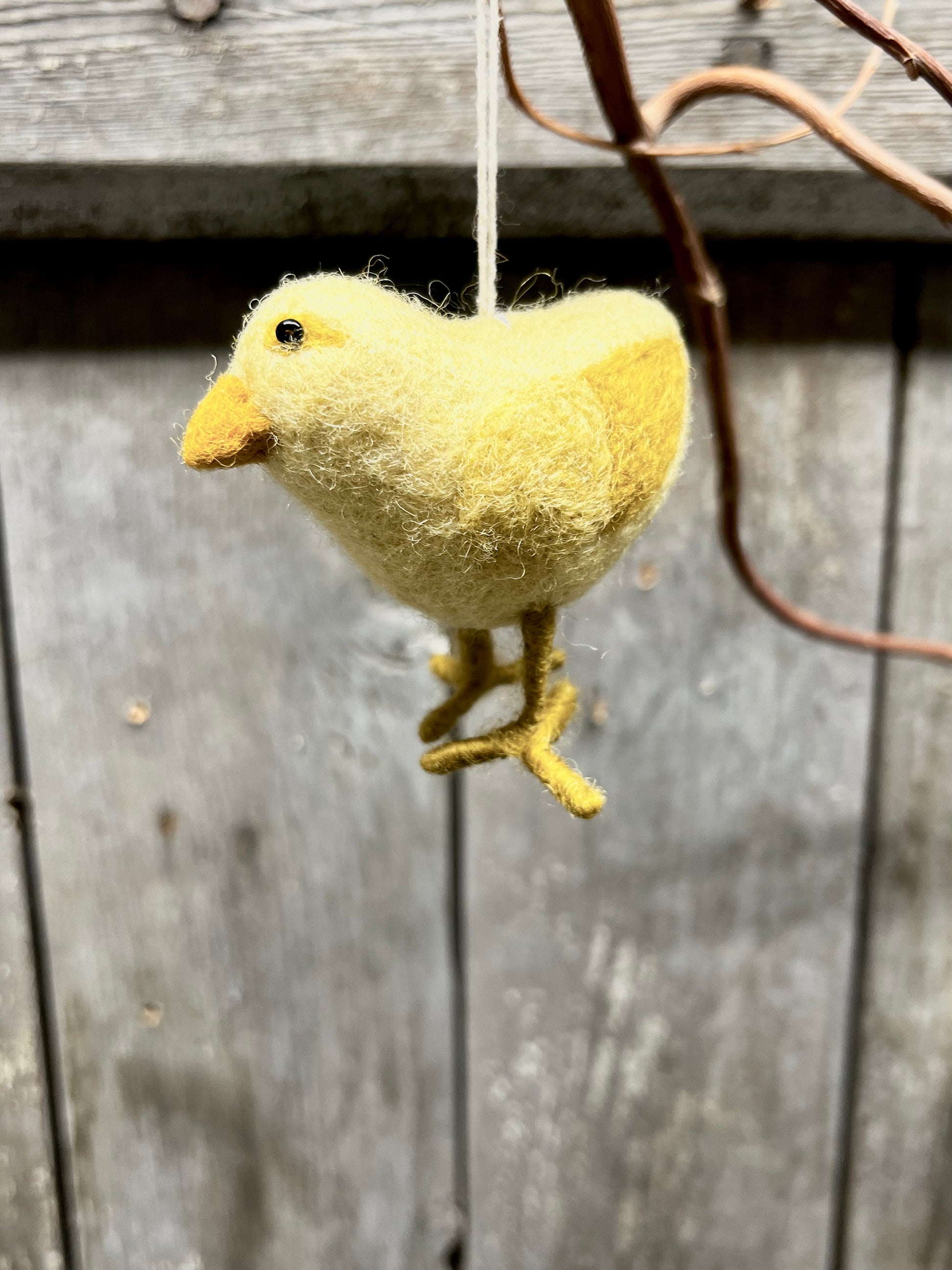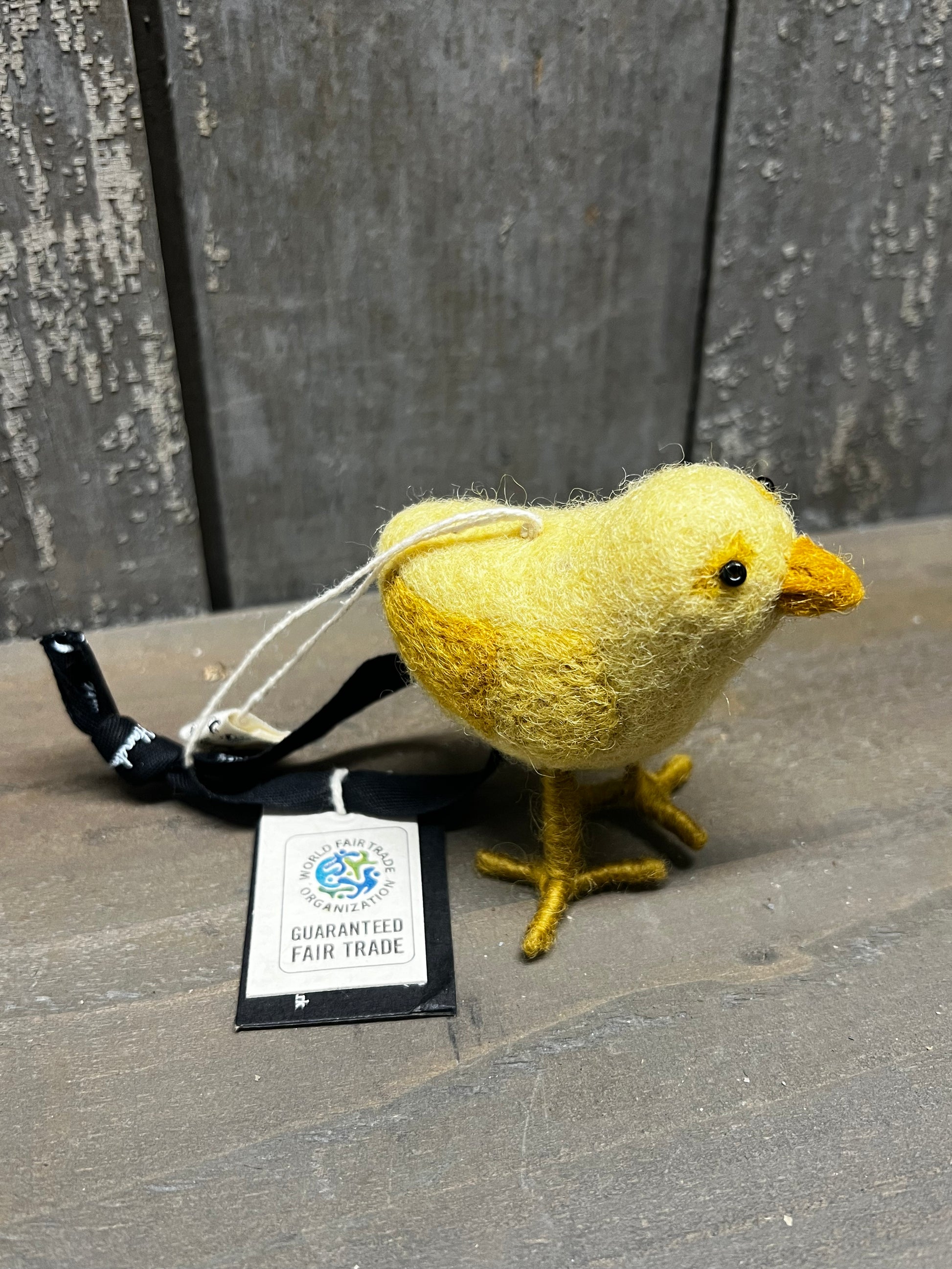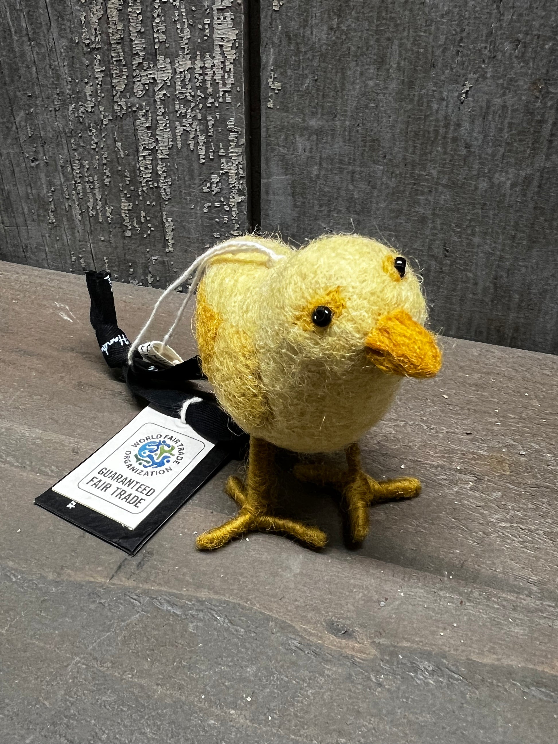Oh how cute! A sweet little chicken in muted ochre tones felted from pure natural wool from New Zealand. Uniquely hand crafted in Nepal. Measures about 3"x 3" and can sit on its own or hang as an ornament.