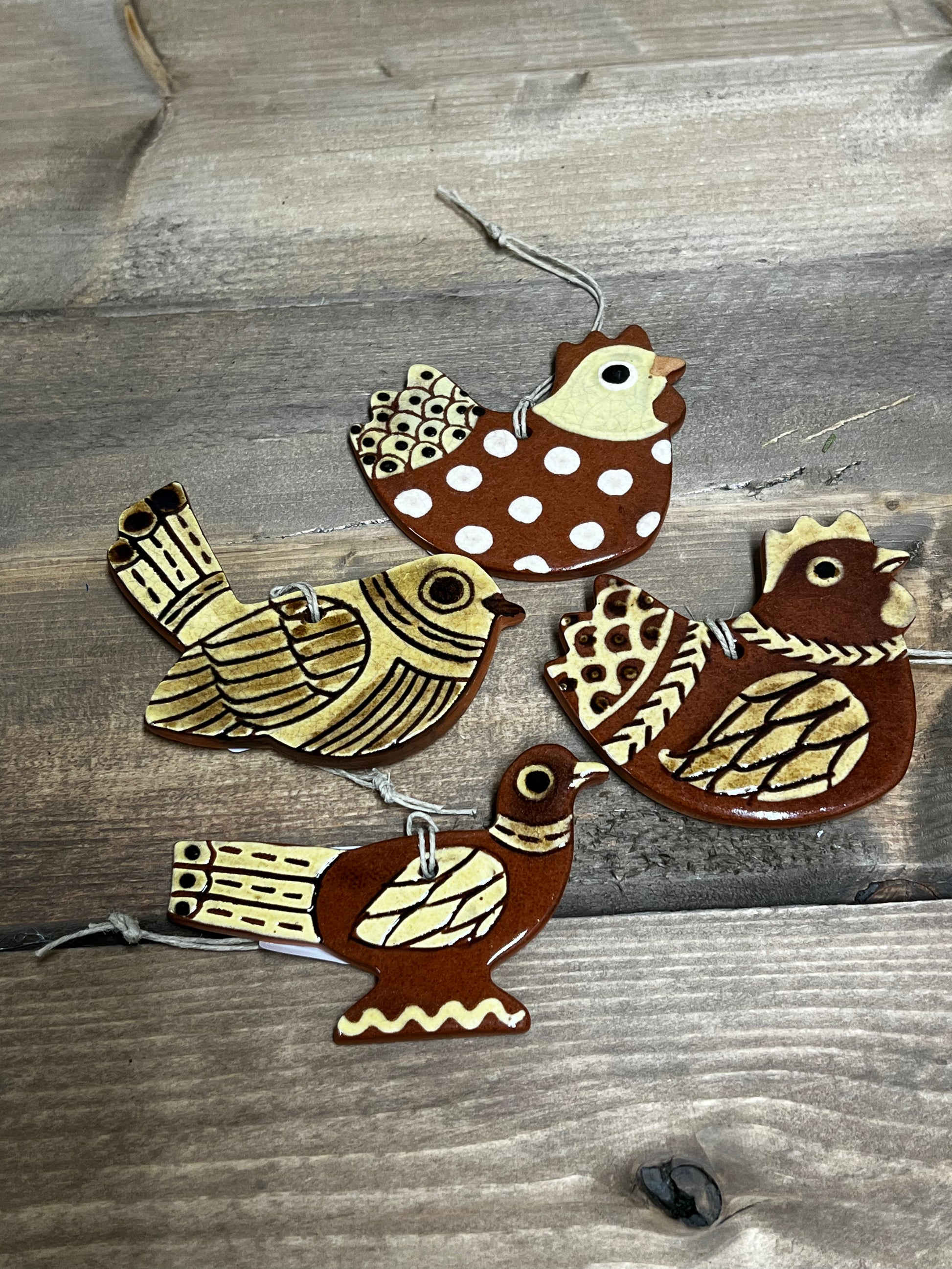 Made in Ohio, Smith Redware does a fantastic job at decorating. Crackle finishes and rich colors are sure to please. Hand on a tree, a peg, tie on a basket or display in a bowl, our scalloped edge heart ornaments are perfect. Each and everyone is rolled and decorated by hand so expect slight variations.