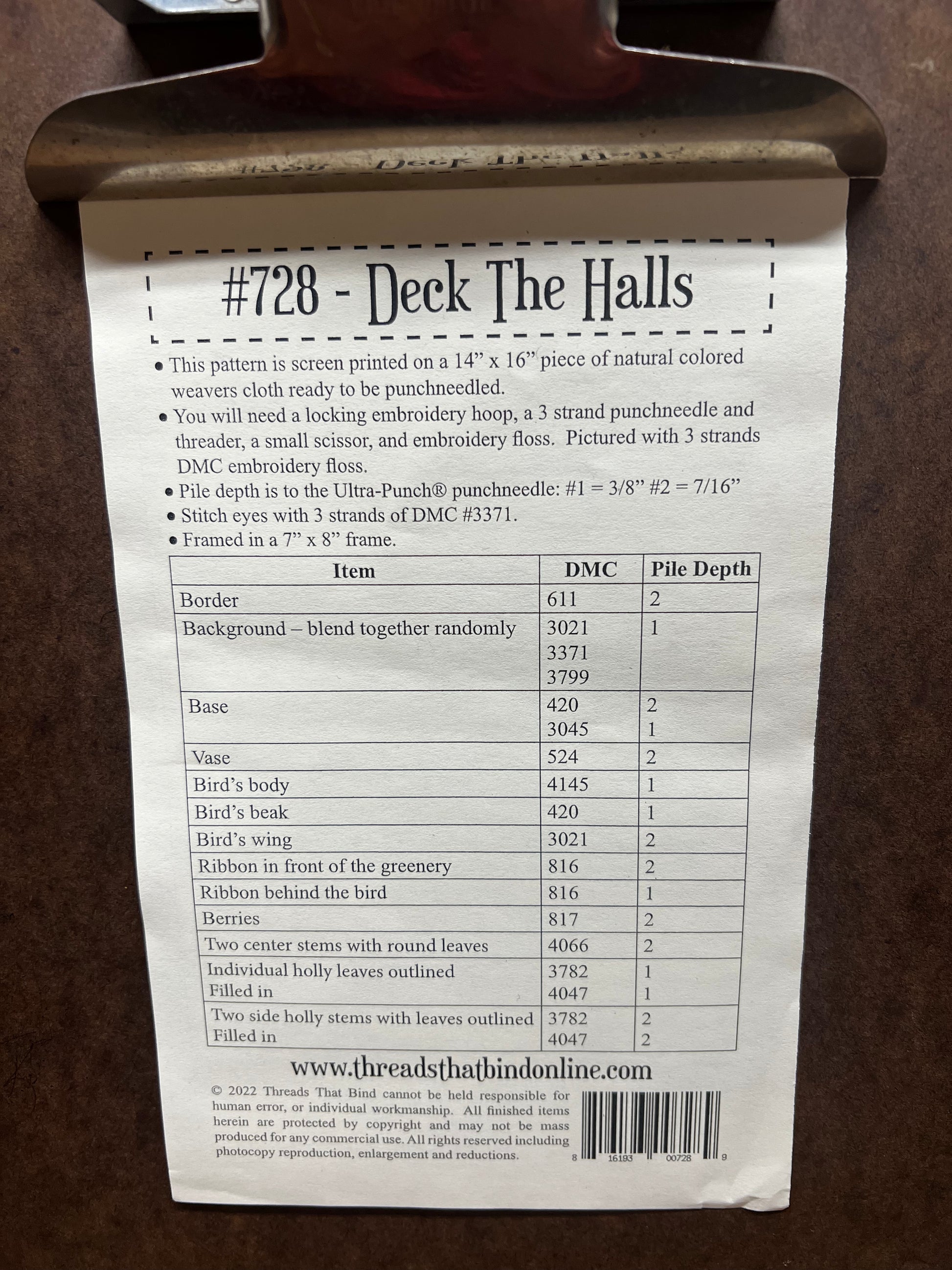 Punchneedle Embroidery Screenprinted on 14"" x 16"" natural colored weavers cloth. Punched using 3 strands of DMC embroidery floss. Framed in a 7” x 8” frame.