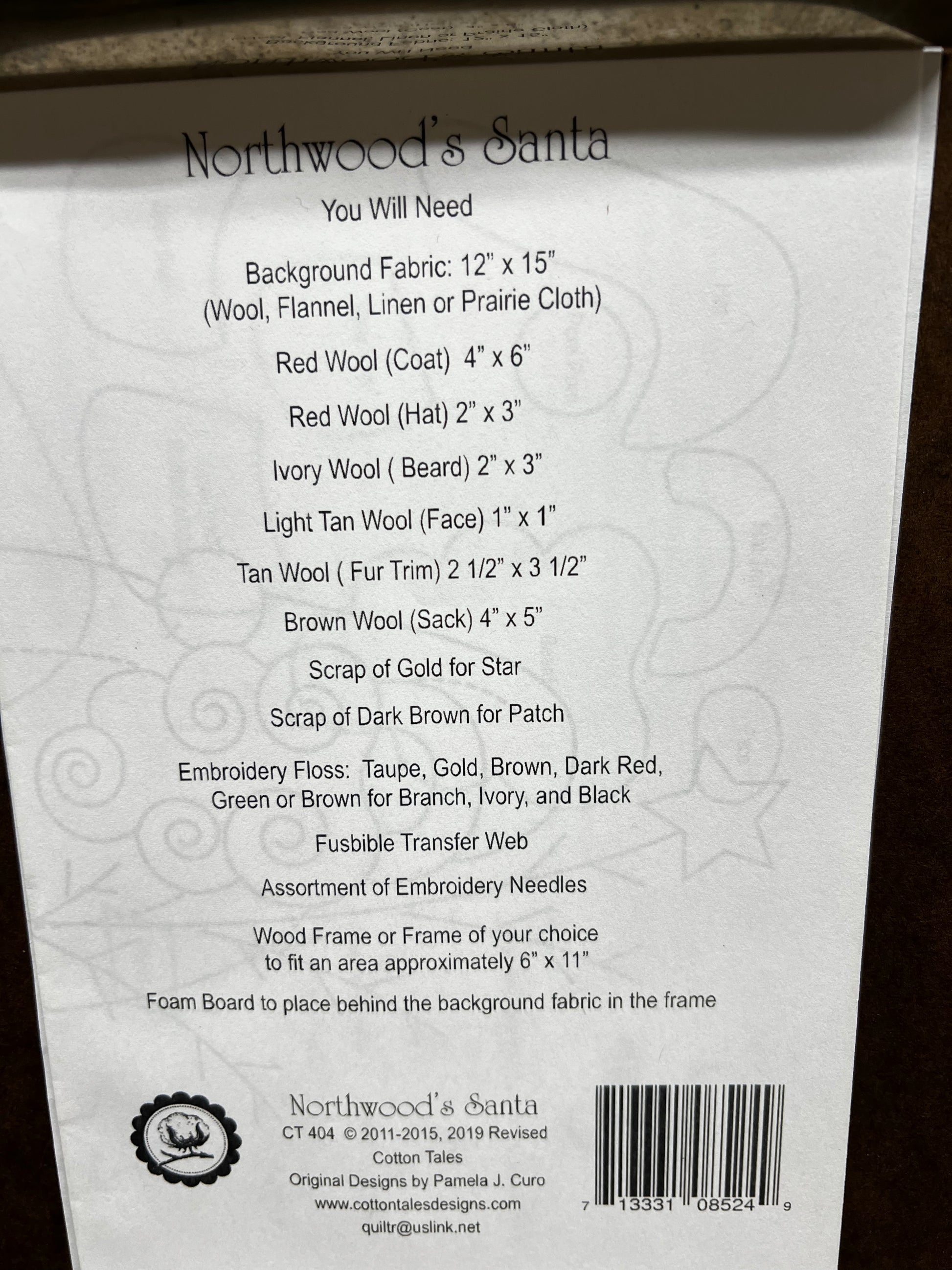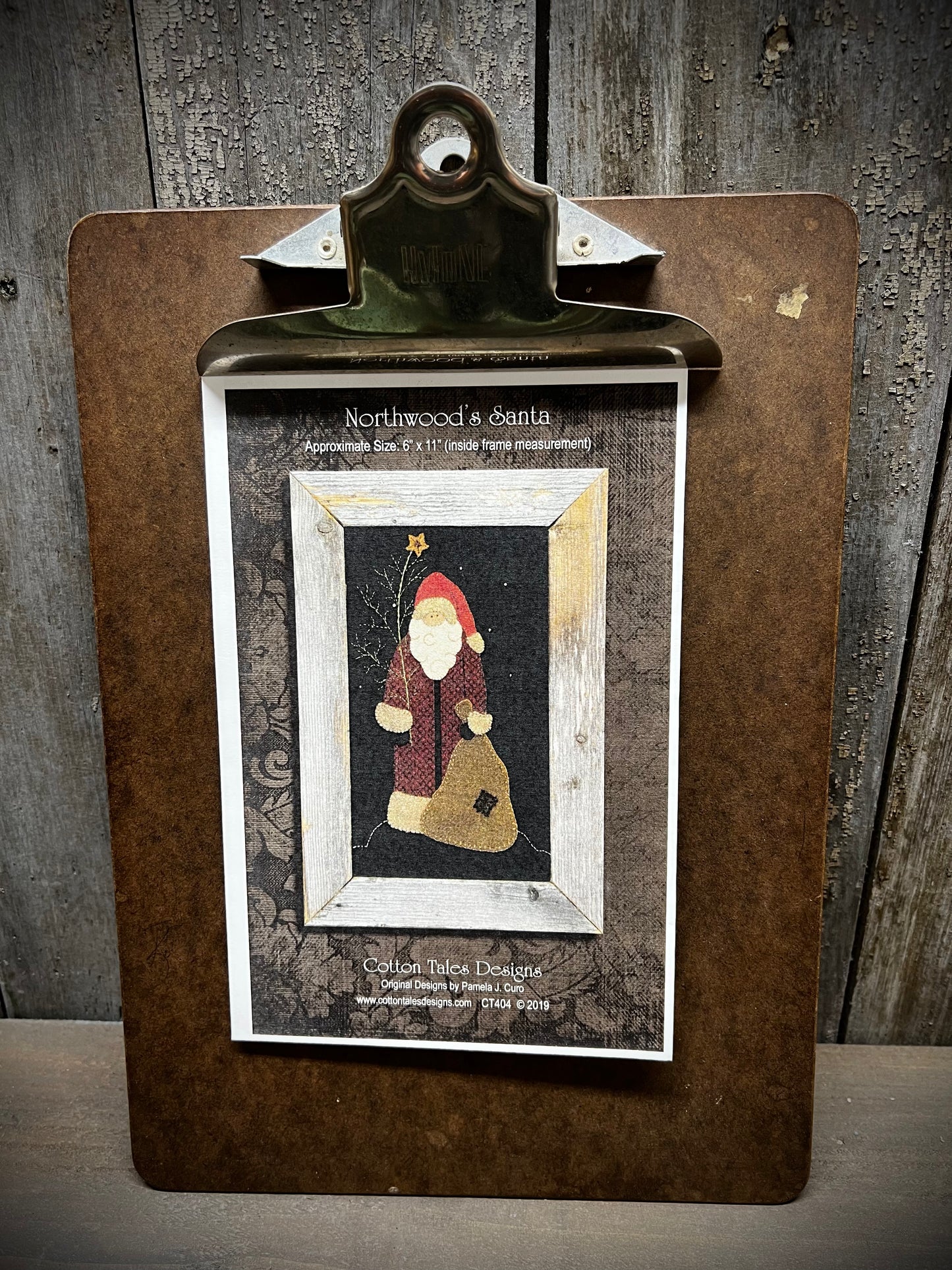 Our rustic Santa is so primitive. Use your choice of wool or even hand dyed, and applique onto 100% cotton. Very easy to stitch, and earthy. Frame able finished size 6" x 11" Wall Hanging before framing.