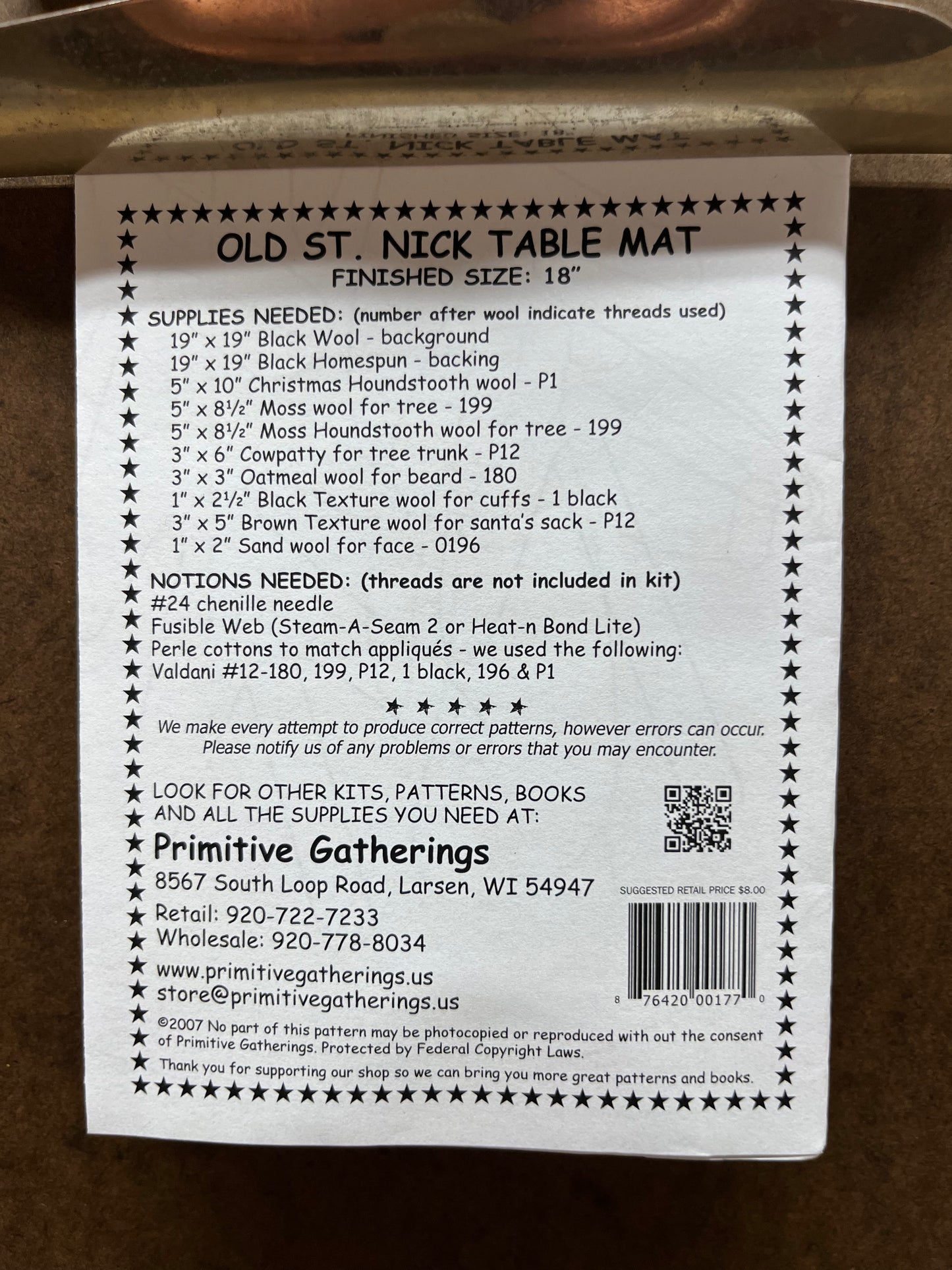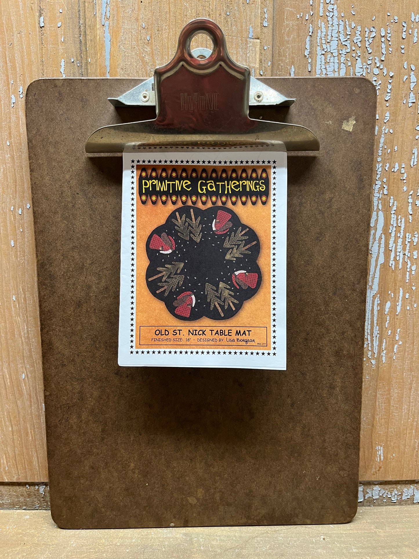 Here is the Christmas mat everyone has been asking for....I hope you like the old primitive Santa... This mat measures 18"and will make a wonderful place for your holiday candle. Includes the pattern, supply list and directions to complete the project.