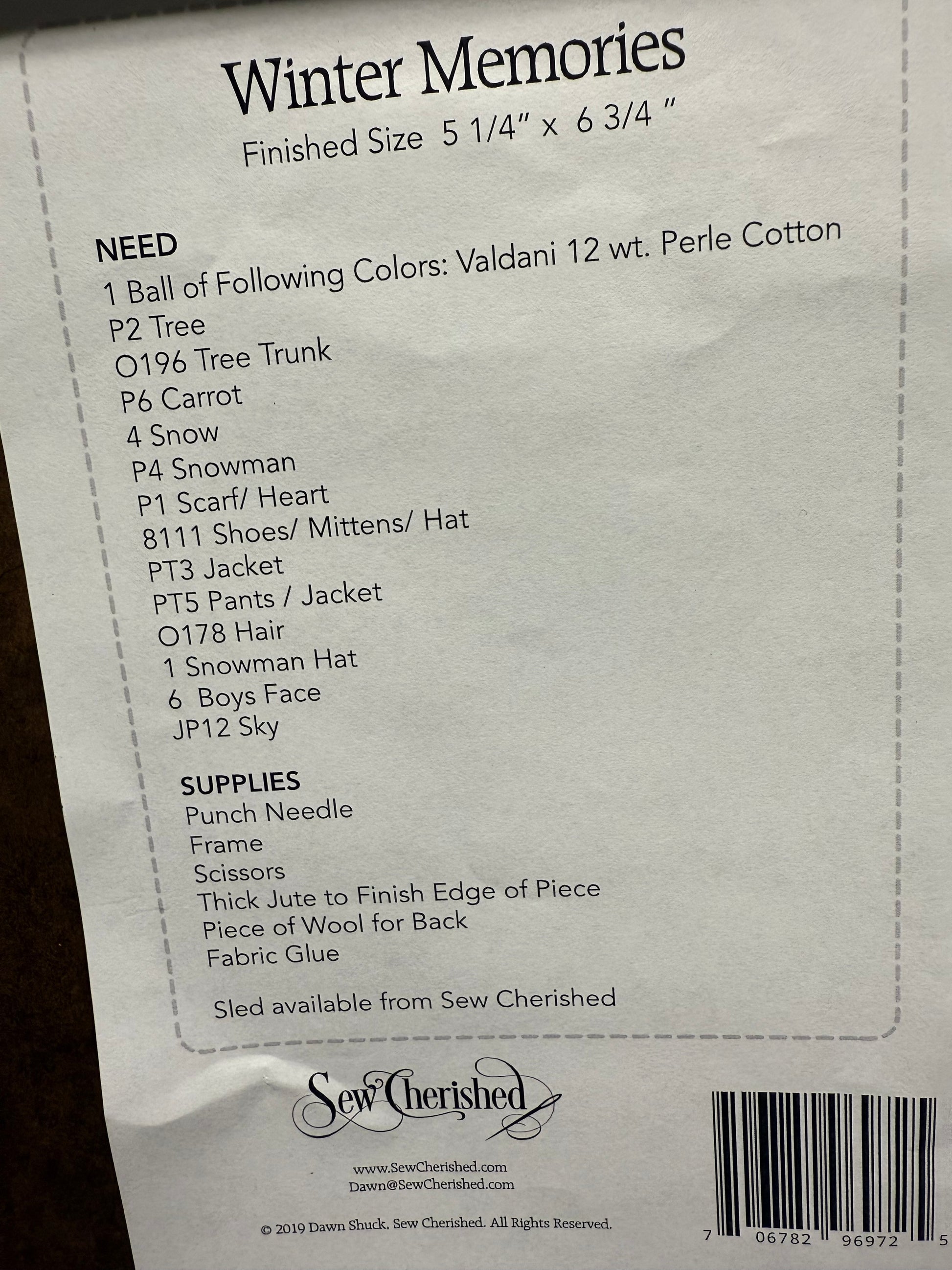 "Winter Memories” is a 5.25” x 6.75” punch needle embroidery pattern pre printed on Weaver's Cloth.