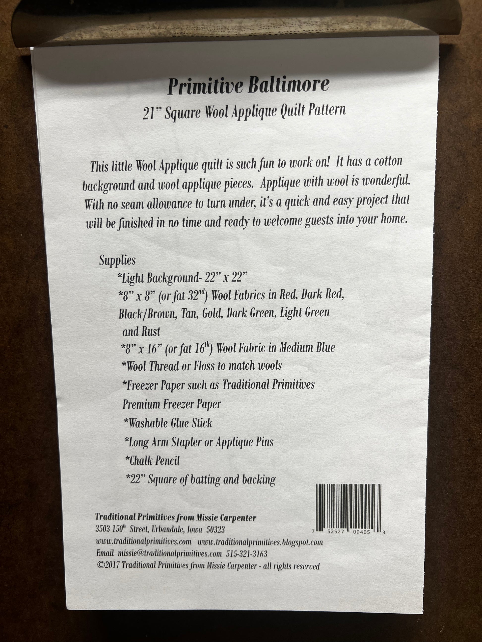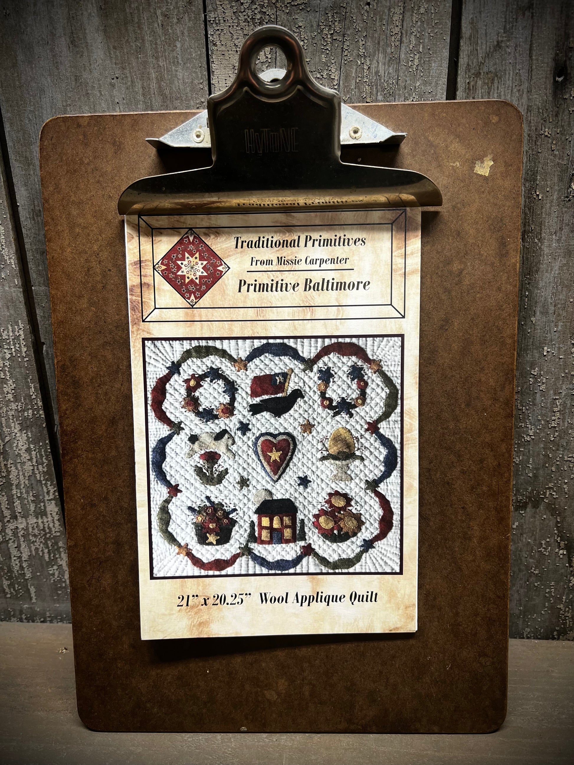 Oh my! How sweet! Don't be intimidated by all the pieces, this project is both a great way to use up wool scrap and is an easy sew as well. Shown on a quilted background, you could use all wool if you wish. Measuring 21" square, it would be a lovely table mat or wall hanging.