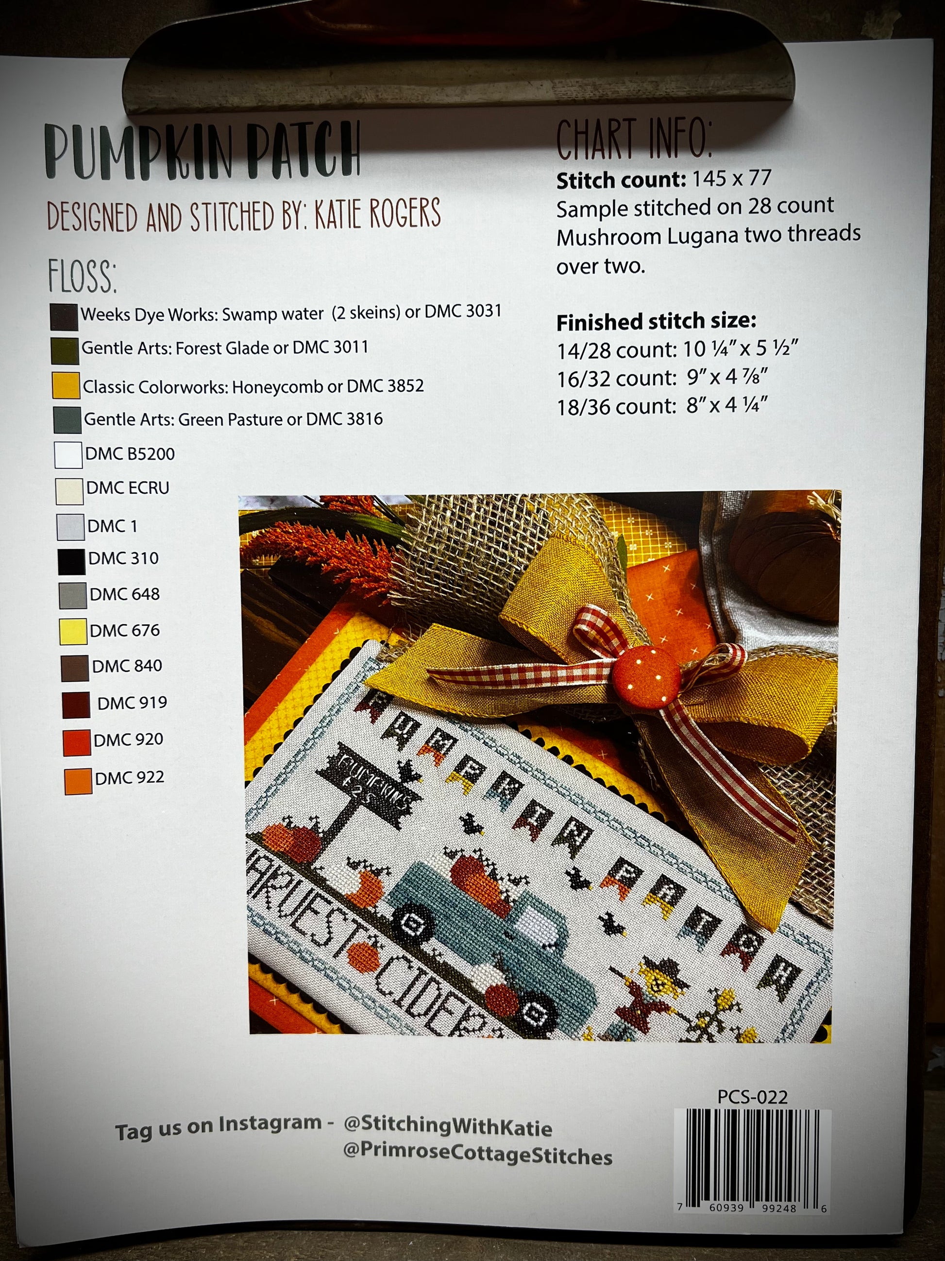 Pumpkin Patch Cross Stitch 145 x 77 finished size
