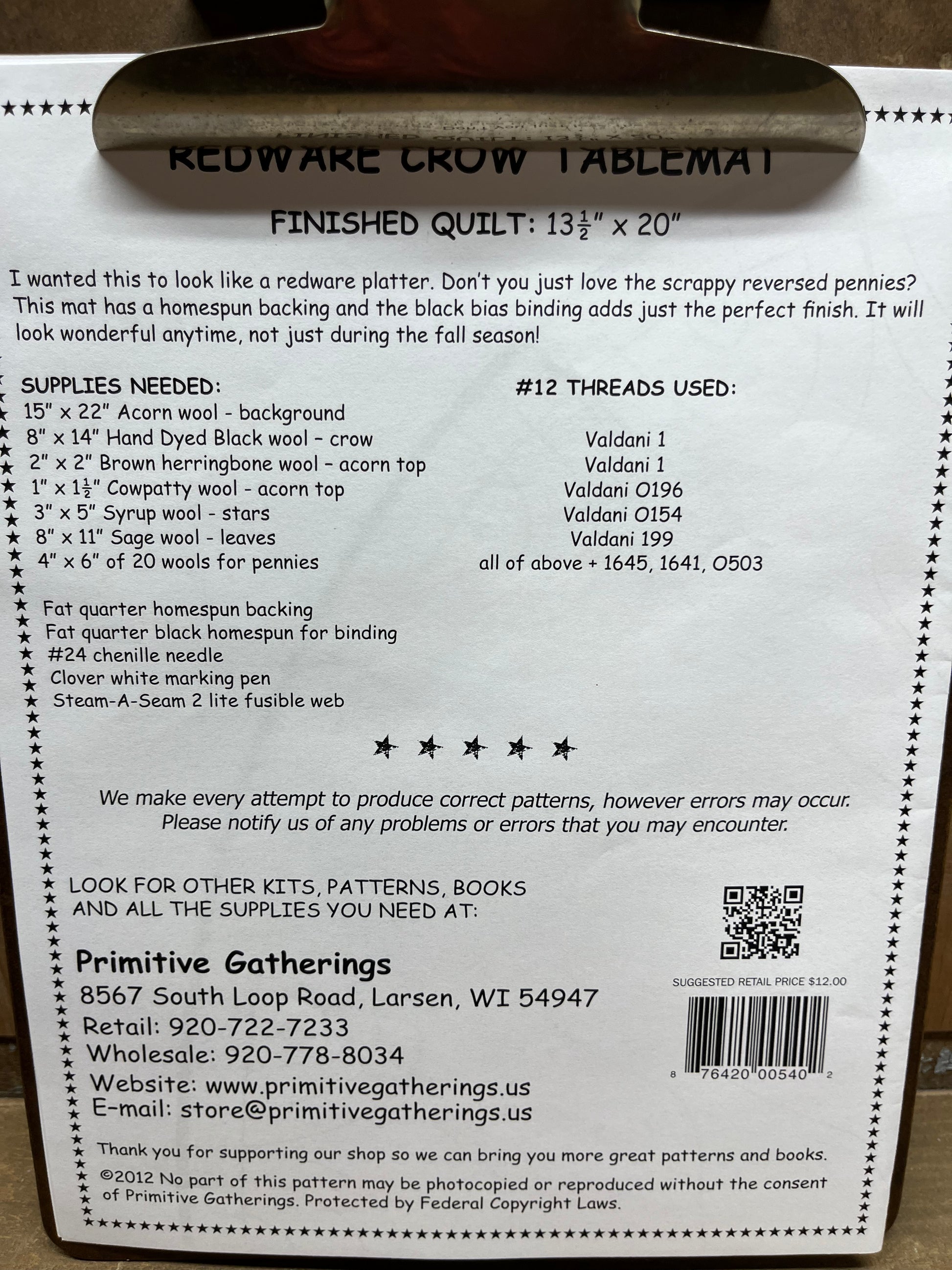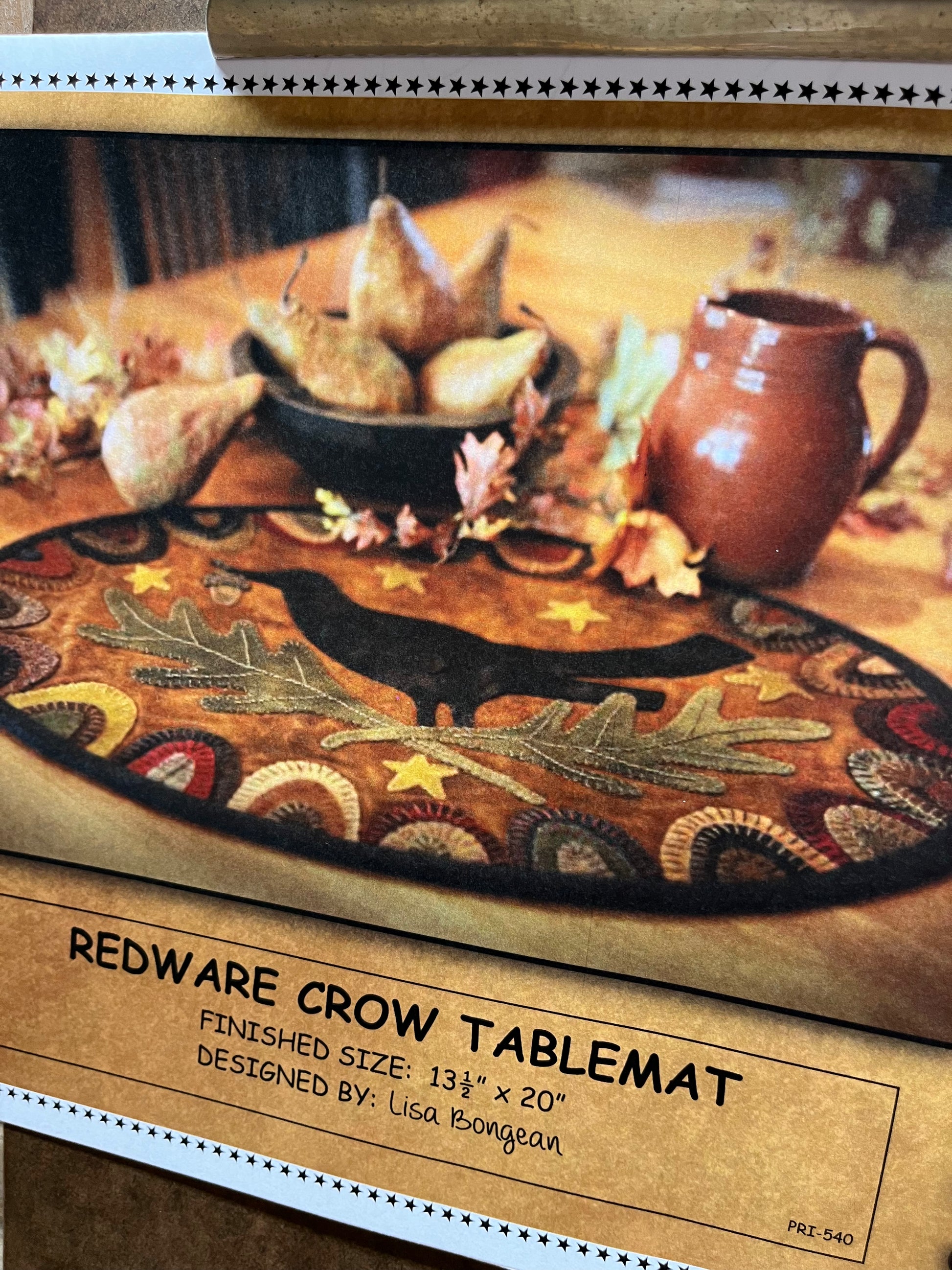 Includes the instructions, pattern and supply list to complete the 13.5" x 20" table mat.