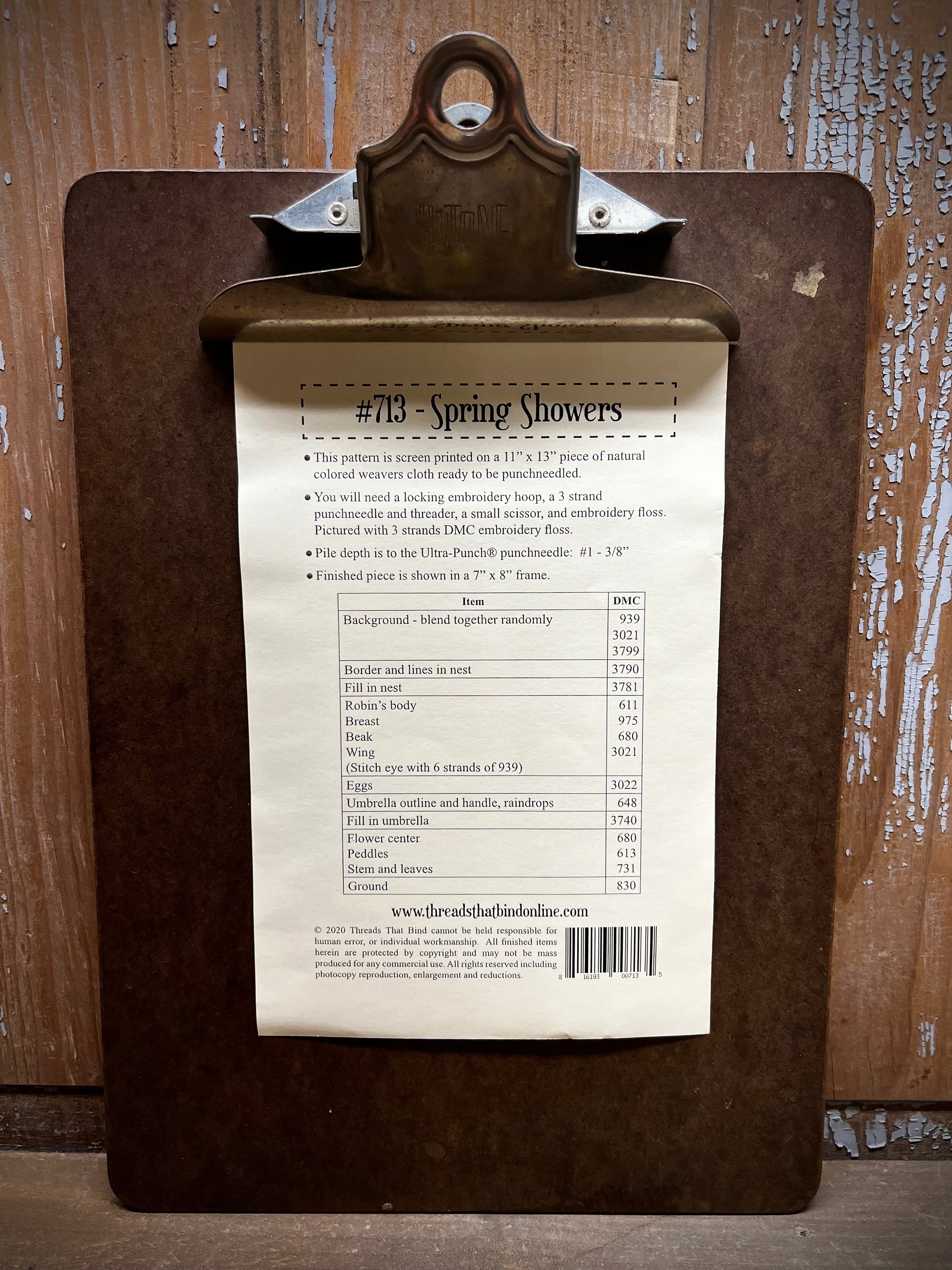 "Spring Showers" is a 4.5" X 5" punch needle embroidery pattern. You will receive a design pre printed on Weaver's Cloth. Don't forget to shop our assortment of Floss, Perle Cotton and Wool to complete this project.