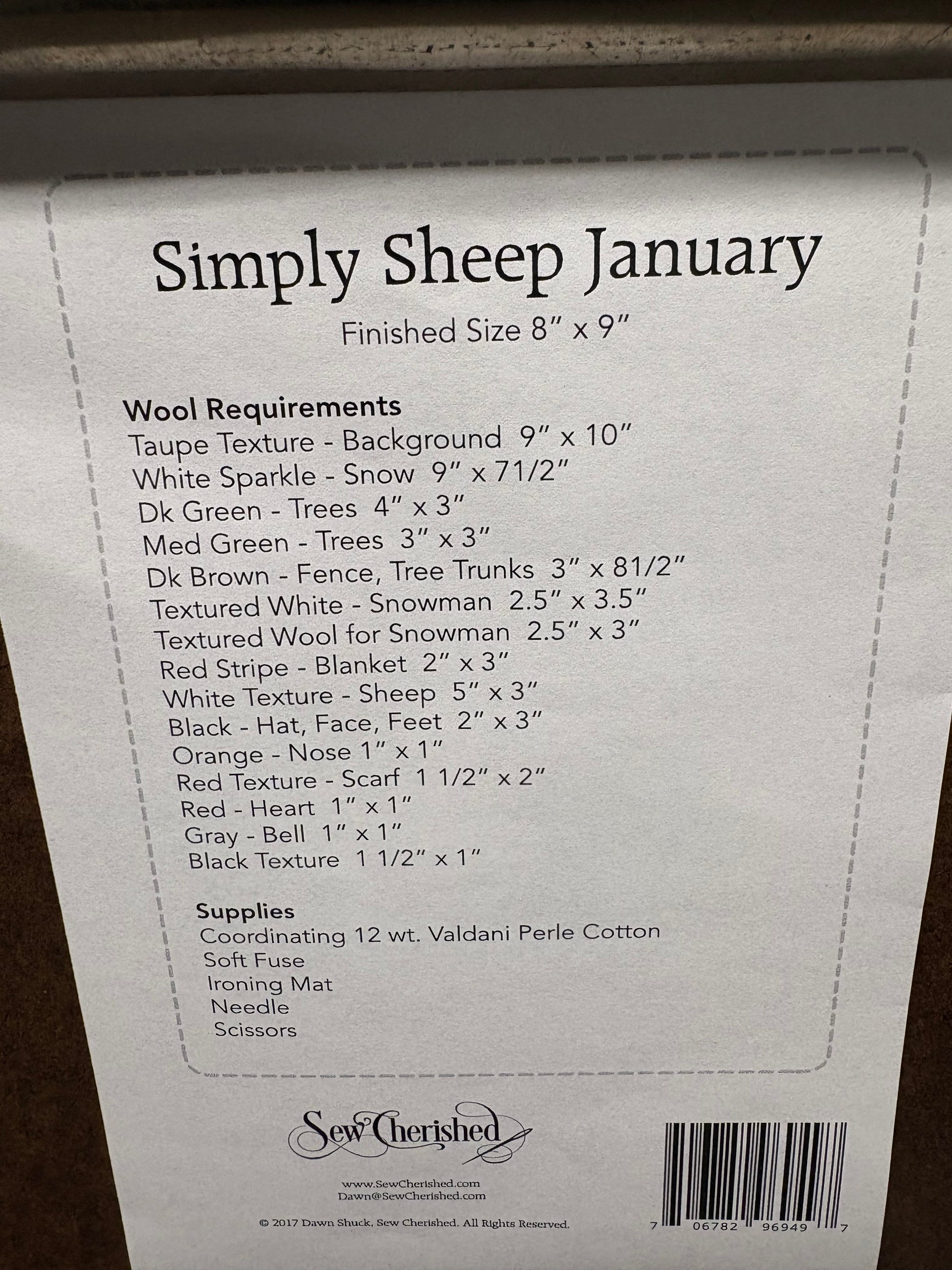 “Simply Sheep January” is an 8” x 9” wool appliqué paper pattern. You will need to cut the design.