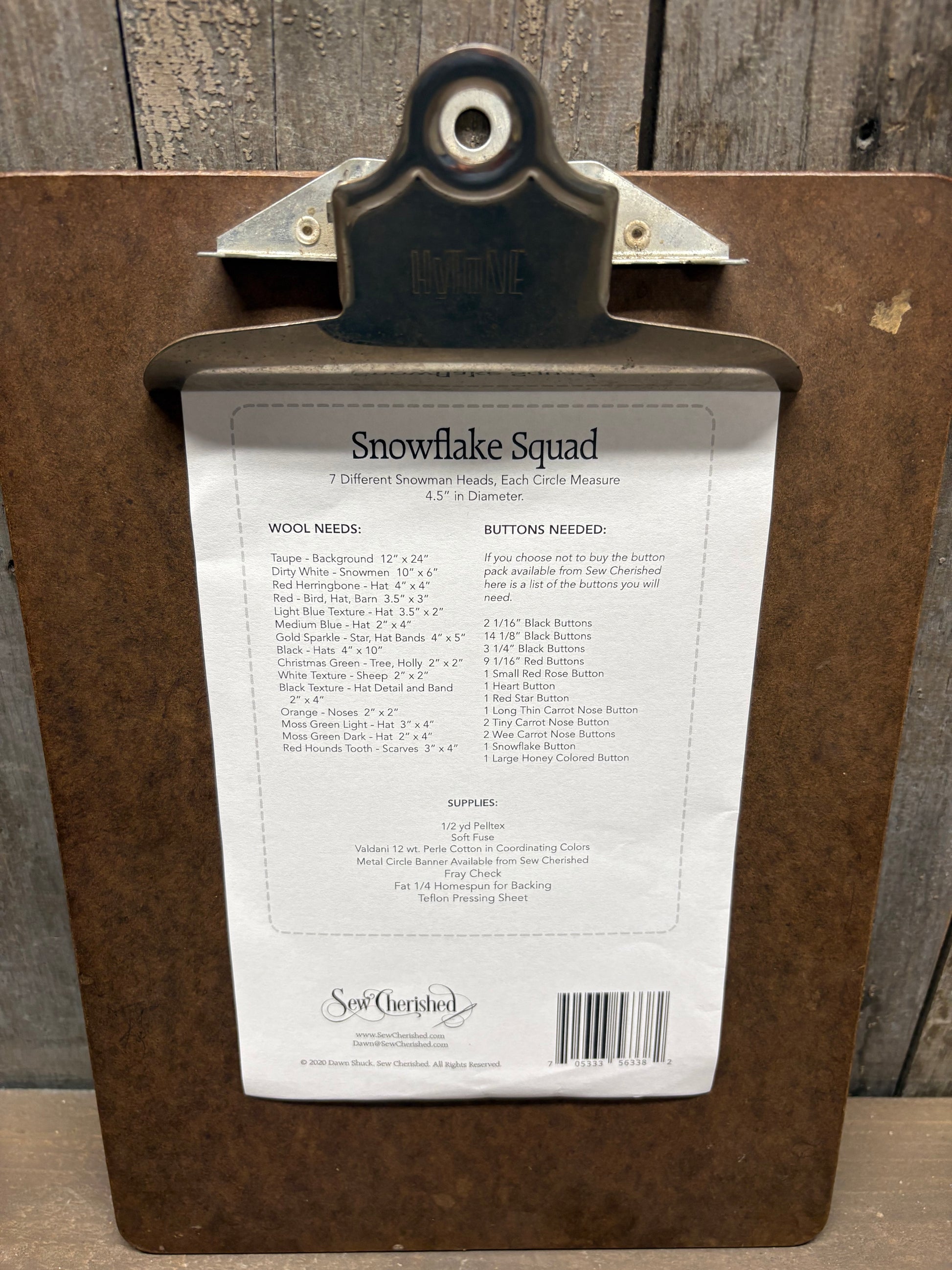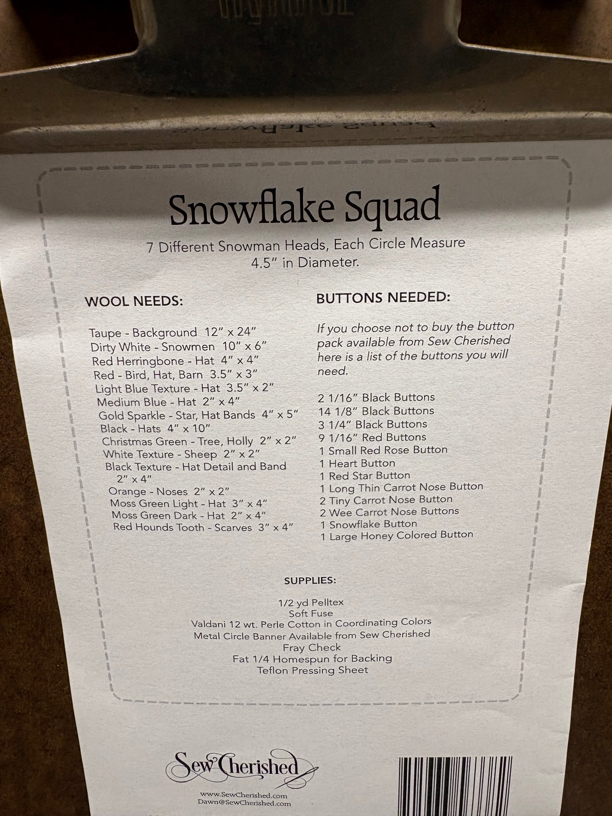 "Snowflake Squad” is a 4.5” circle wool appliqué paper pattern. You will need to cut the design.