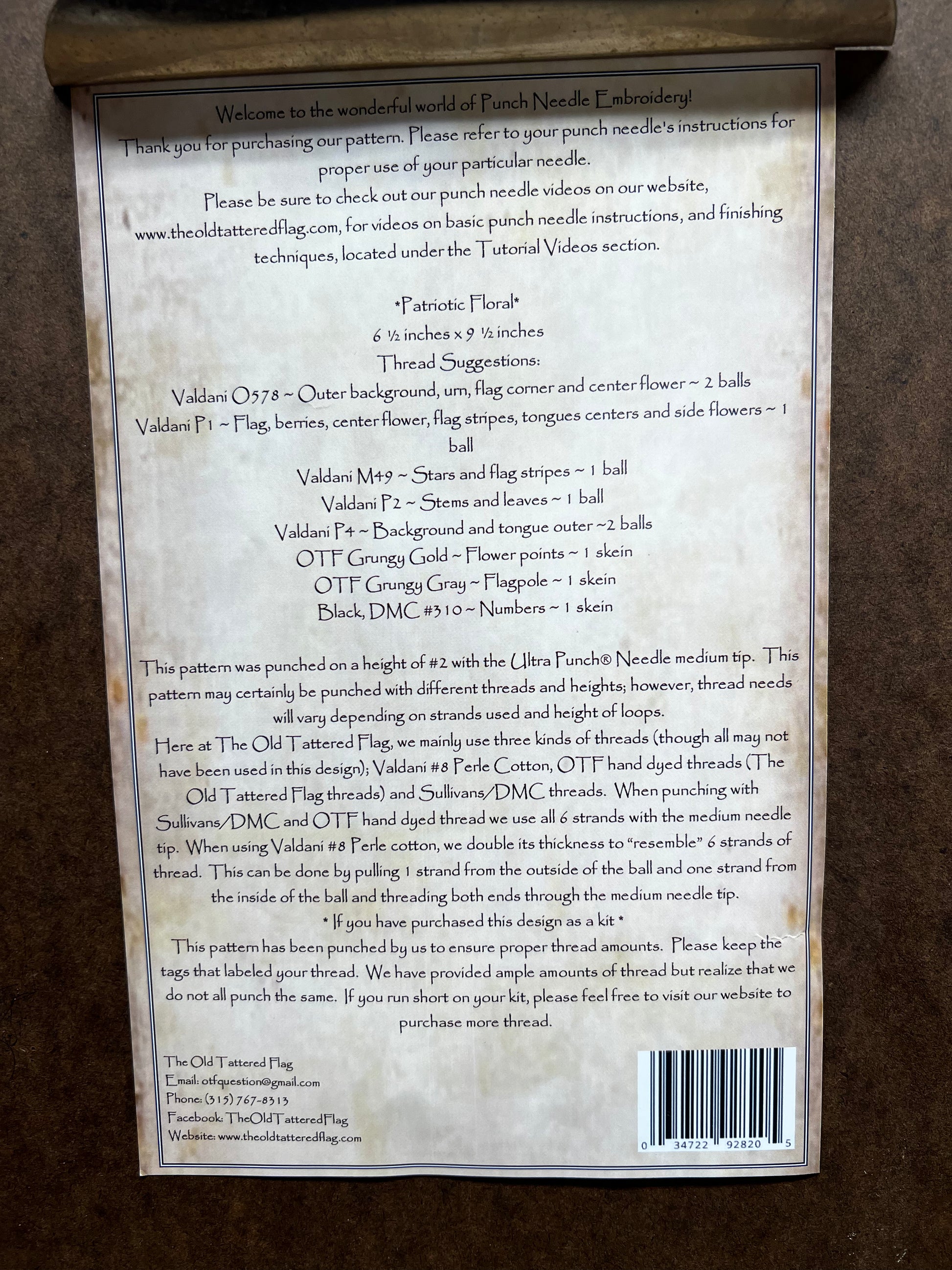 Punch Needle design printed on weaver's cloth. Measures 5.25"x 10".
