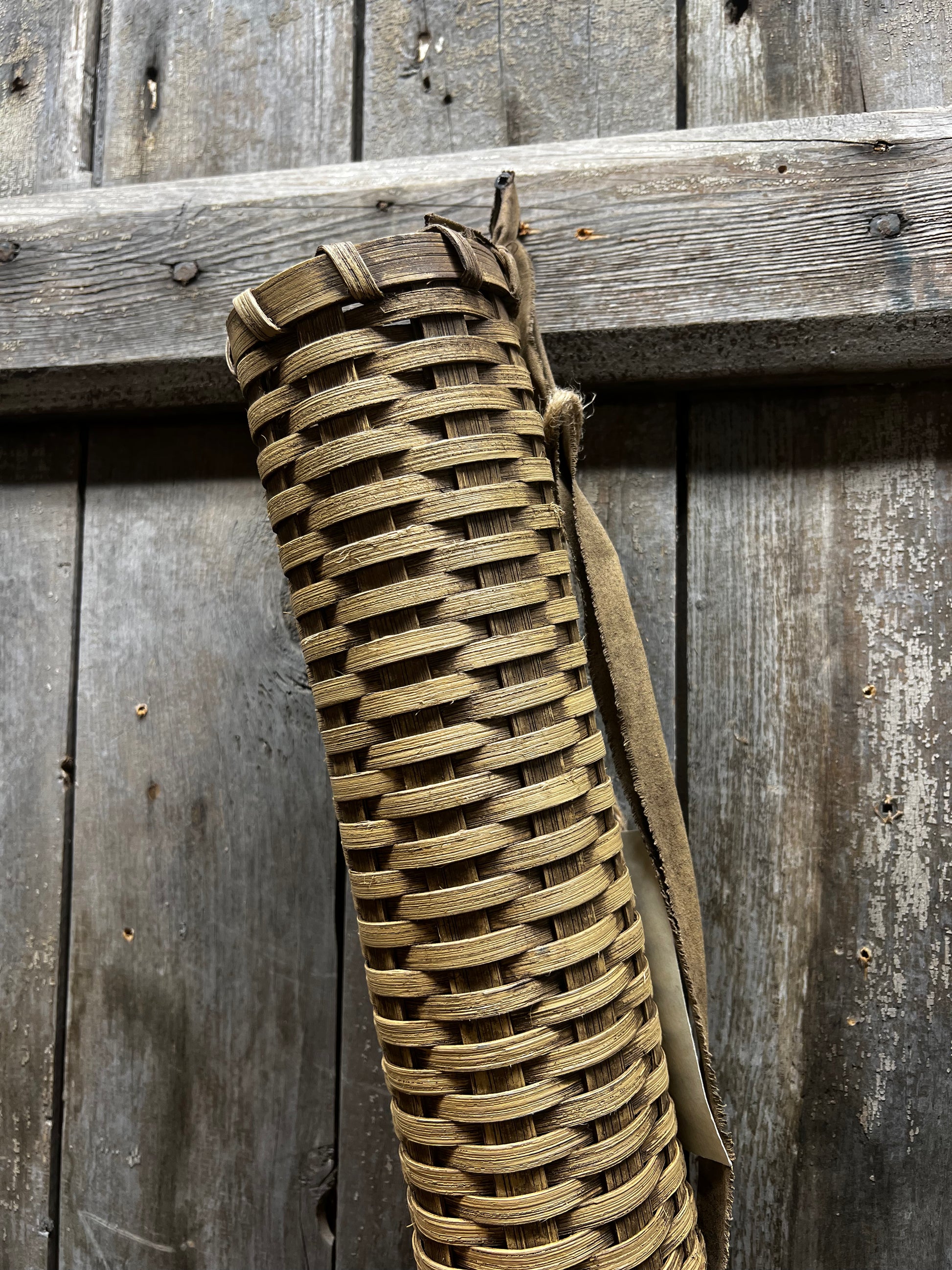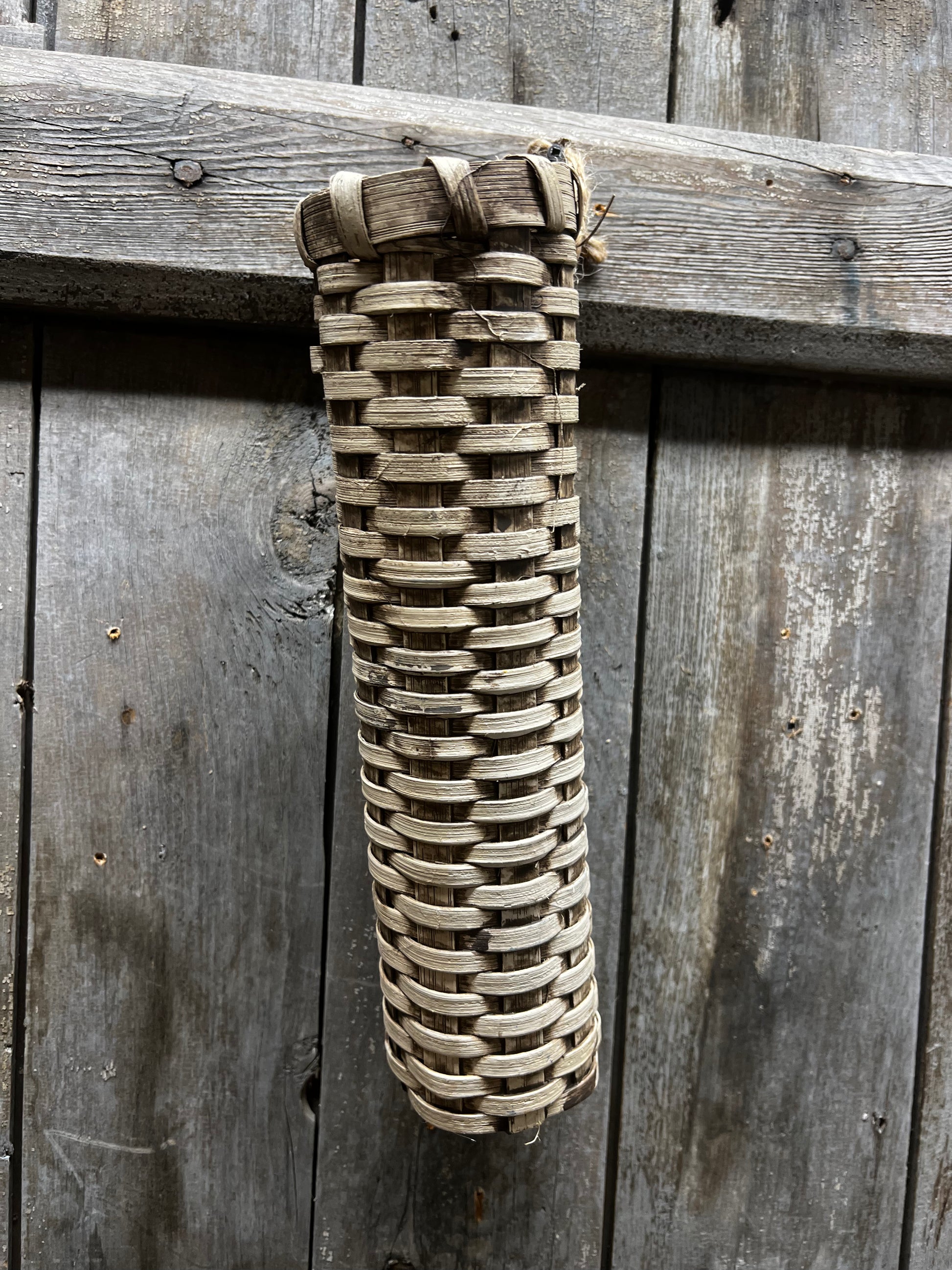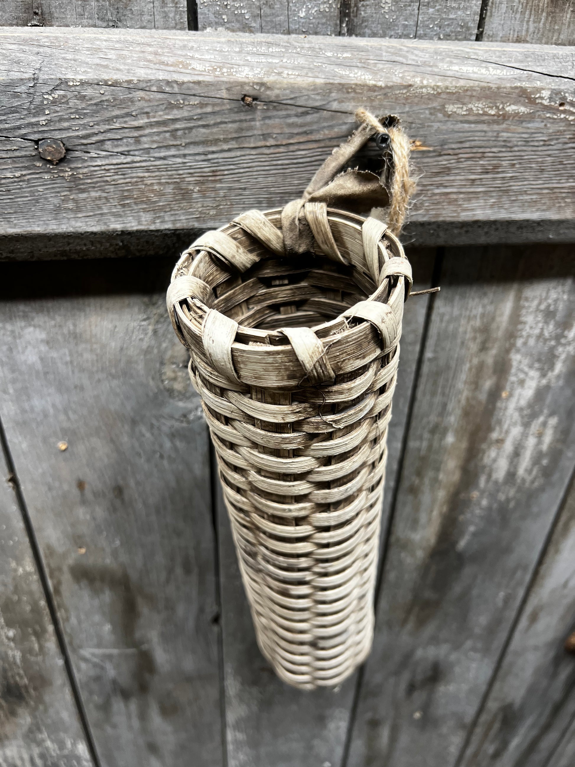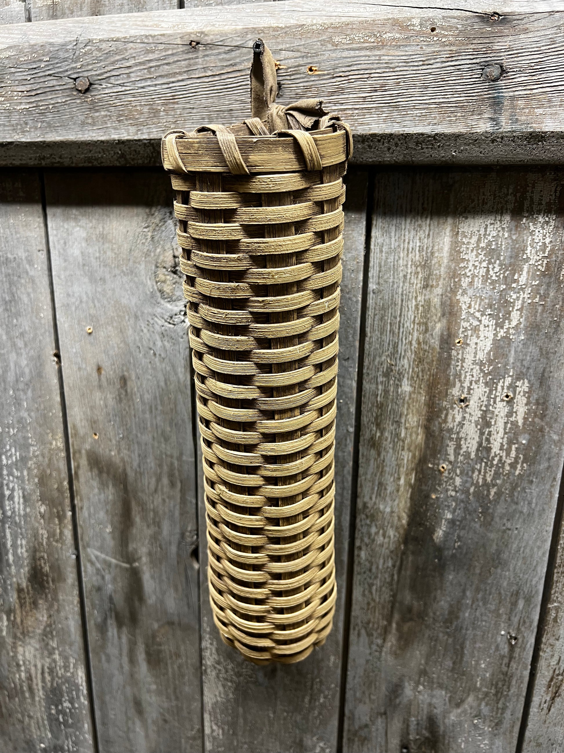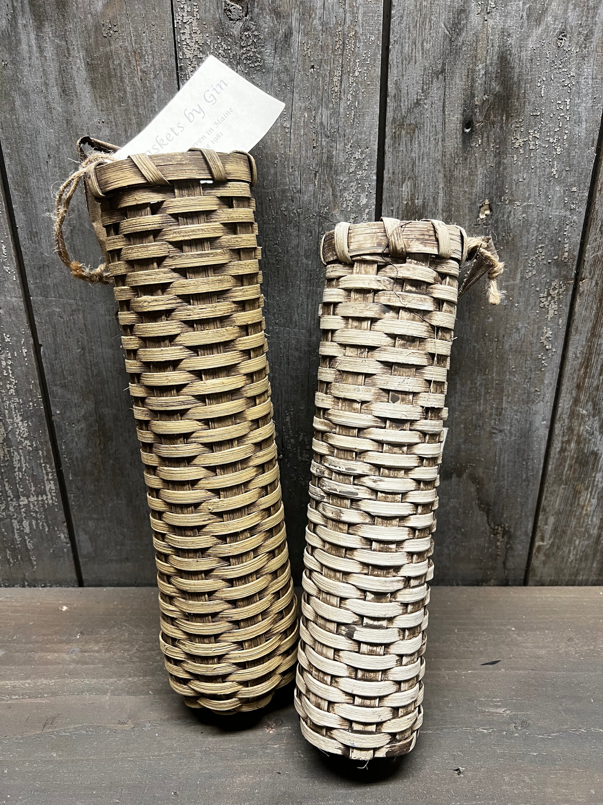Handcrafted in Maine by Basket by Gin, the quality workmanship is sure to please. Please expect slight variations in size and color considering they are all made by hand by various weavers. The Small Flower Basket measures about 12.5" long x 3" diameter and has a painted cloth strap. There is a multi process application of paint to get the lovely look.